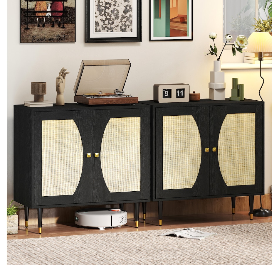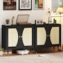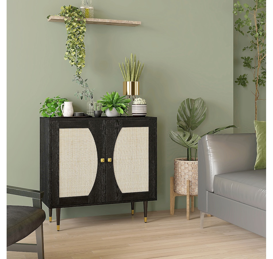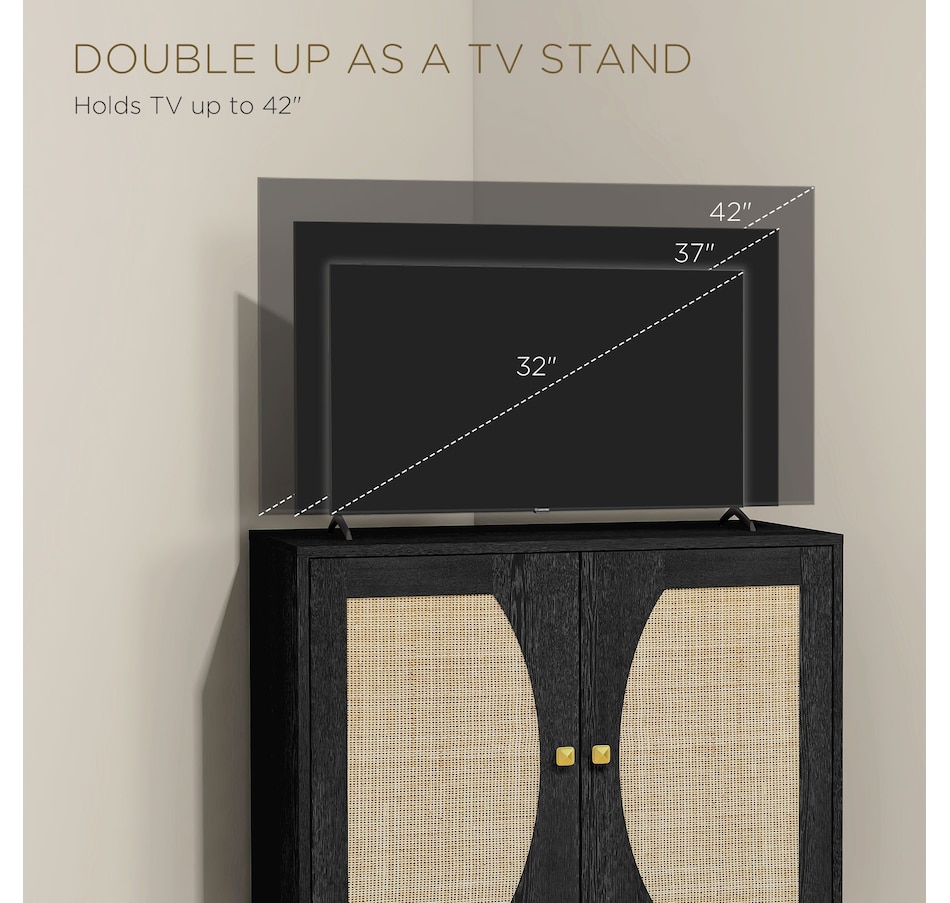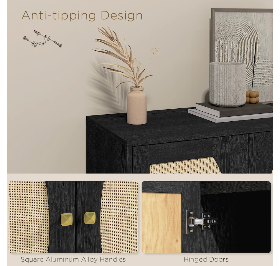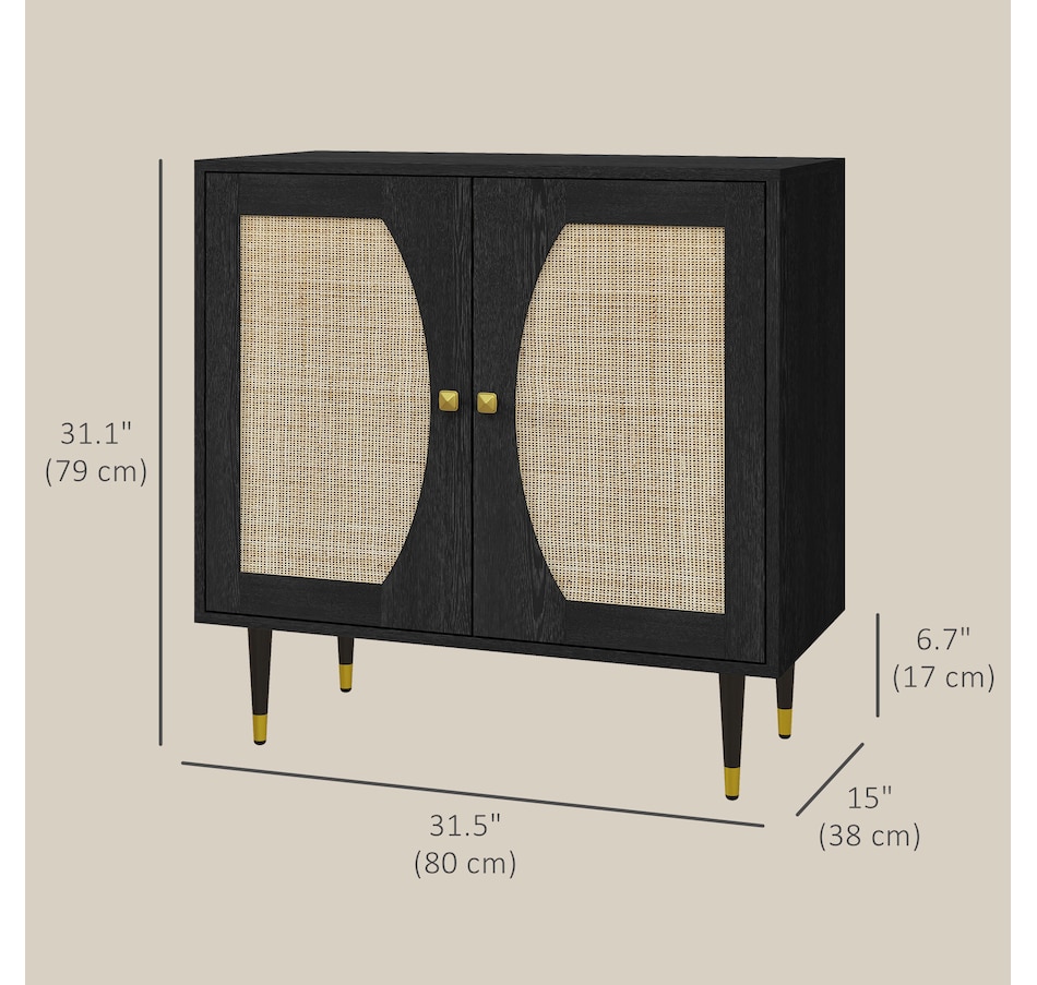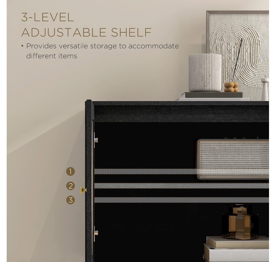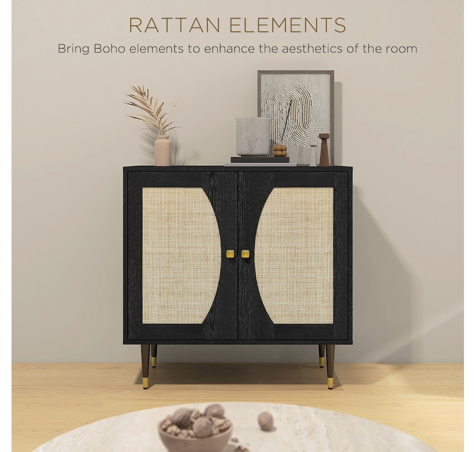 Say goodbye to clutter and hello to a beautifully organized space! This storage cabinet from HOMCOM with rattan doors is a great solution for stylish storage. The inner shelf is adjustable for stashing away your belongings with different heights. This sideboard can be easily changed to a TV stand, a space for spare linens, or a place to debut your dinnerware. Get ready to transform your space with the HOMCOM kitchen cabinet - a secret weapon for organization.Features: