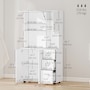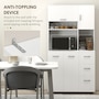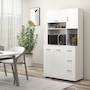 The modern kitchen storage cabinets from HOMCOM fit nicely with any decor and can be used in the kitchen, pantry, garage, or bathroom to create stylish additional storage. White coated engineered wood provides an easy to clean, smooth surface that will help keep your pantry cabinet with hutch clean and sanitary. Ample storage cabinets and drawers plus an open countertop shelf provides an amazing amount of storage in this compact microwave cabinet.Features: