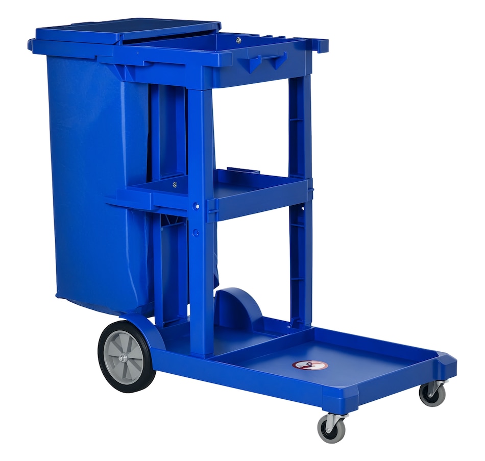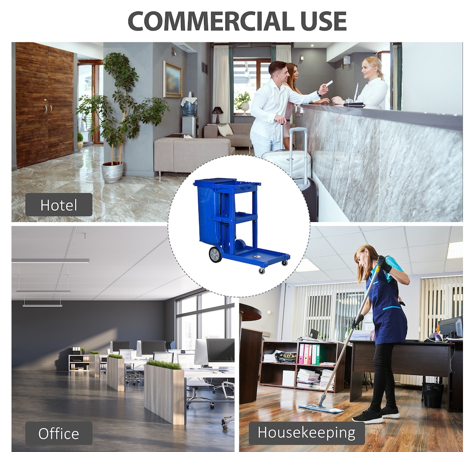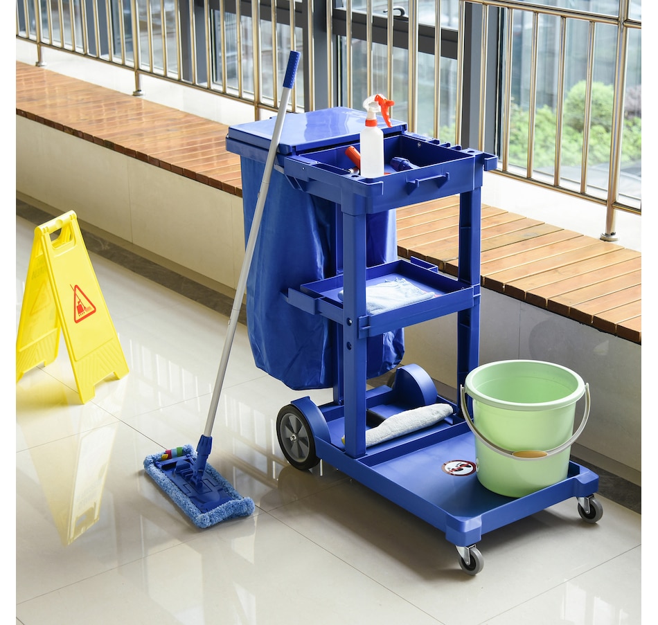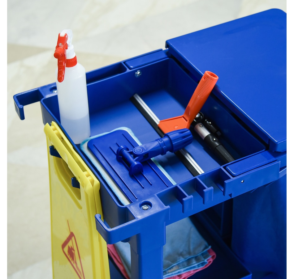 Commercial Janitorial Cart, Professional Cleaning Trolley, Blue