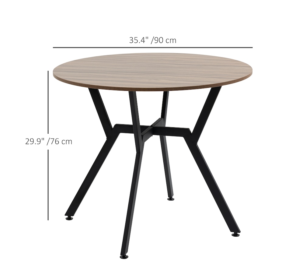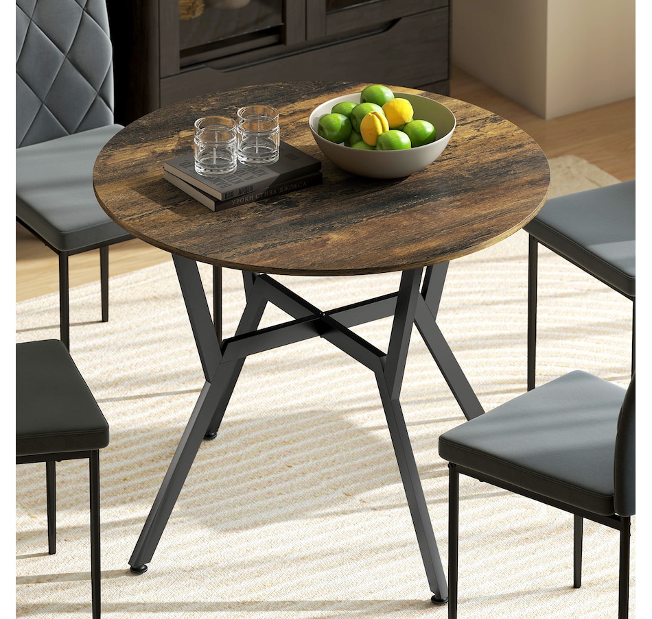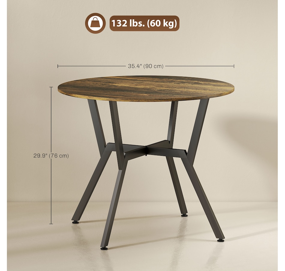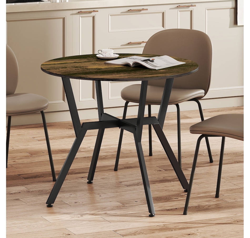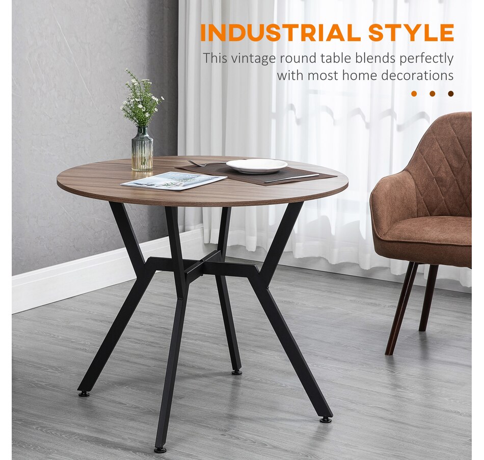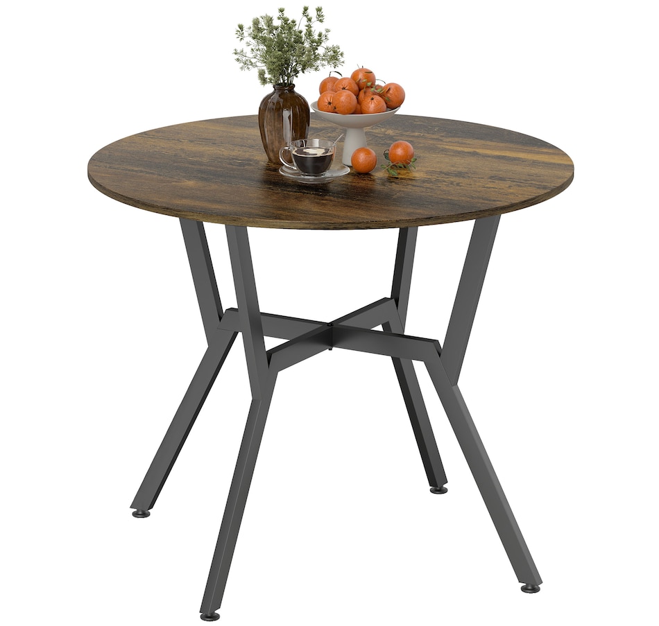 Make dinner as relaxing and enjoyable as possible with this HOMCOM round dining table. Its tabletop adds a modern yet rustic touch to your home decor, while the steel legs provide reliable support. Equipped with anti-slip foot pads, it protects your floor from scratches. Tailored for intimate dining experiences with your family, this table is a must-have addition to your kitchen or dining area. Don't hesitate to bring this versatile kitchen table home!