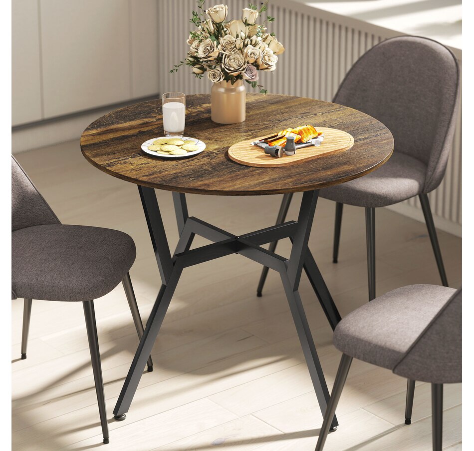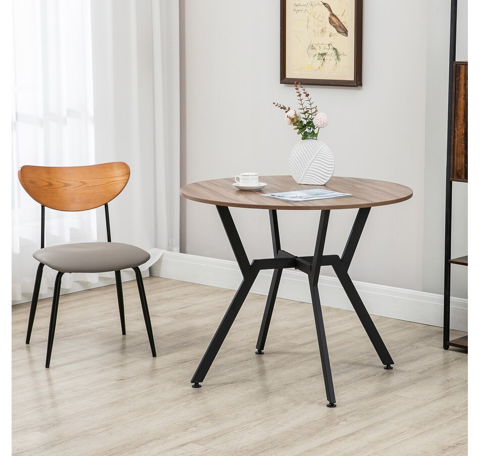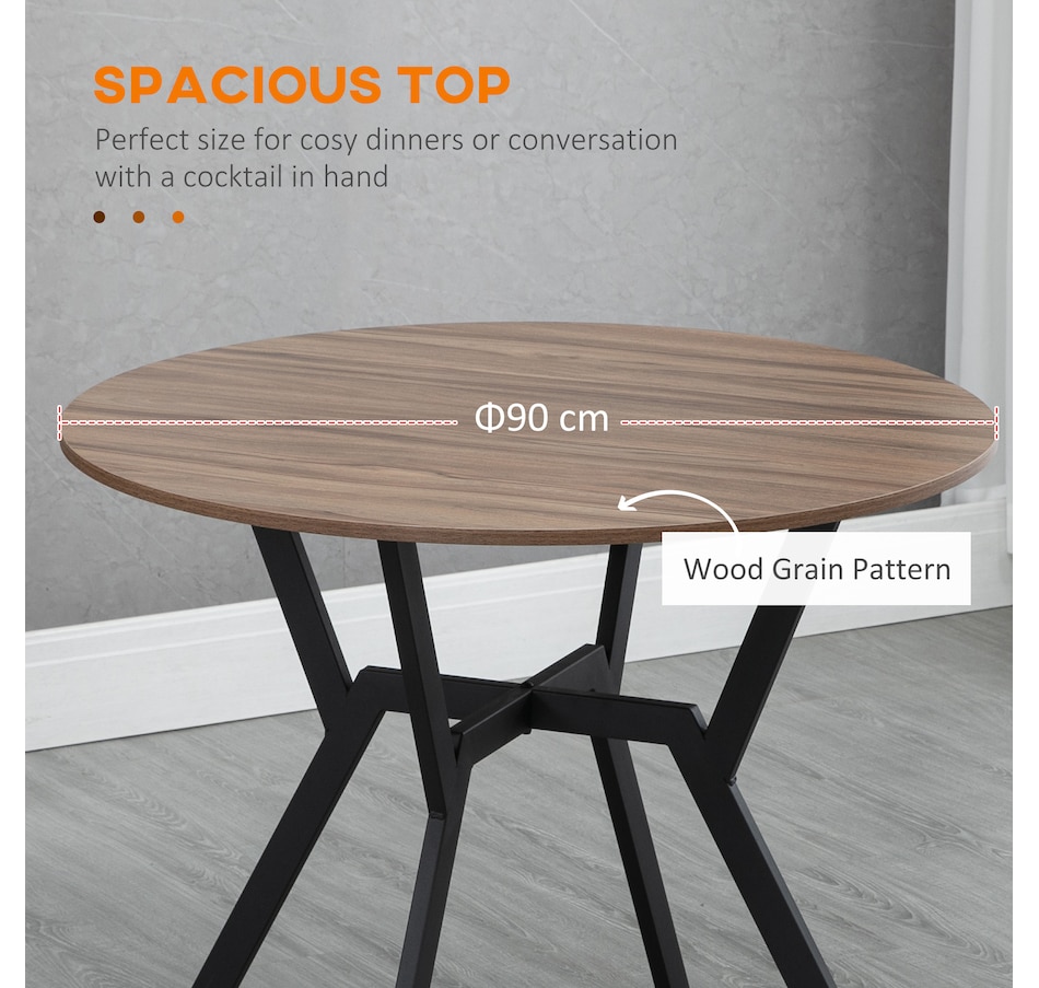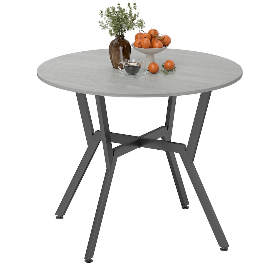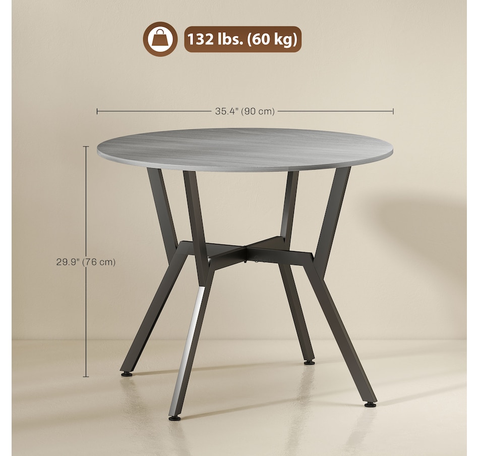 Make dinner as relaxing and enjoyable as possible with this HOMCOM round dining table. Its tabletop adds a modern yet rustic touch to your home decor, while the steel legs provide reliable support. Equipped with anti-slip foot pads, it protects your floor from scratches. Tailored for intimate dining experiences with your family, this table is a must-have addition to your kitchen or dining area. Don't hesitate to bring this versatile kitchen table home!
