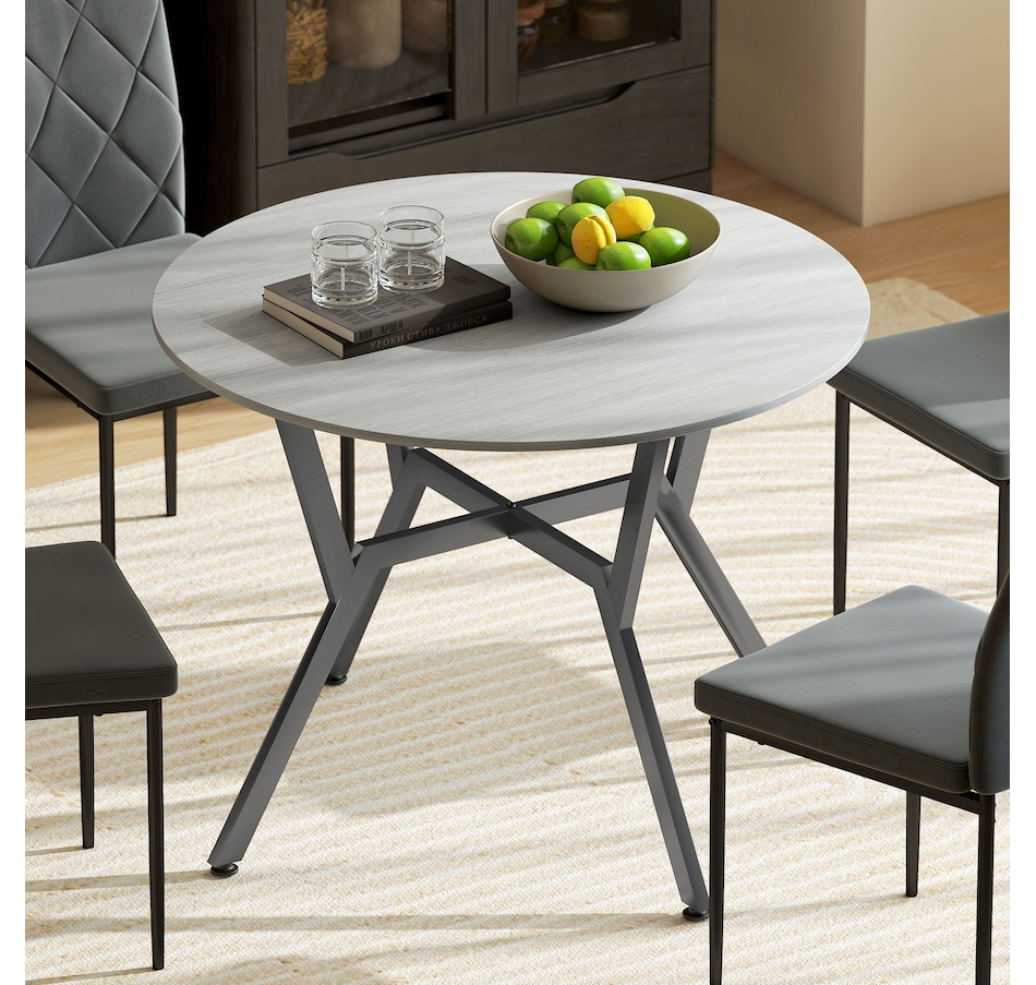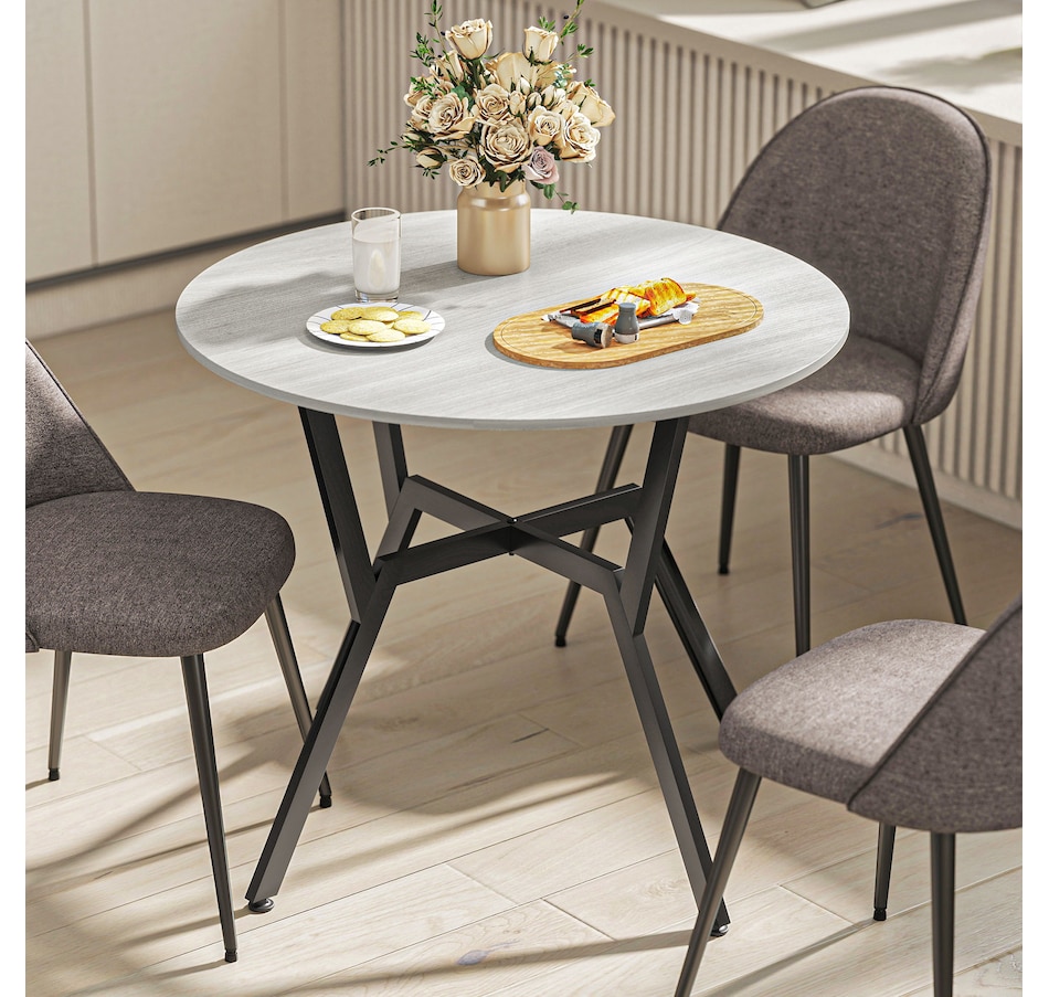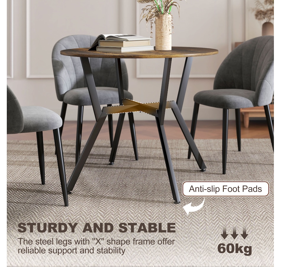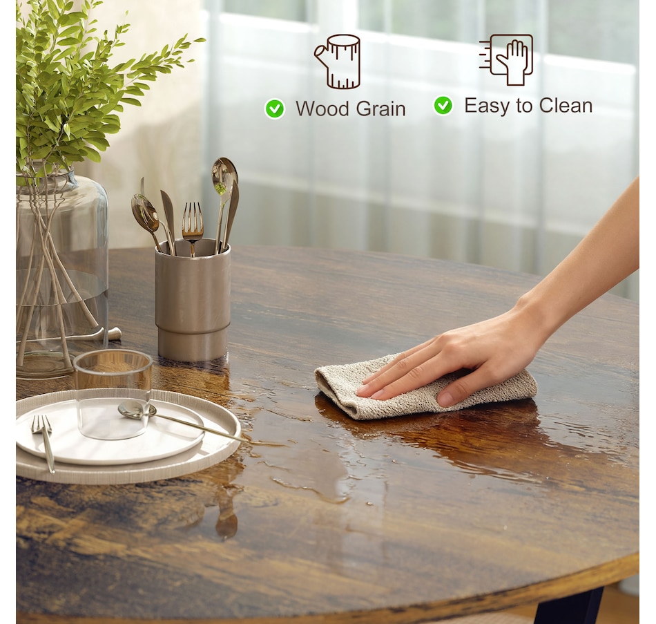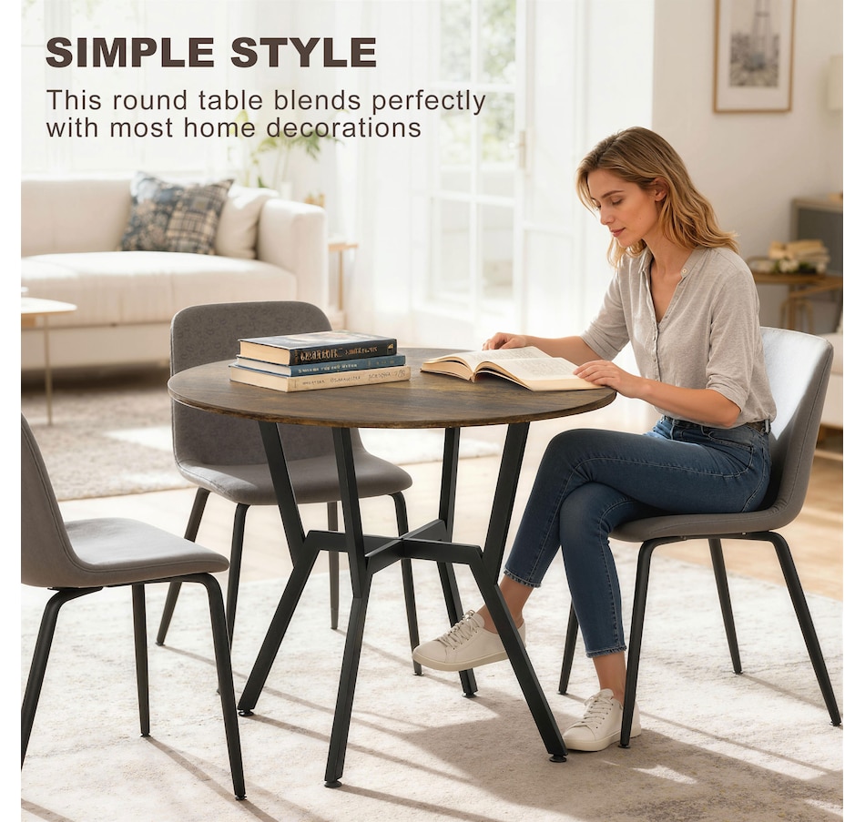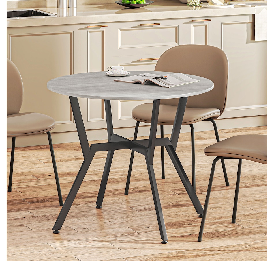 Make dinner as relaxing and enjoyable as possible with this HOMCOM round dining table. Its tabletop adds a modern yet rustic touch to your home decor, while the steel legs provide reliable support. Equipped with anti-slip foot pads, it protects your floor from scratches. Tailored for intimate dining experiences with your family, this table is a must-have addition to your kitchen or dining area. Don't hesitate to bring this versatile kitchen table home!