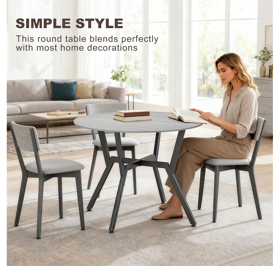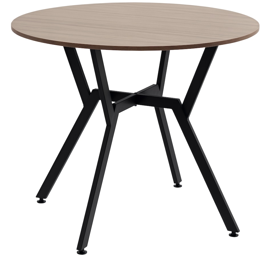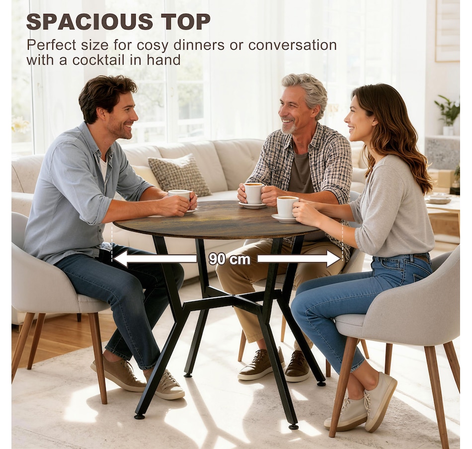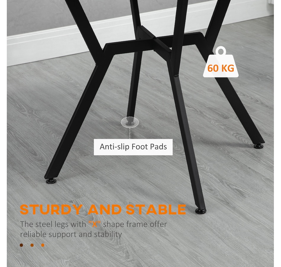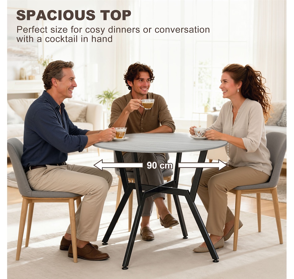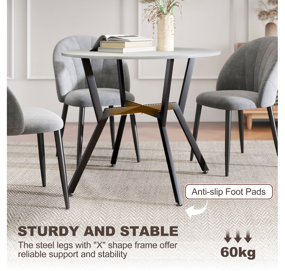 Make dinner as relaxing and enjoyable as possible with this HOMCOM round dining table. Its tabletop adds a modern yet rustic touch to your home decor, while the steel legs provide reliable support. Equipped with anti-slip foot pads, it protects your floor from scratches. Tailored for intimate dining experiences with your family, this table is a must-have addition to your kitchen or dining area. Don't hesitate to bring this versatile kitchen table home!
