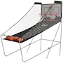 This HOMCOM's Electronic Basketball Game offers hours of fun and excitement for family and friends! You can choose your own basketball gaming experience with four different game options in 8 ways with 1 player or 2 players. It features an electronic scoreboard with large LED readouts that shows score and time. When not in use, this unit folds for easy storage. Includes four basketballs, inflation pump and needle.