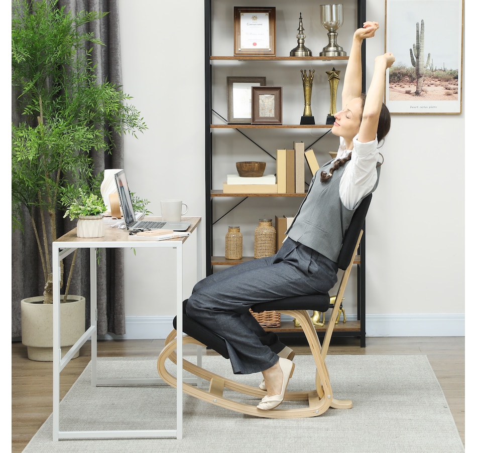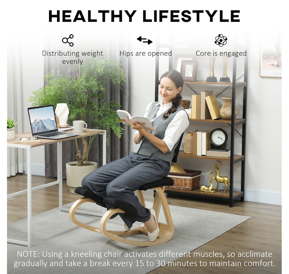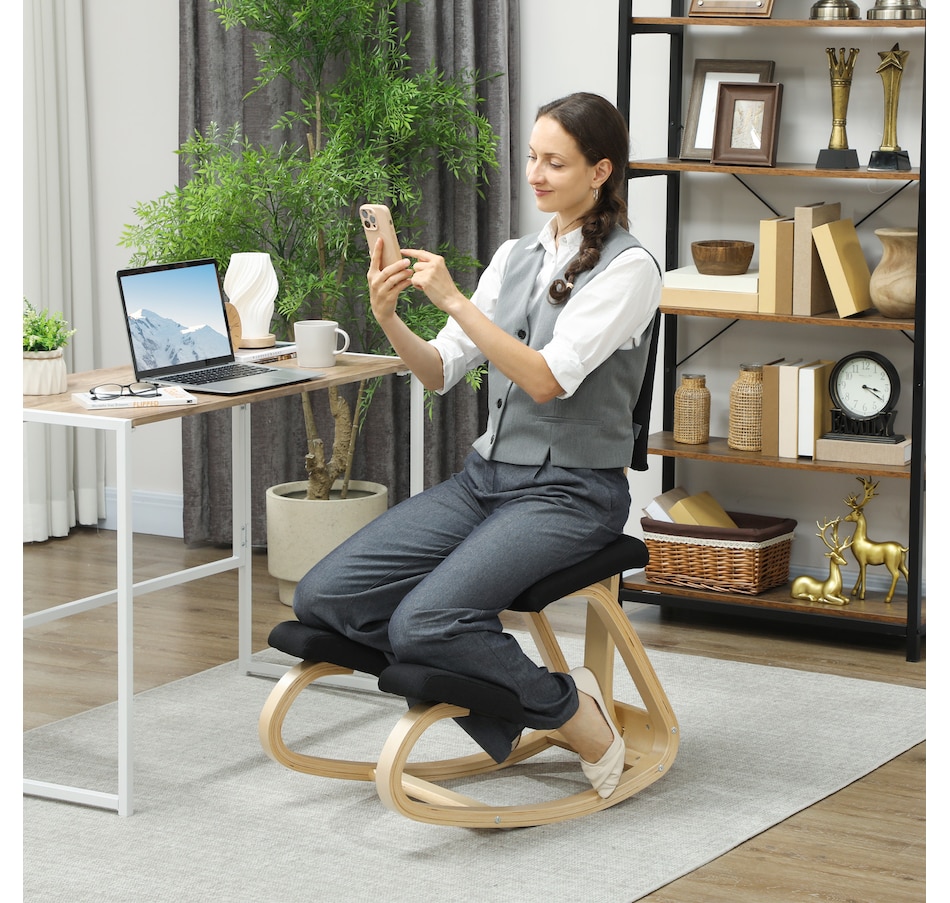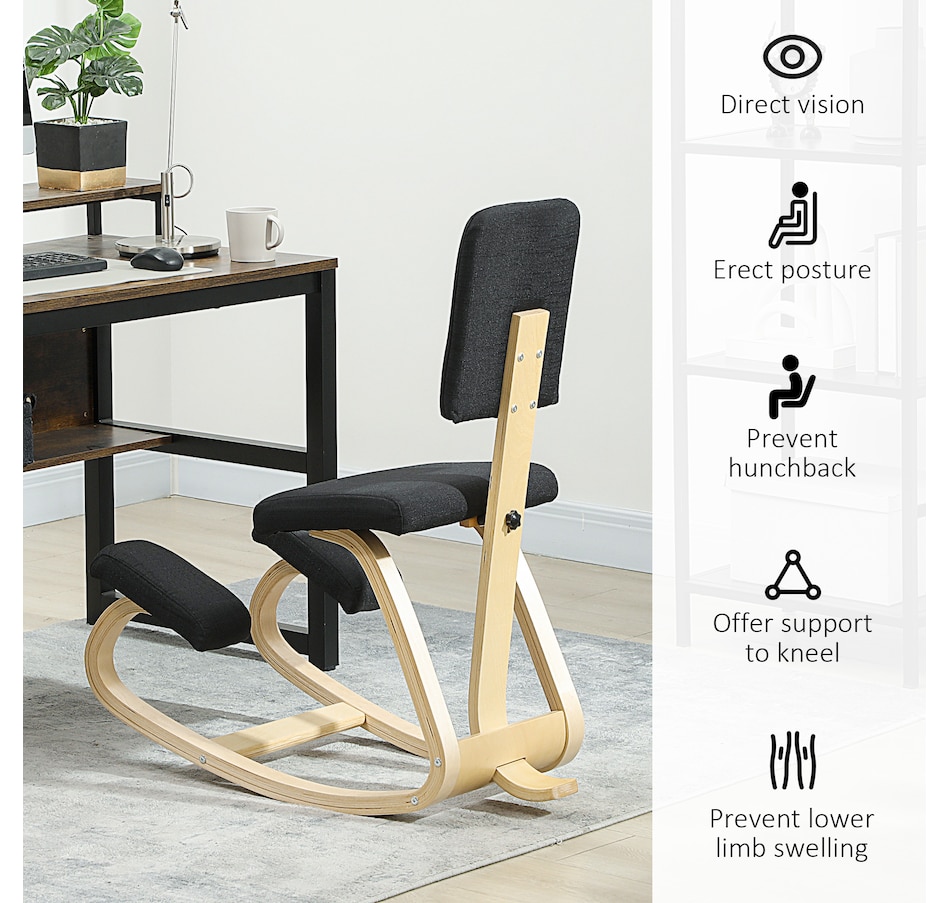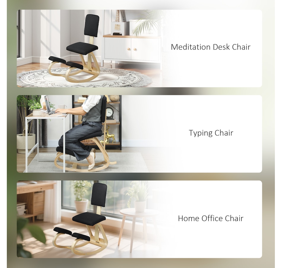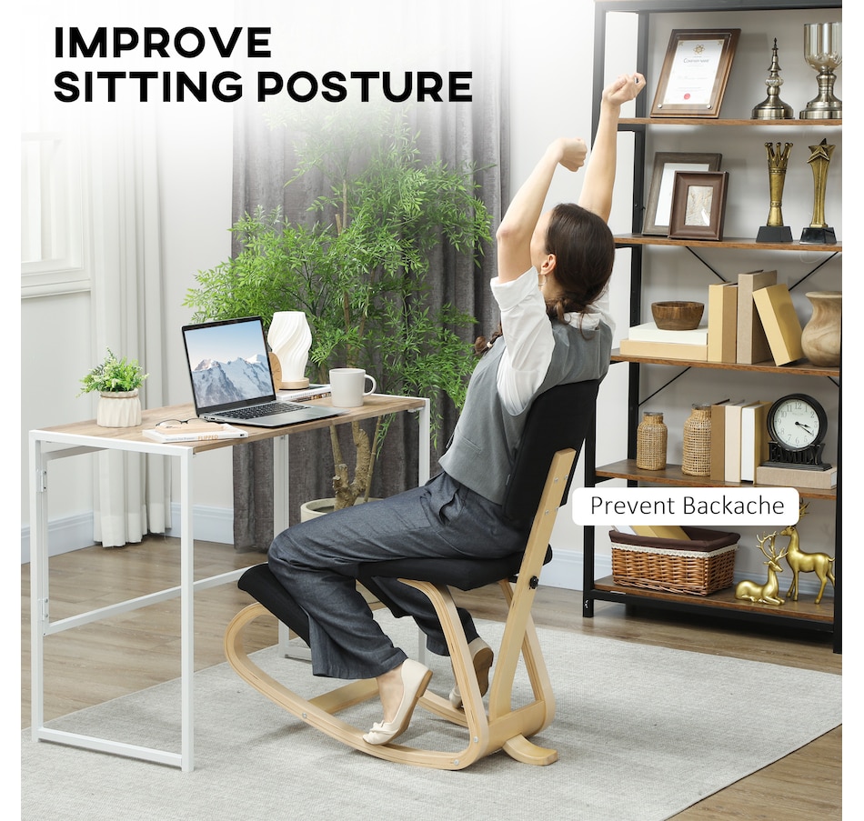 Transform your workspace with the HOMCOM Kneeling Chair! Designed to correct poor postures like hunchback and alleviate back pain, this chair ensures your weight is evenly distributed for maximum comfort. Revel in the rocking motion to boost focus and energy. Suitable as a meditation, office, or typing chair, complete with a supportive backrest and a chic birch wood frame.Features: