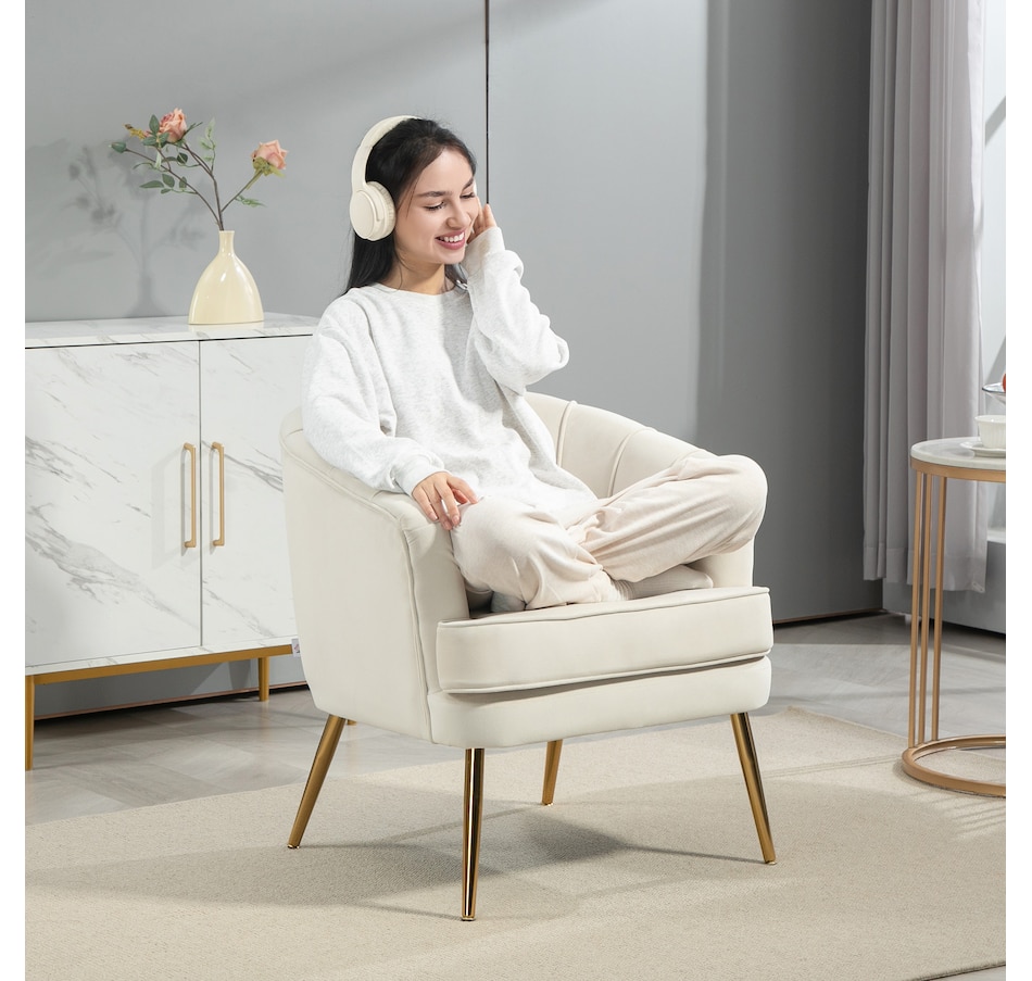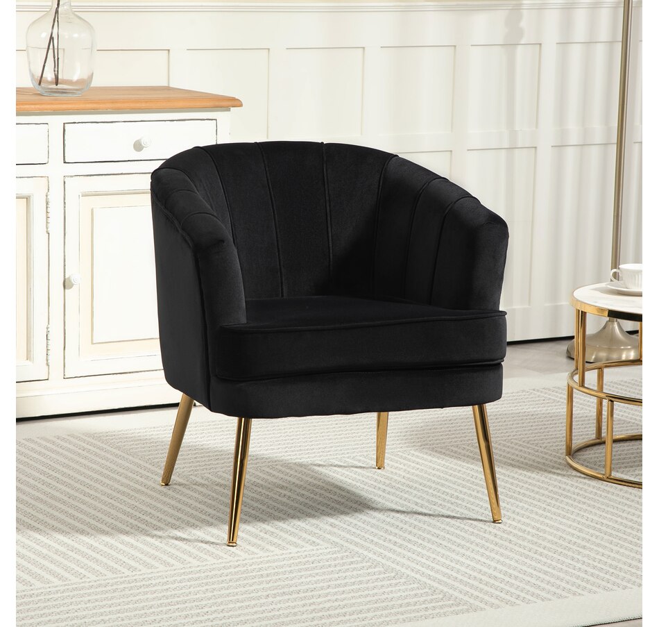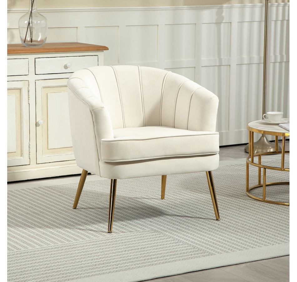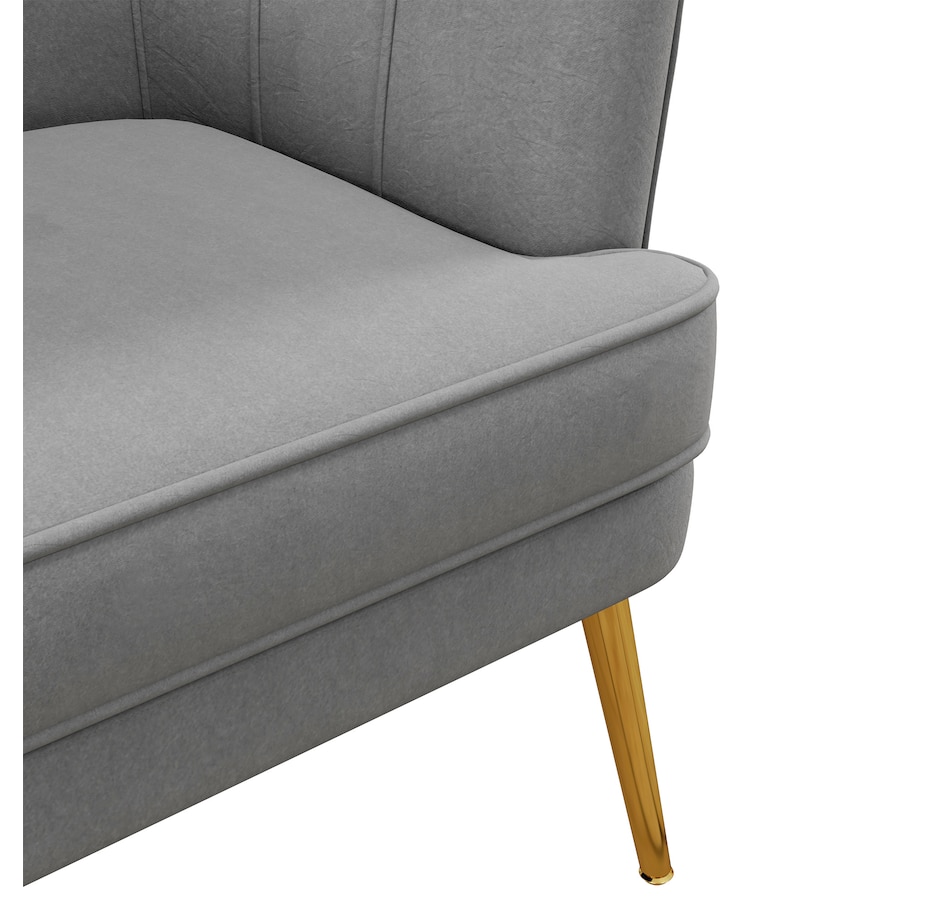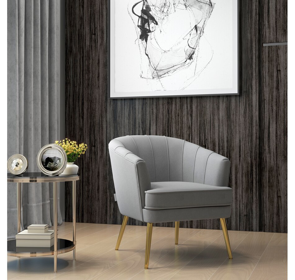 Modern accent chair make cozy corners a reality! An accent chair can be placed in a corner or under a window to create a cozy reading nook or a delicate conversation area. Accent chairs can even be incorporated into hallways or other less conventional spots, anywhere you like… Velvet-touch surface, padded seat and a-piece styled back and armrest offers optimum comfort, with gold steel legs and channel tufting to make it a beautiful and bold addition you'll love in your home.Features:
