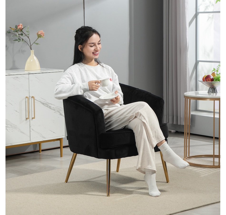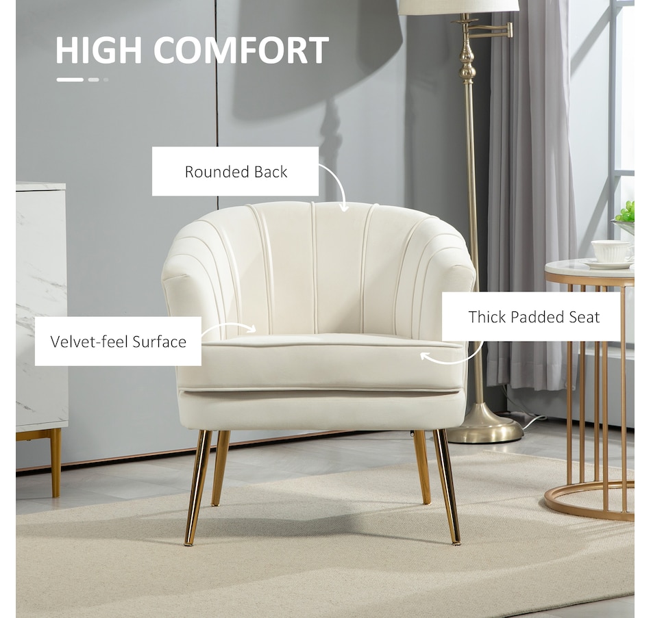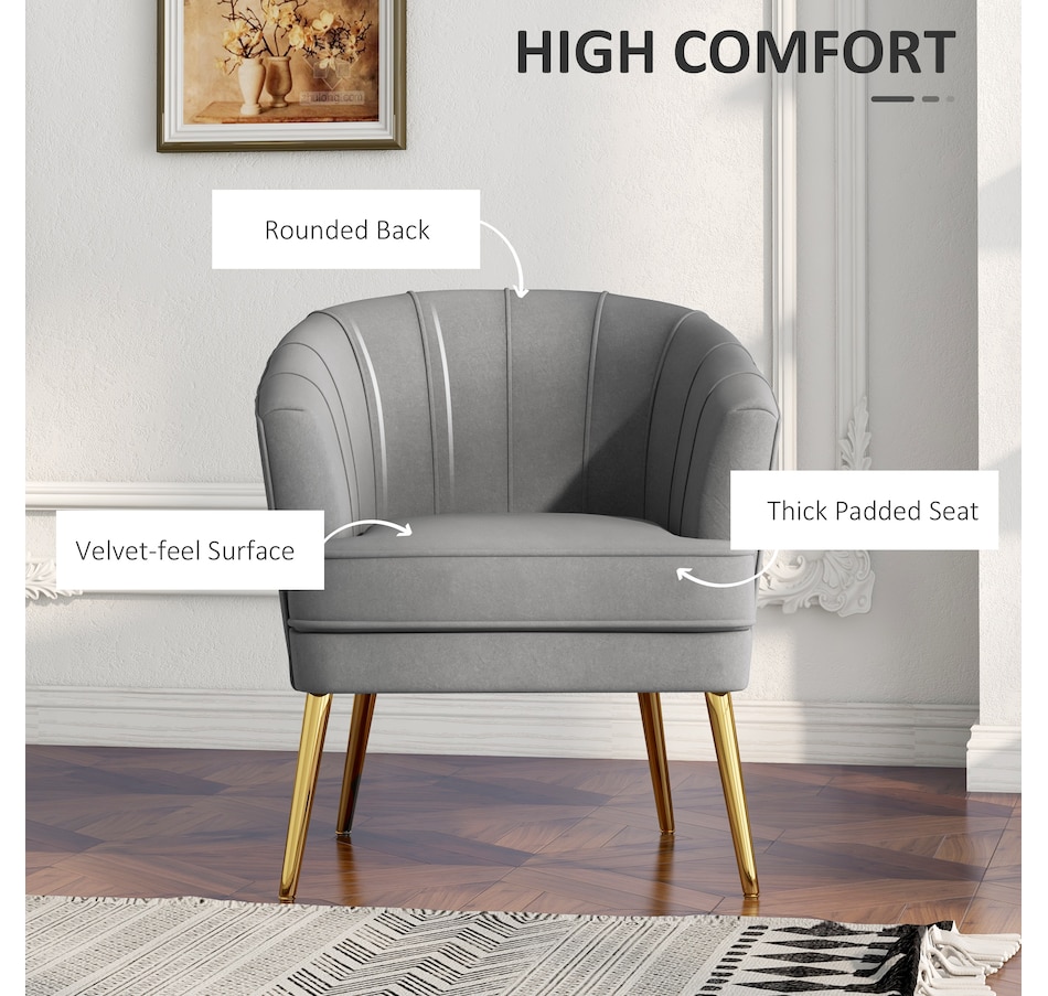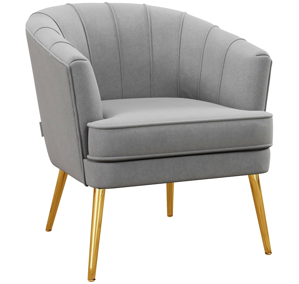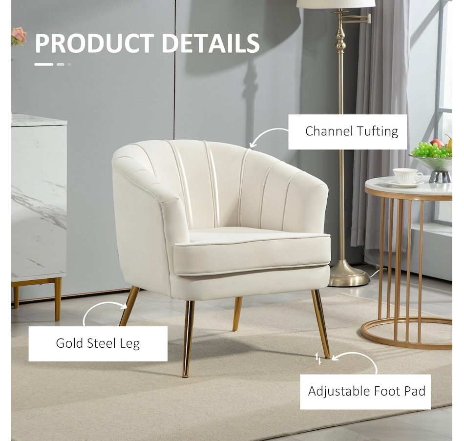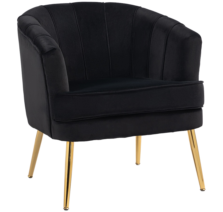 Modern accent chair make cozy corners a reality! An accent chair can be placed in a corner or under a window to create a cozy reading nook or a delicate conversation area. Accent chairs can even be incorporated into hallways or other less conventional spots, anywhere you like… Velvet-touch surface, padded seat and a-piece styled back and armrest offers optimum comfort, with gold steel legs and channel tufting to make it a beautiful and bold addition you'll love in your home.Features: