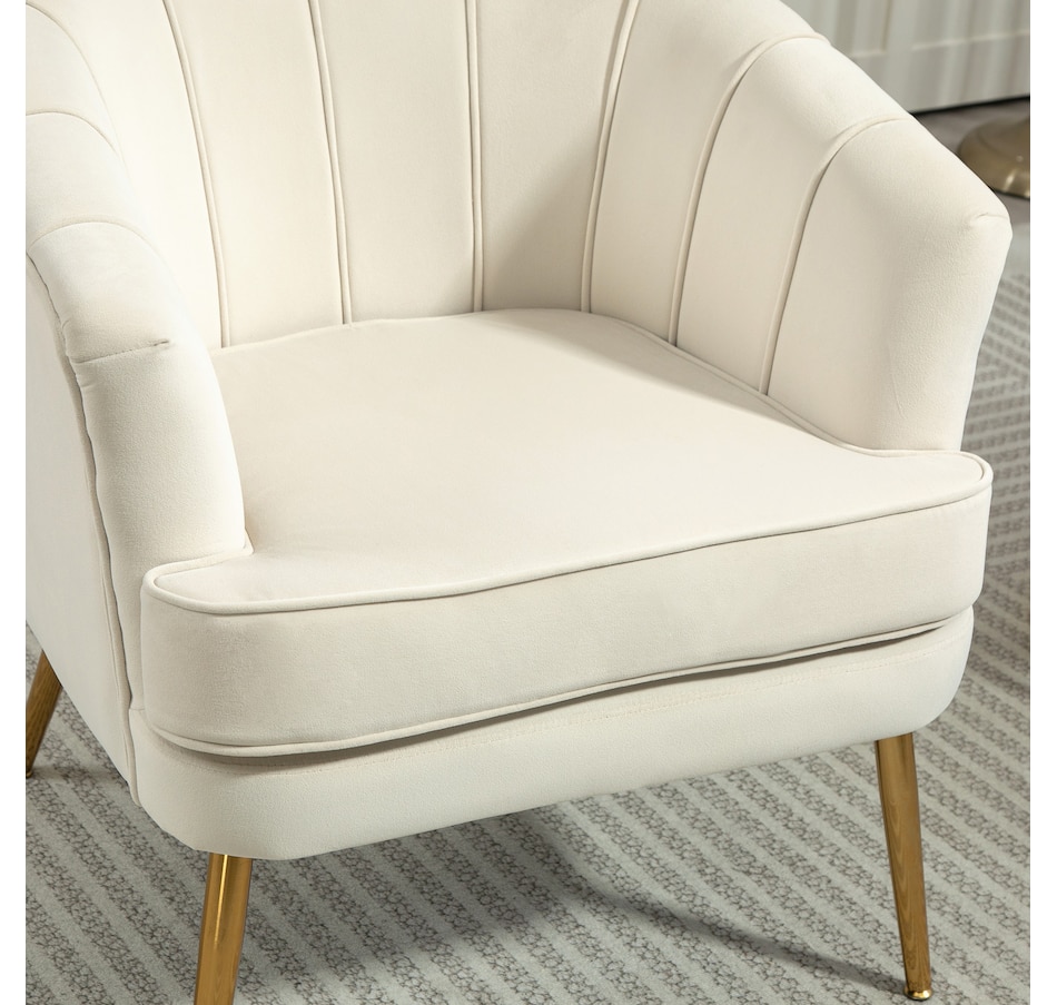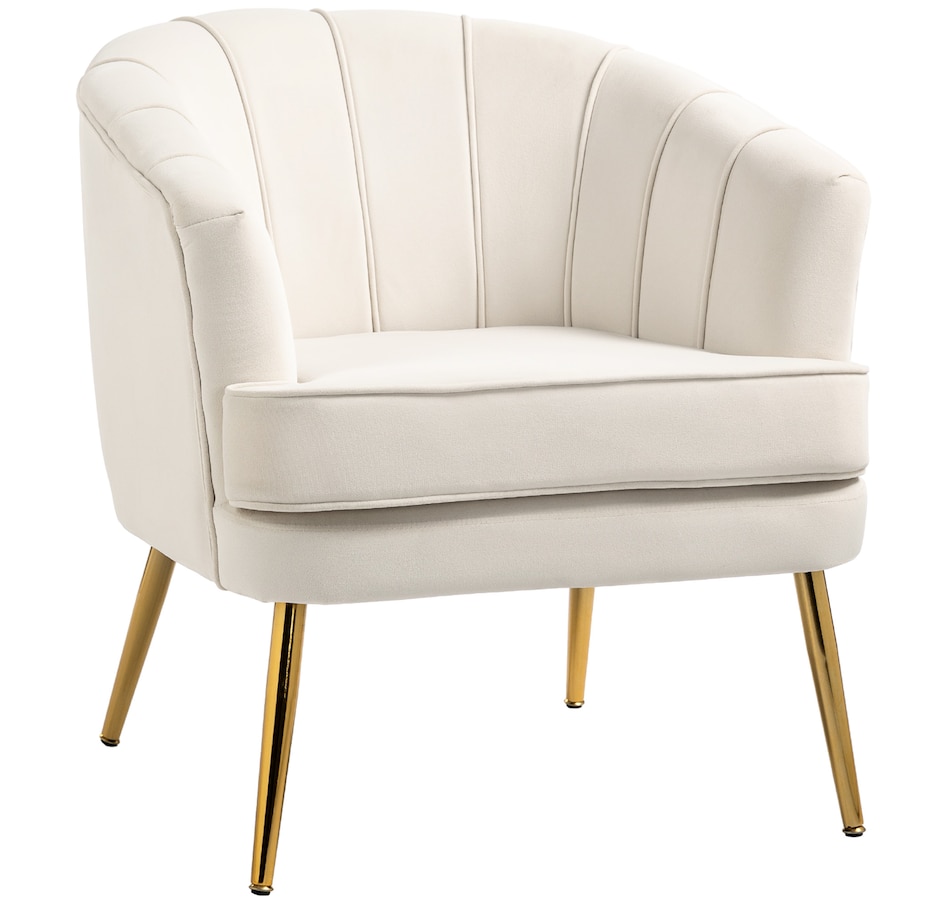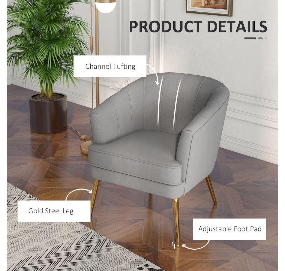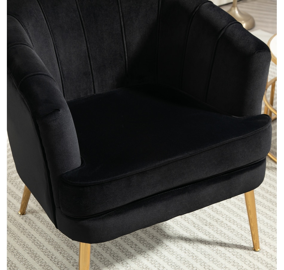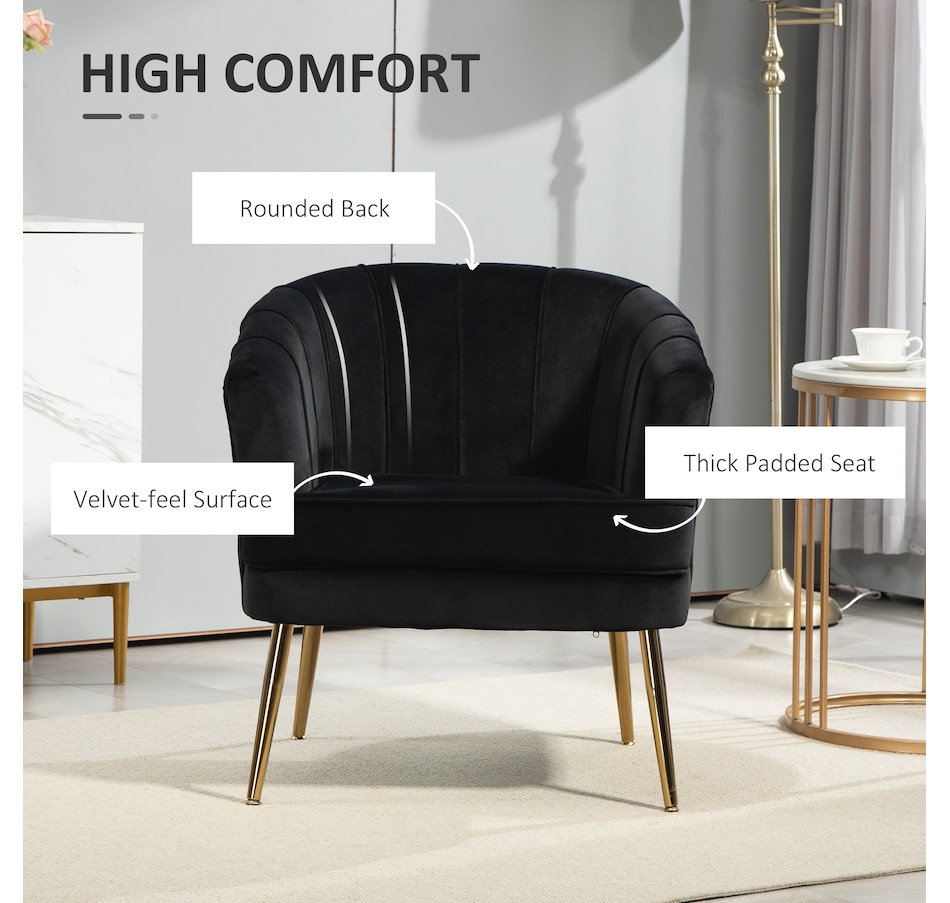 Modern accent chair make cozy corners a reality! An accent chair can be placed in a corner or under a window to create a cozy reading nook or a delicate conversation area. Accent chairs can even be incorporated into hallways or other less conventional spots, anywhere you like… Velvet-touch surface, padded seat and a-piece styled back and armrest offers optimum comfort, with gold steel legs and channel tufting to make it a beautiful and bold addition you'll love in your home.Features: