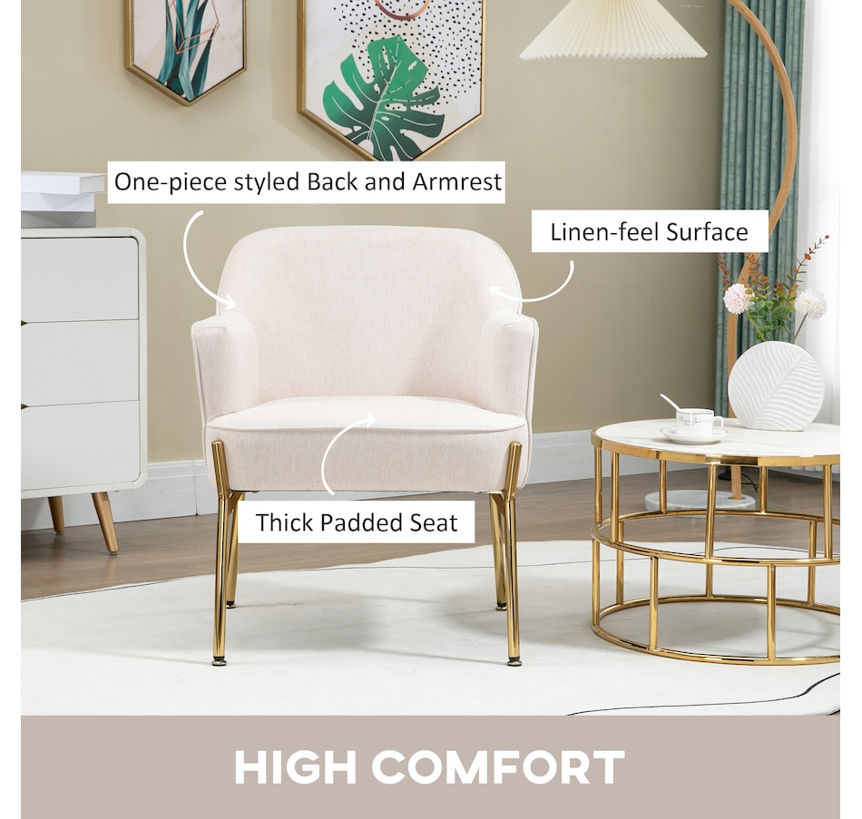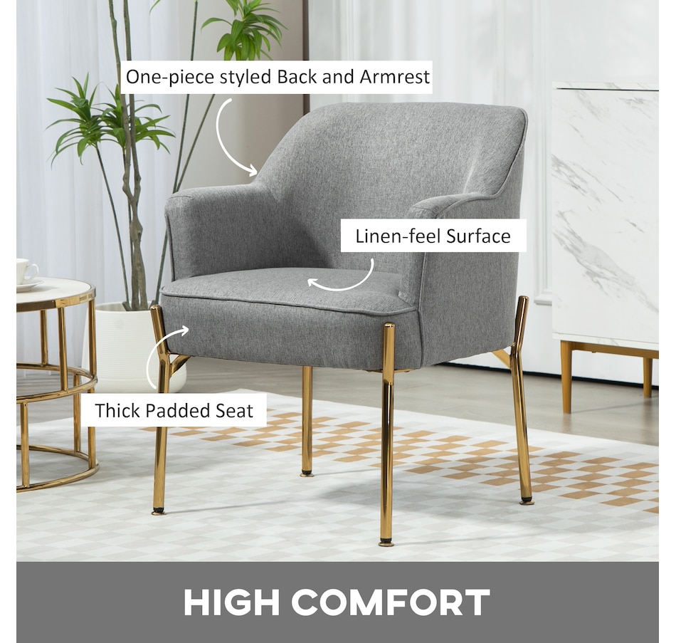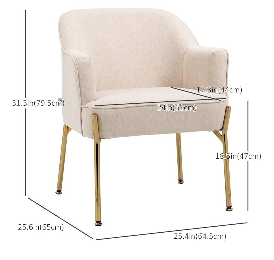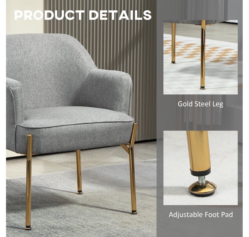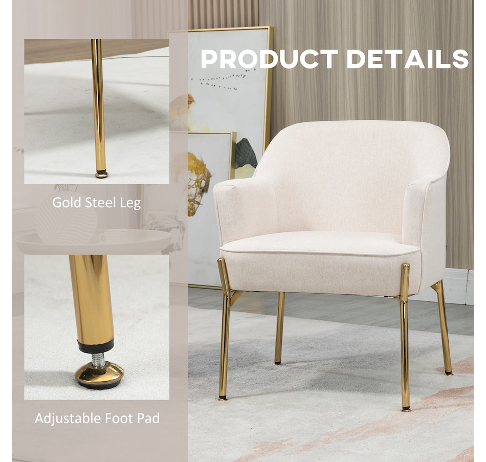 Fabric Accent Chair Armchair with Gold Metal Legs