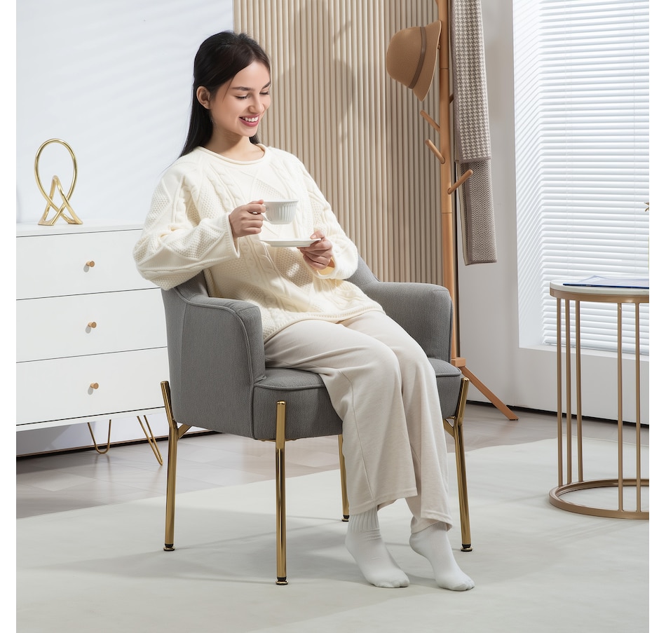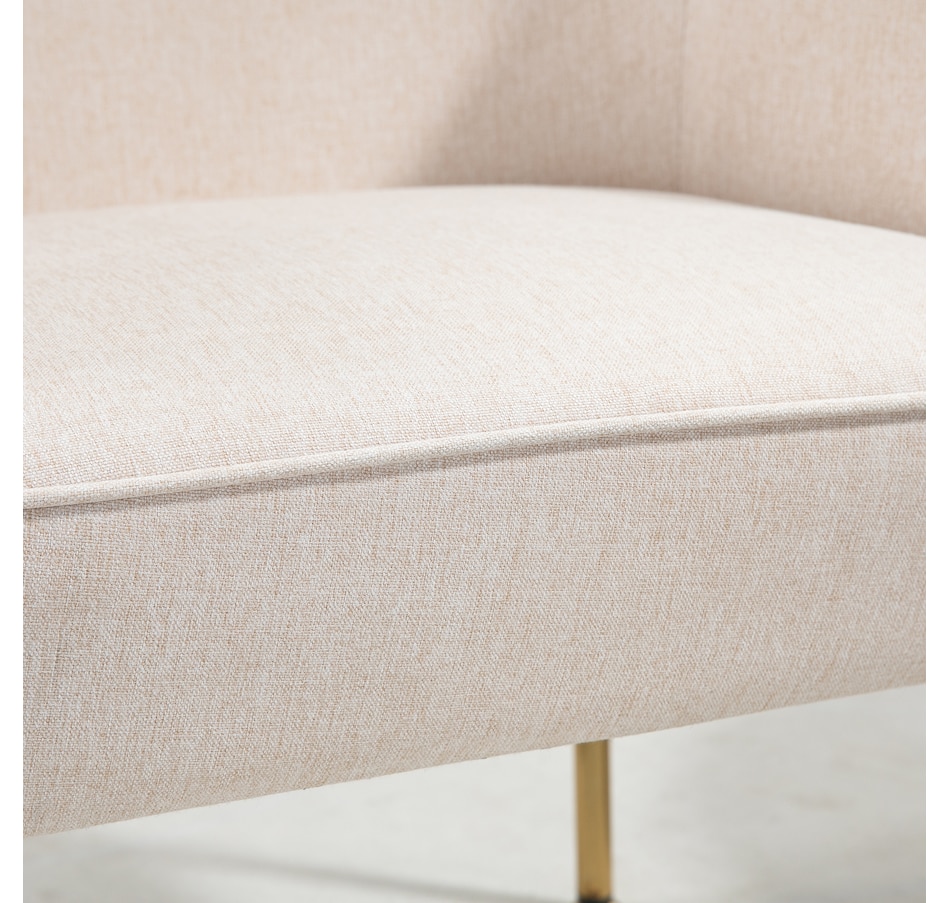 Accent chairs make cozy corners a reality! They can be placed in a corner or under a window to create a cozy reading nook or a delicate conversation area. They can even be incorporated into hallways or less conventional spots anywhere you like. The linen-touch surface, padded seat, and seamlessly styled back and armrests offer optimum comfort, while the gold steel legs add a beautiful and bold touch to your home.