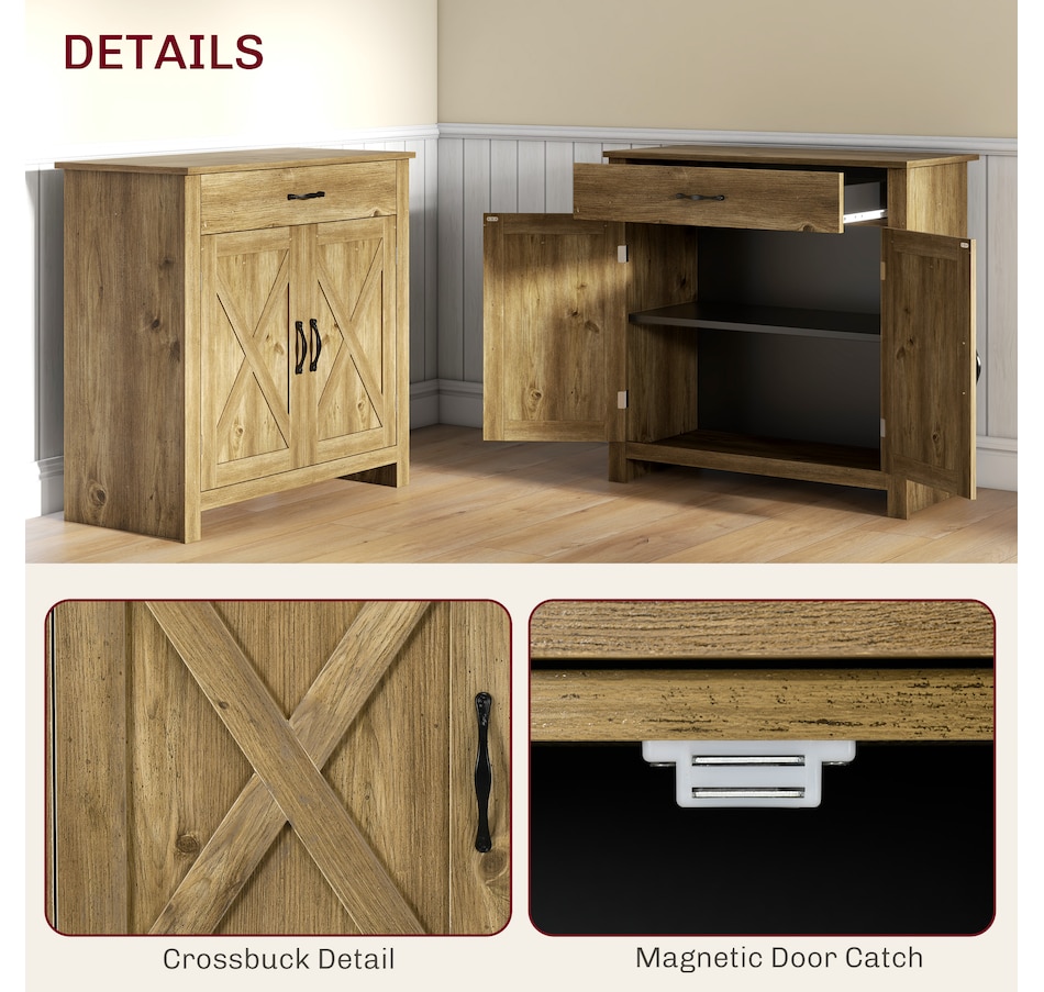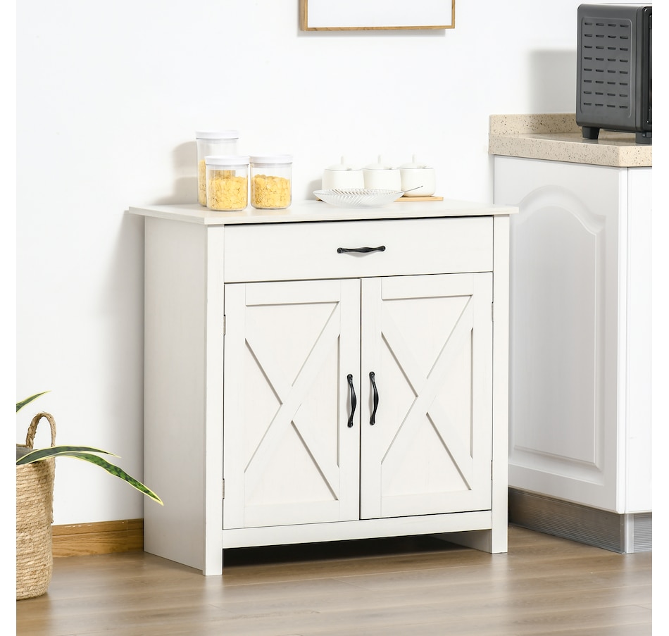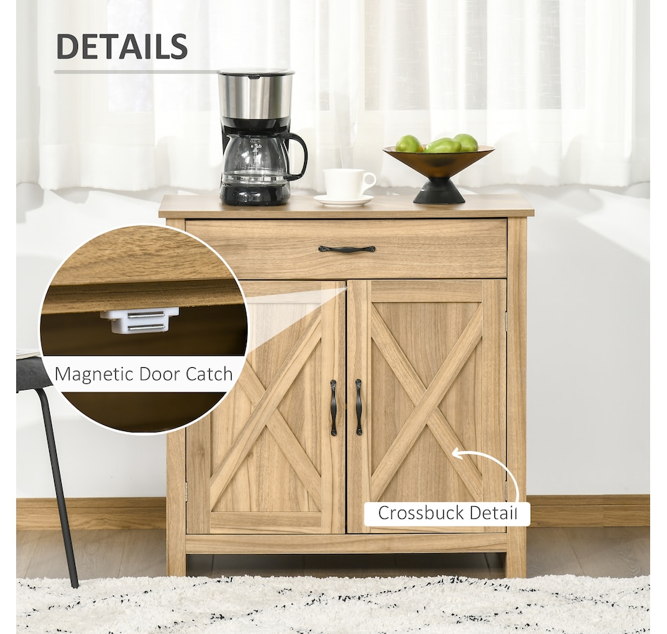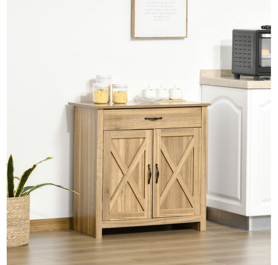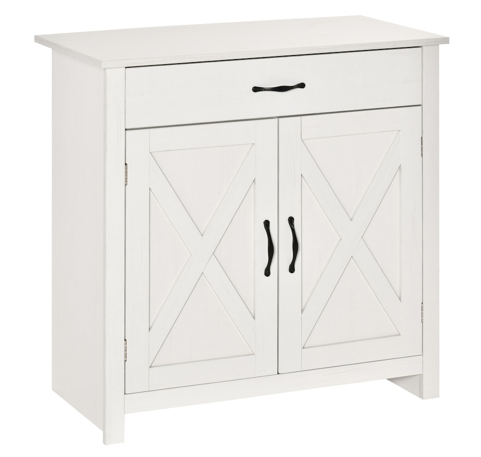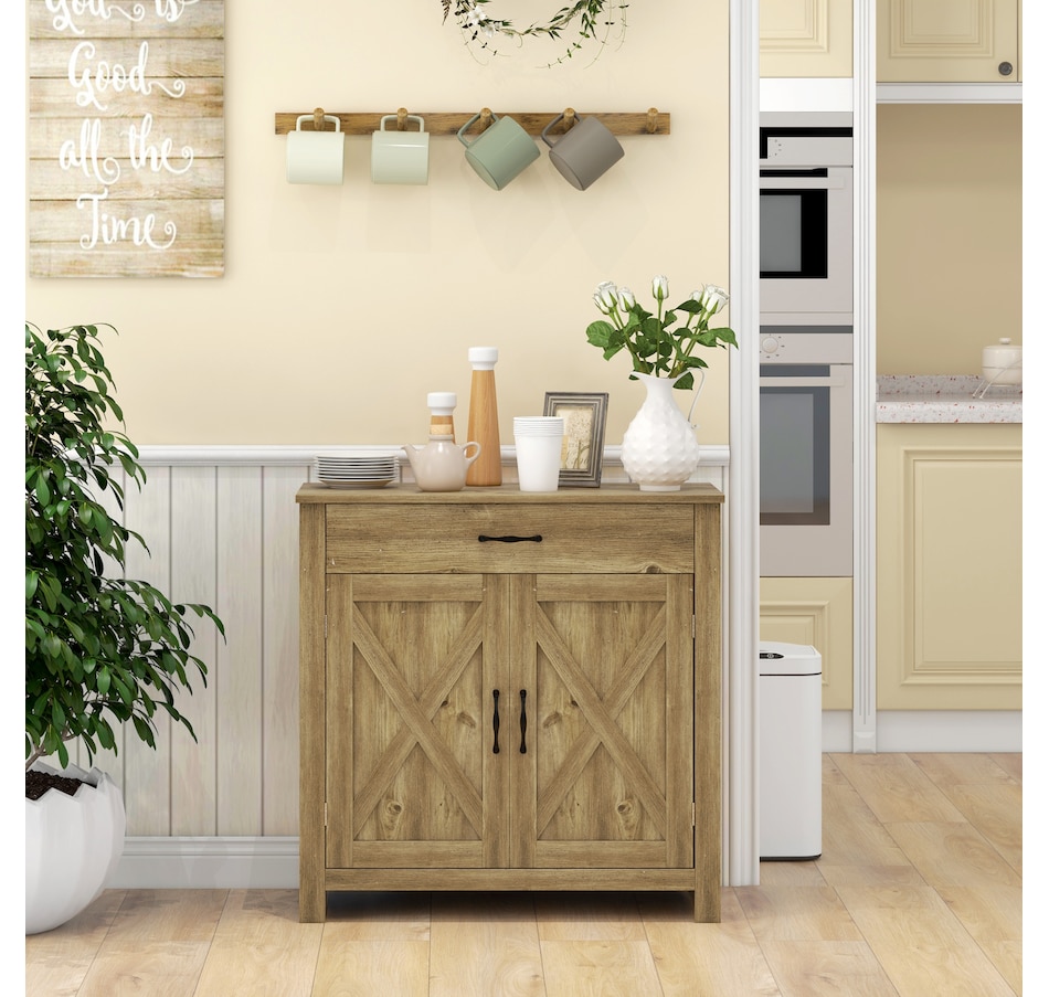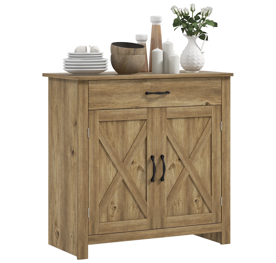 Enjoy relaxing indoor time with this farmhouse styled sideboard from HOMCOM. Credenza with an enclosed cabinet and a spacious drawer provides additional storage space to store utensils, dry goods, magazines and more. Unique crossbuck is simply striking and sure to elevate your house's charm.