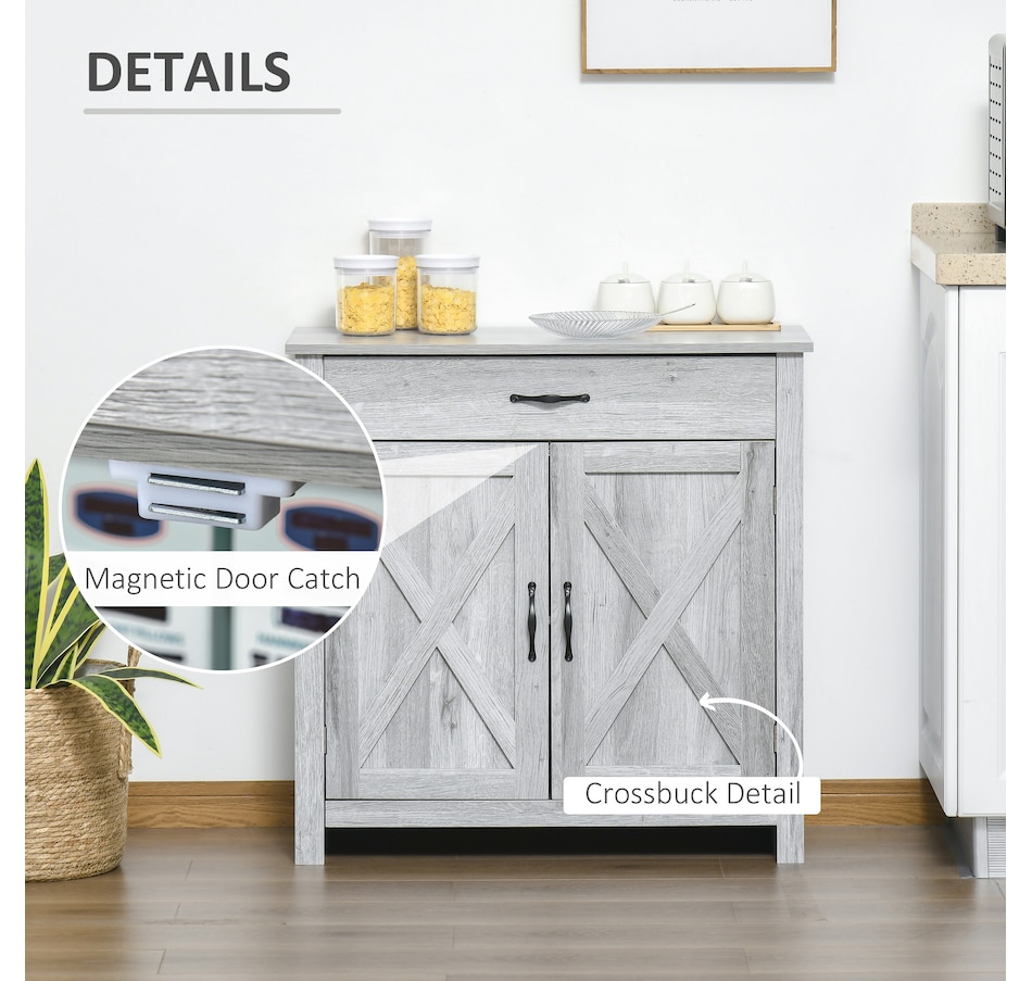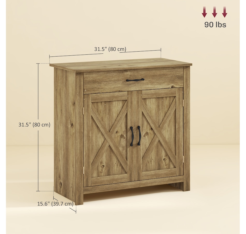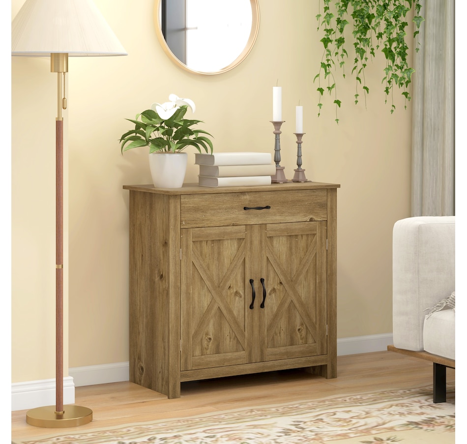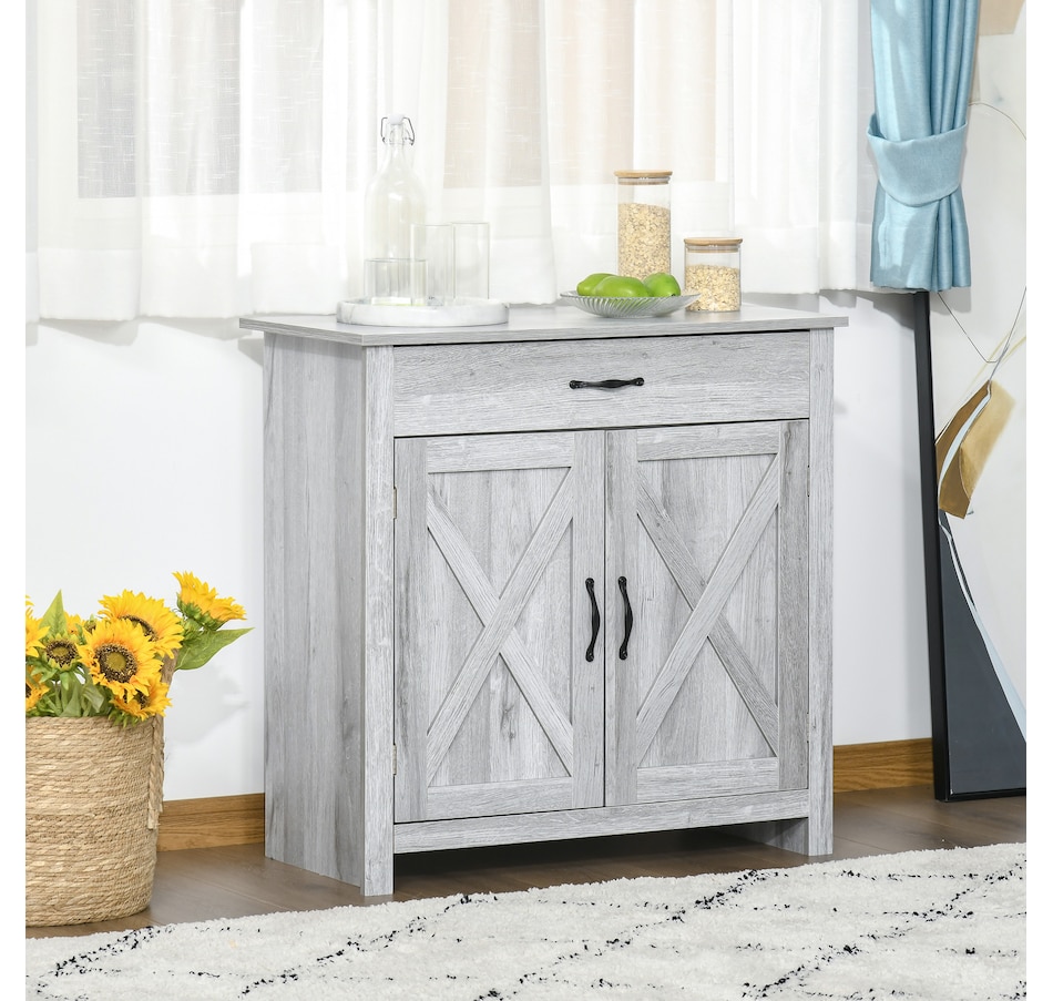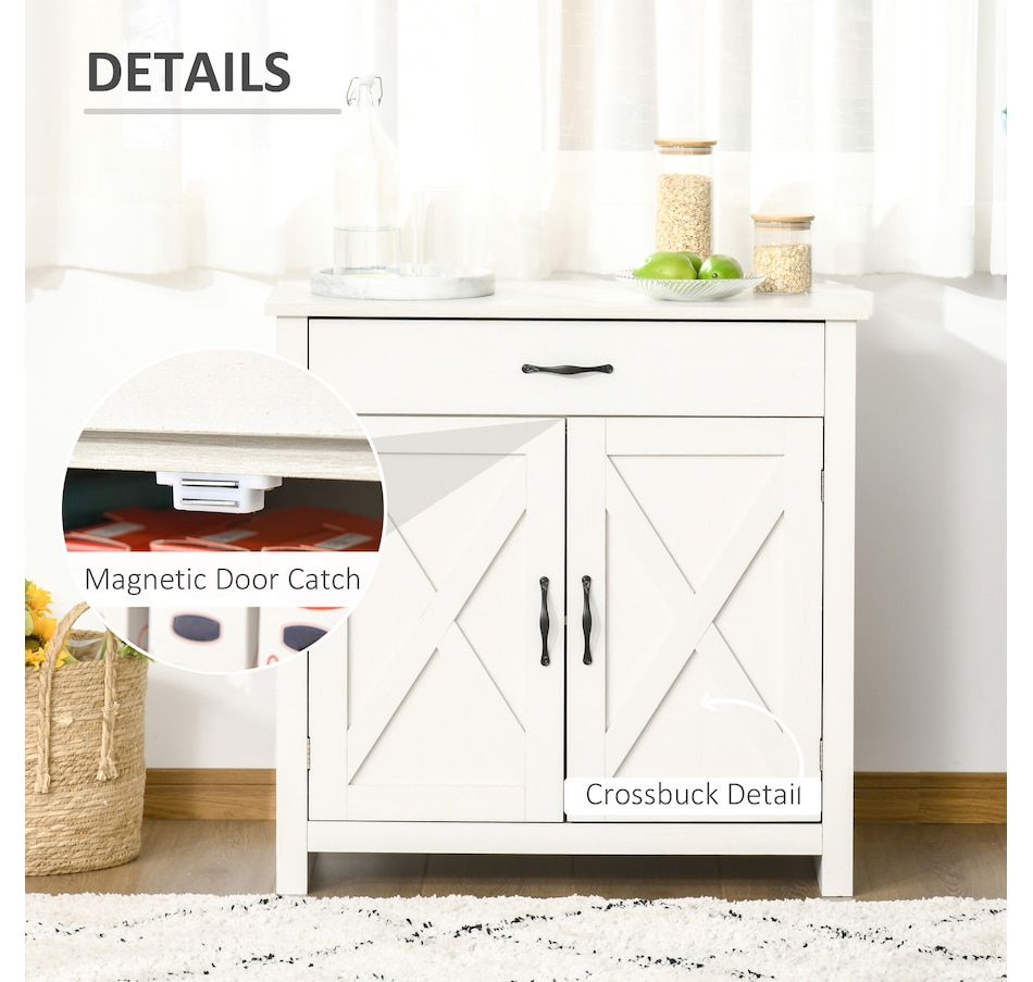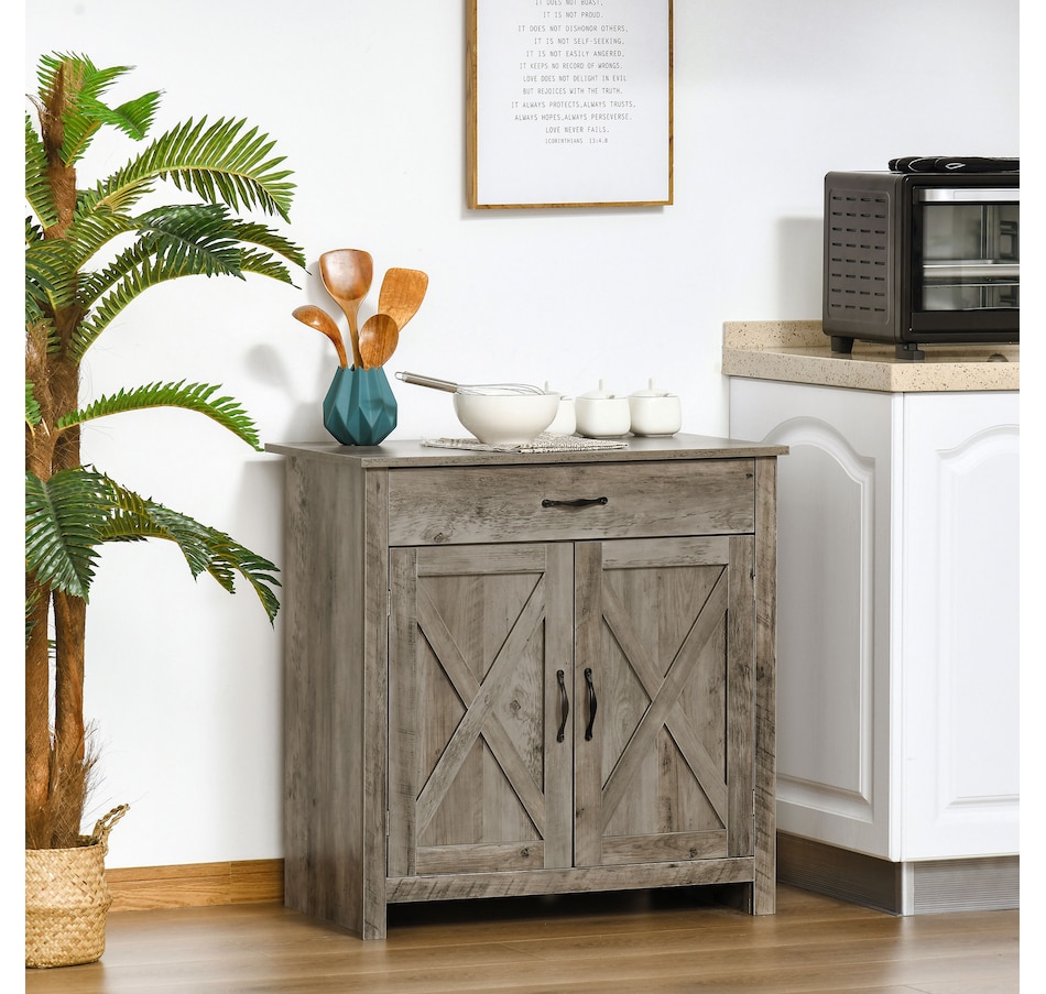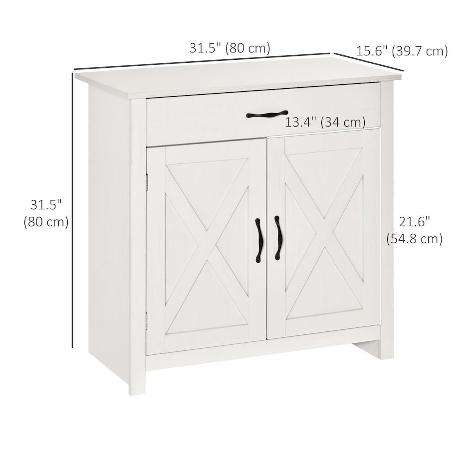 Enjoy relaxing indoor time with this farmhouse styled sideboard from HOMCOM. Credenza with an enclosed cabinet and a spacious drawer provides additional storage space to store utensils, dry goods, magazines and more. Unique crossbuck is simply striking and sure to elevate your house's charm.
