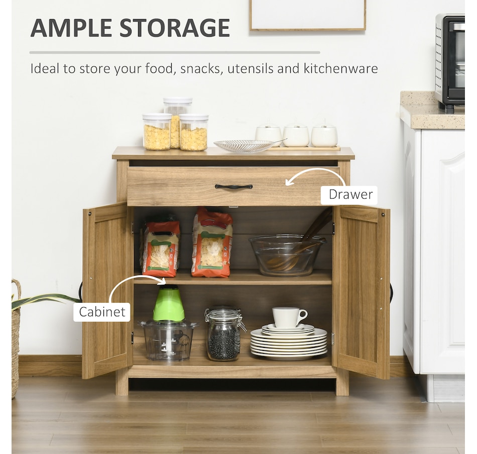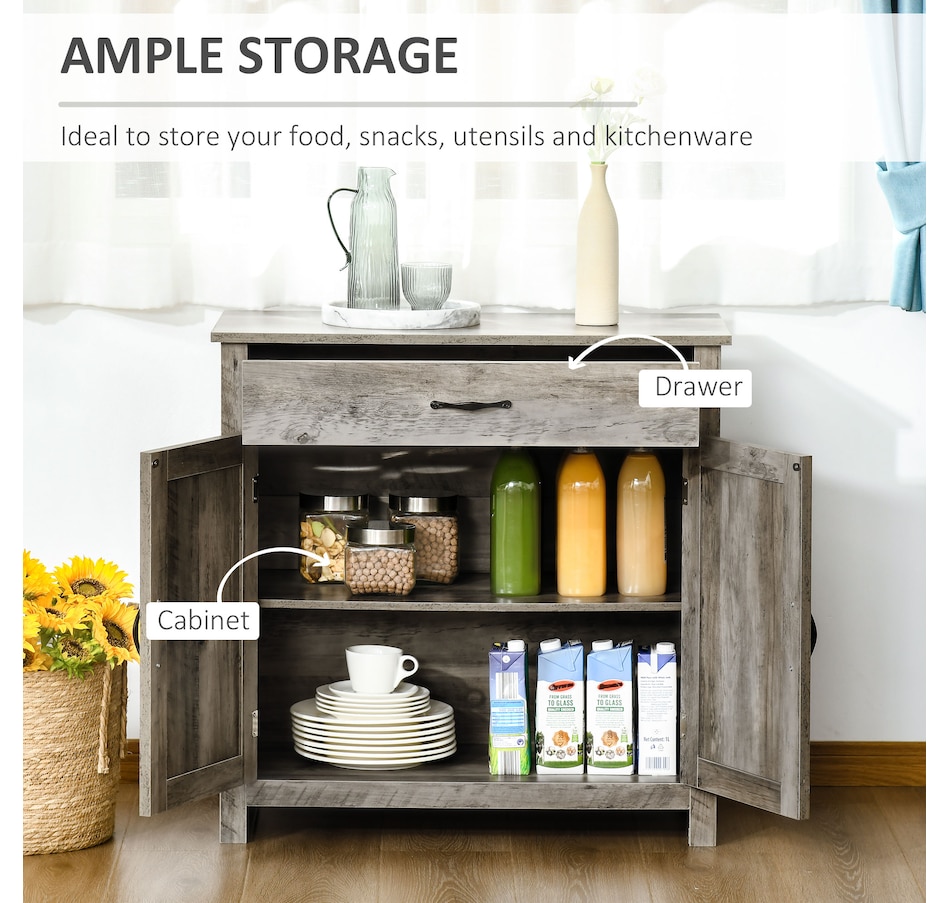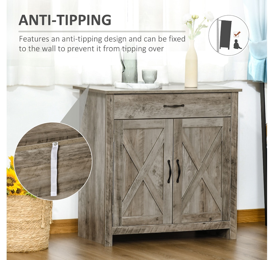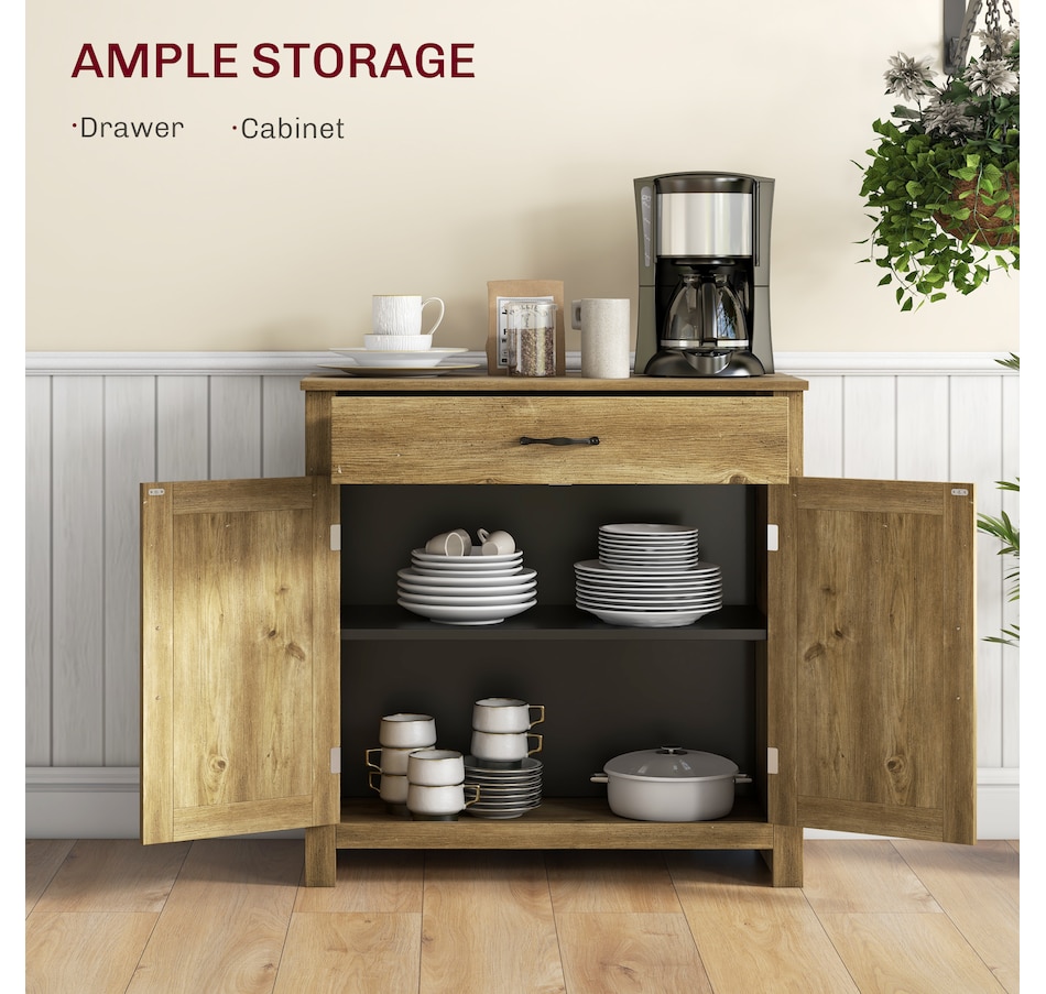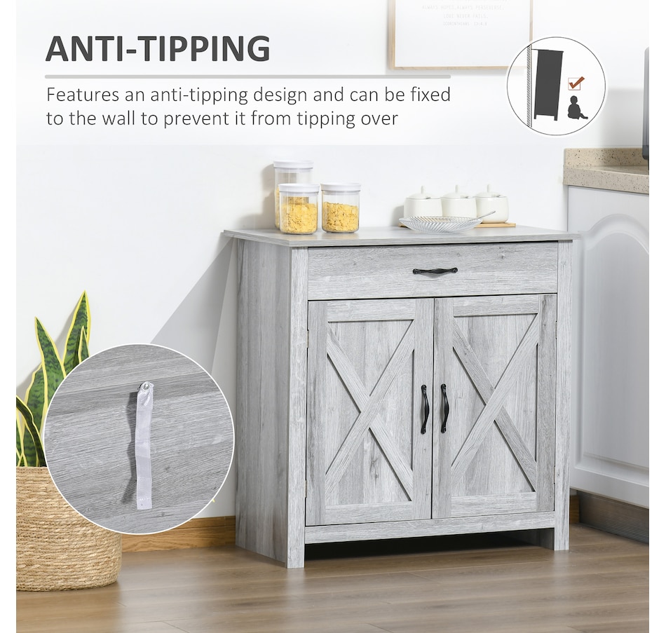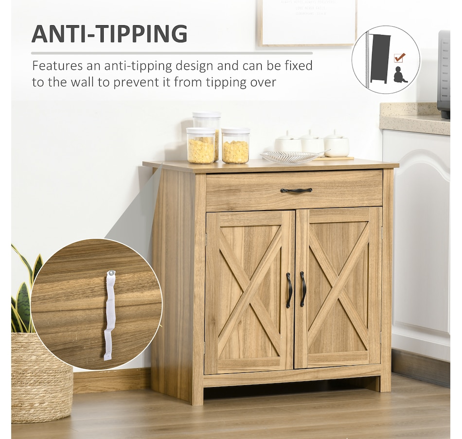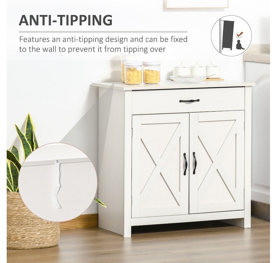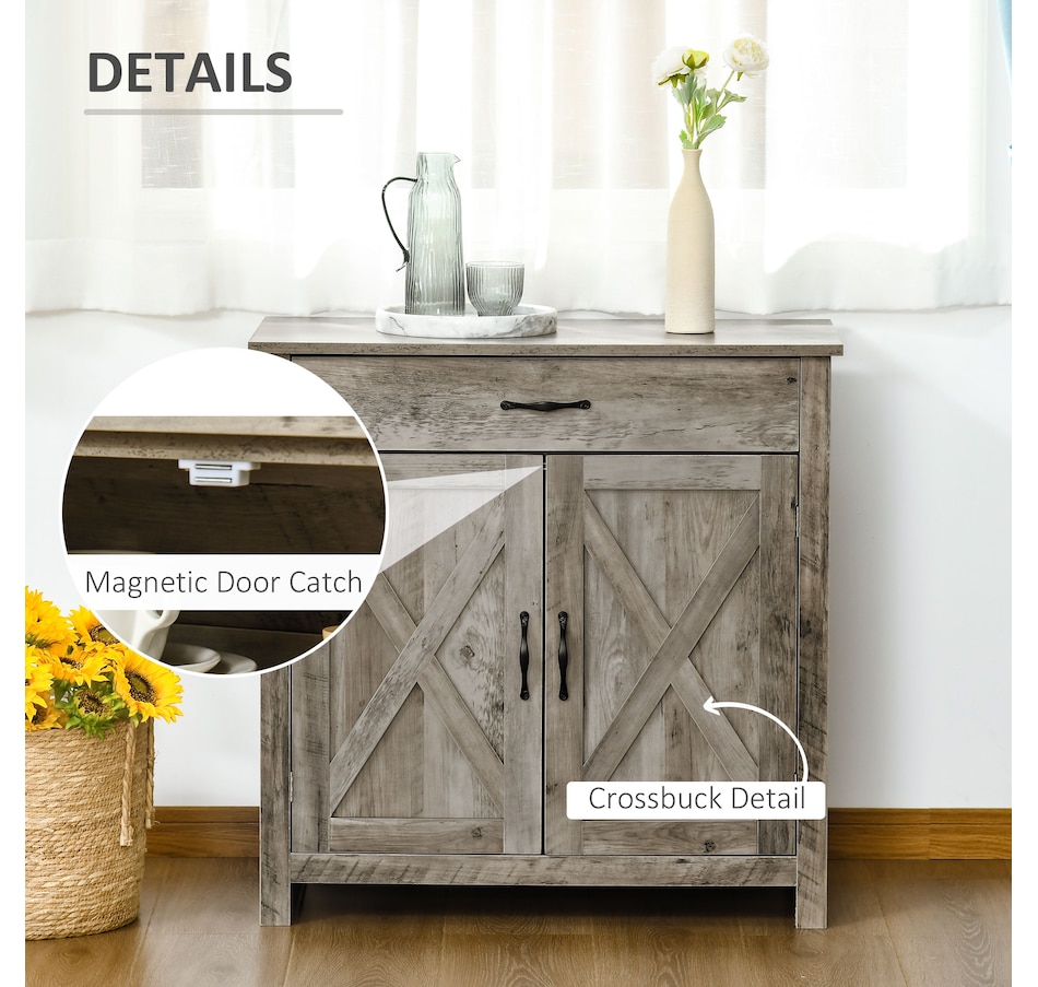 Enjoy relaxing indoor time with this farmhouse styled sideboard from HOMCOM. Credenza with an enclosed cabinet and a spacious drawer provides additional storage space to store utensils, dry goods, magazines and more. Unique crossbuck is simply striking and sure to elevate your house's charm.