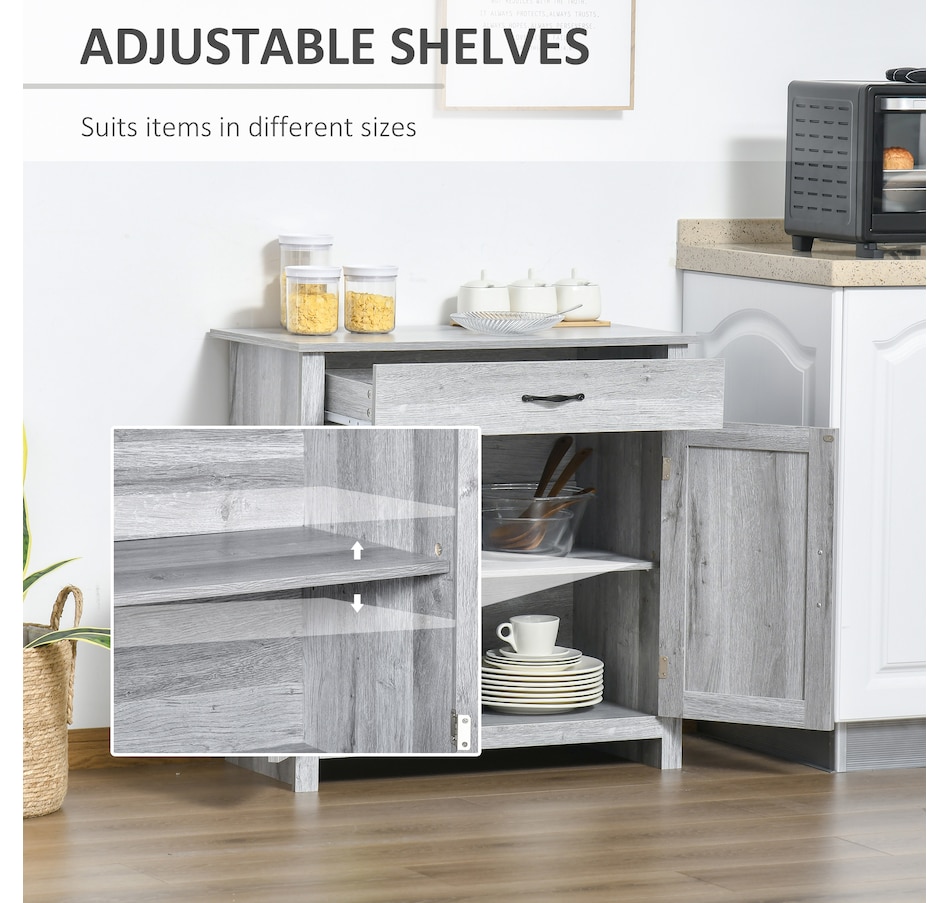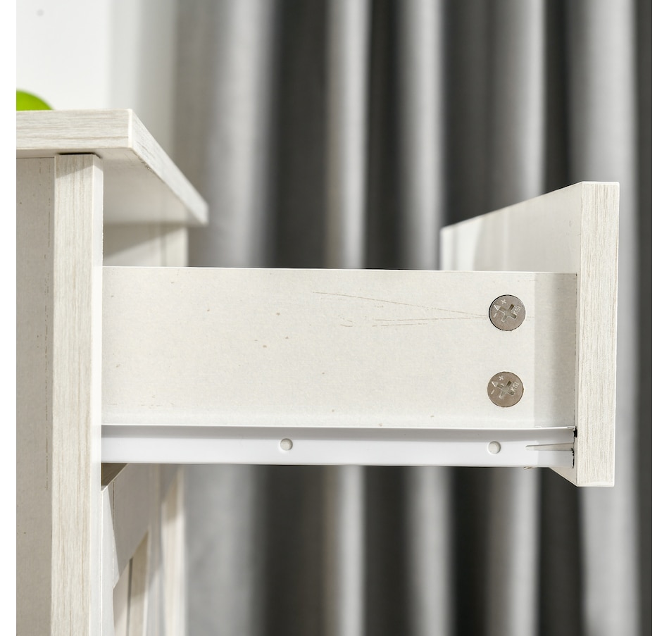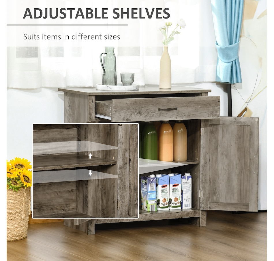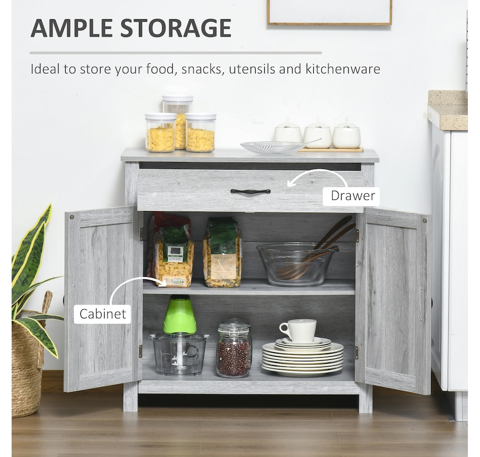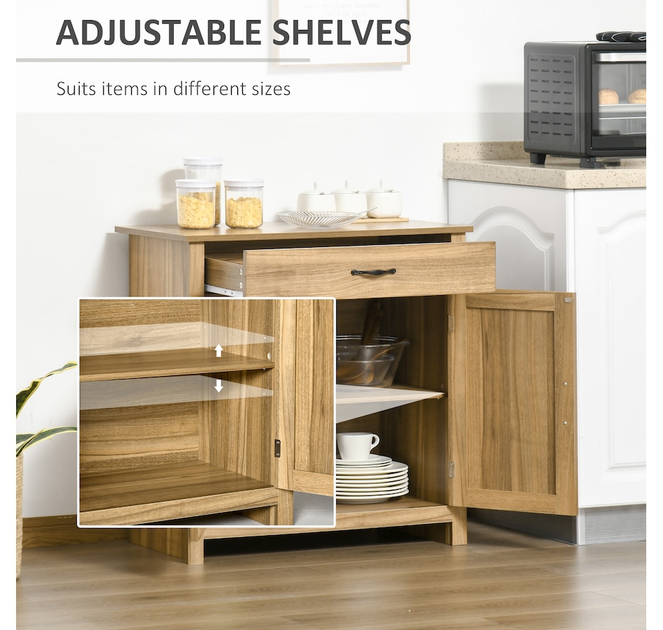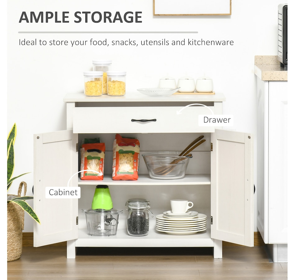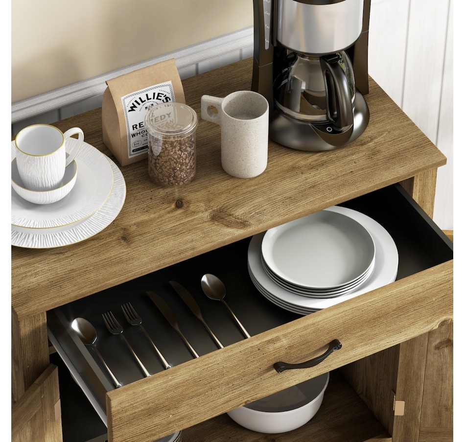 Enjoy relaxing indoor time with this farmhouse styled sideboard from HOMCOM. Credenza with an enclosed cabinet and a spacious drawer provides additional storage space to store utensils, dry goods, magazines and more. Unique crossbuck is simply striking and sure to elevate your house's charm.