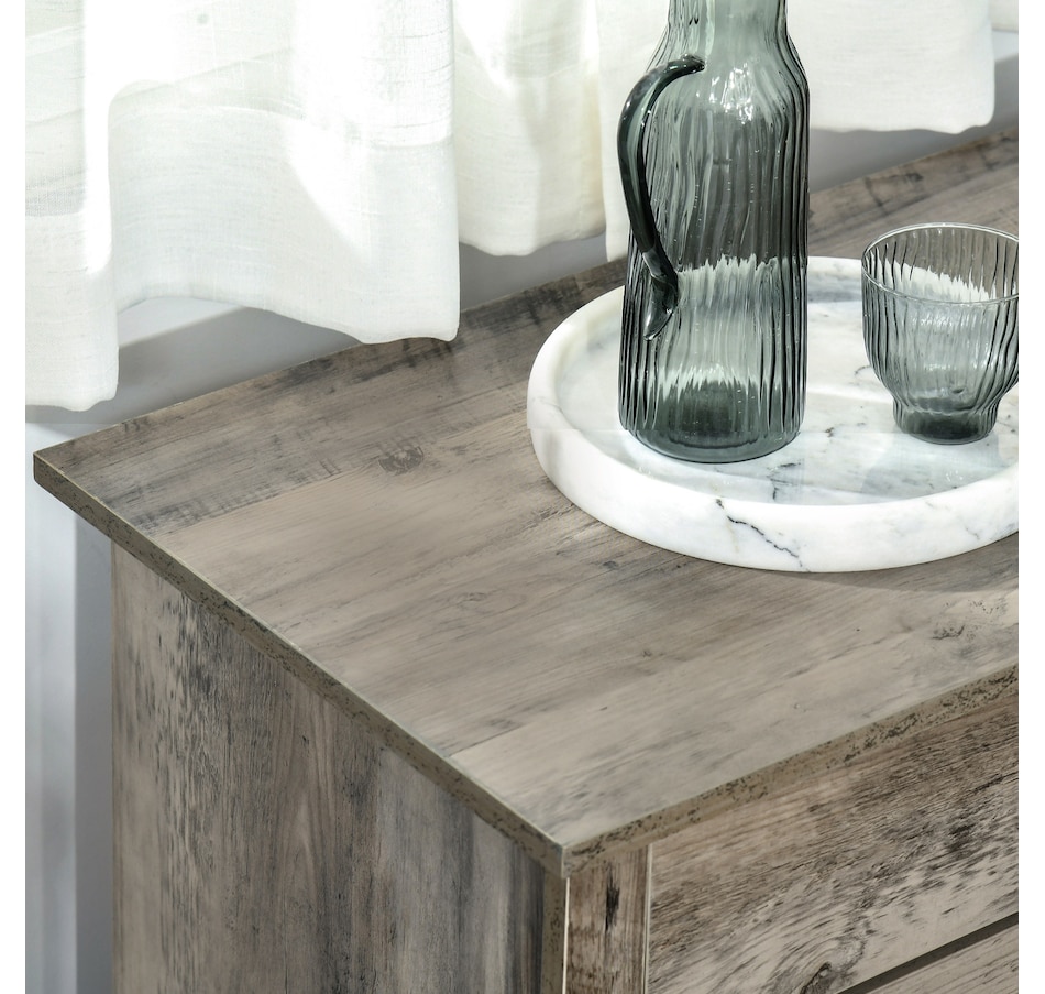 ● The surface of this sideboard delivers a rustic style;