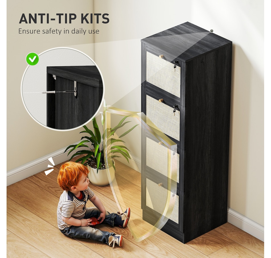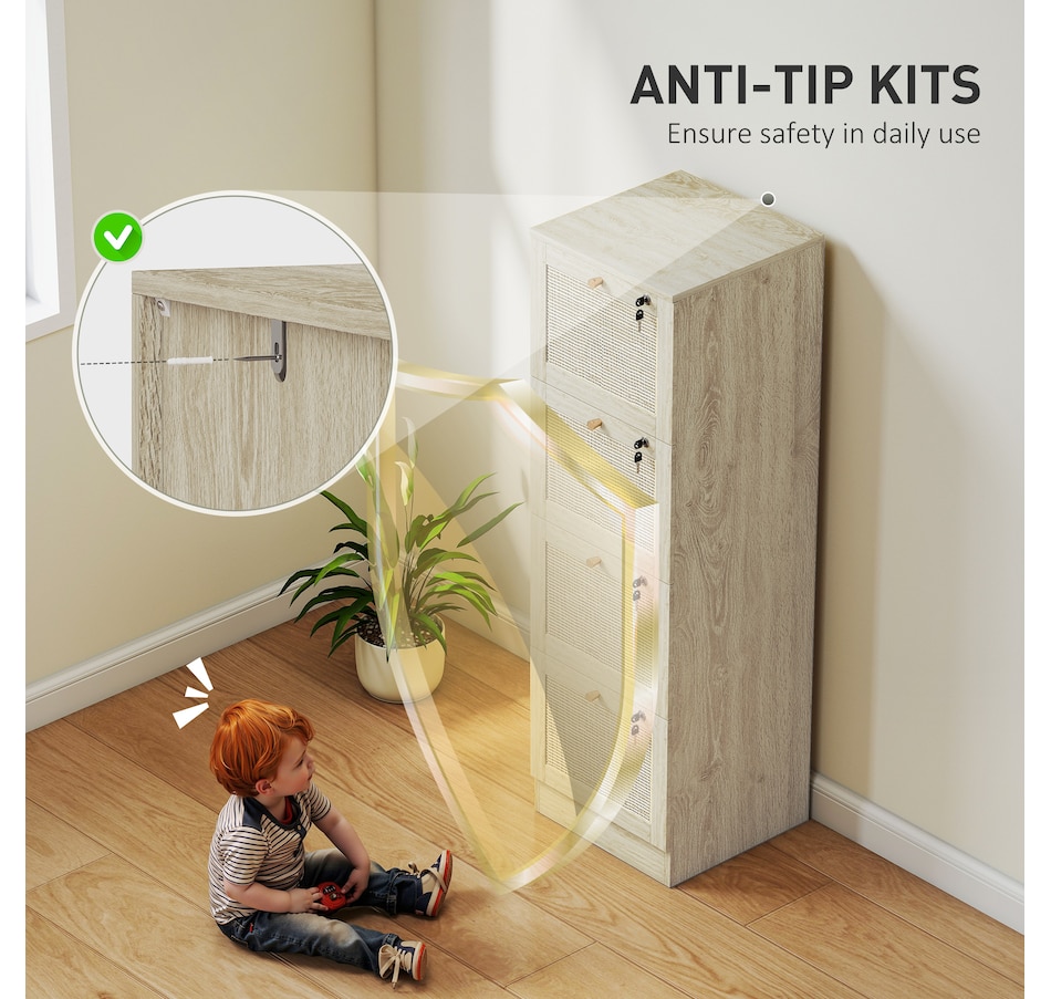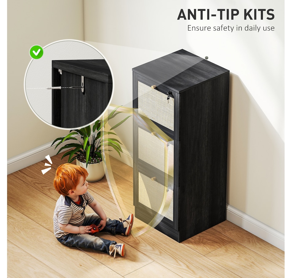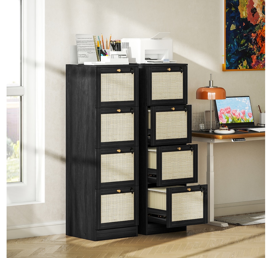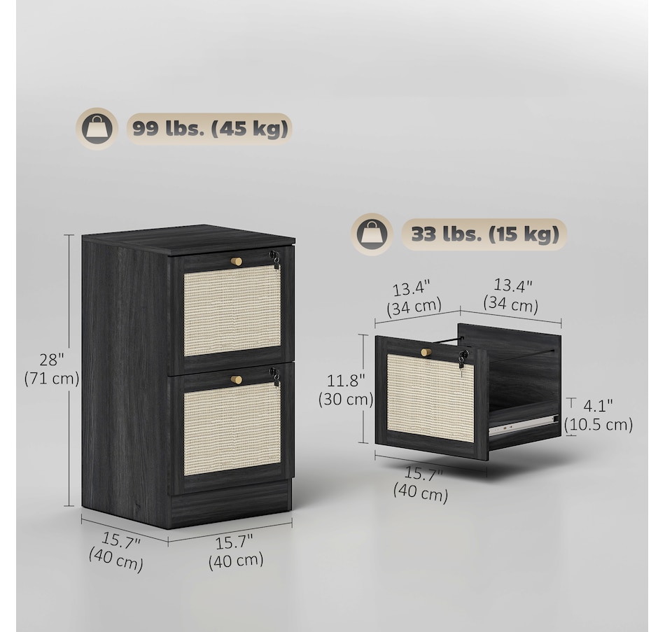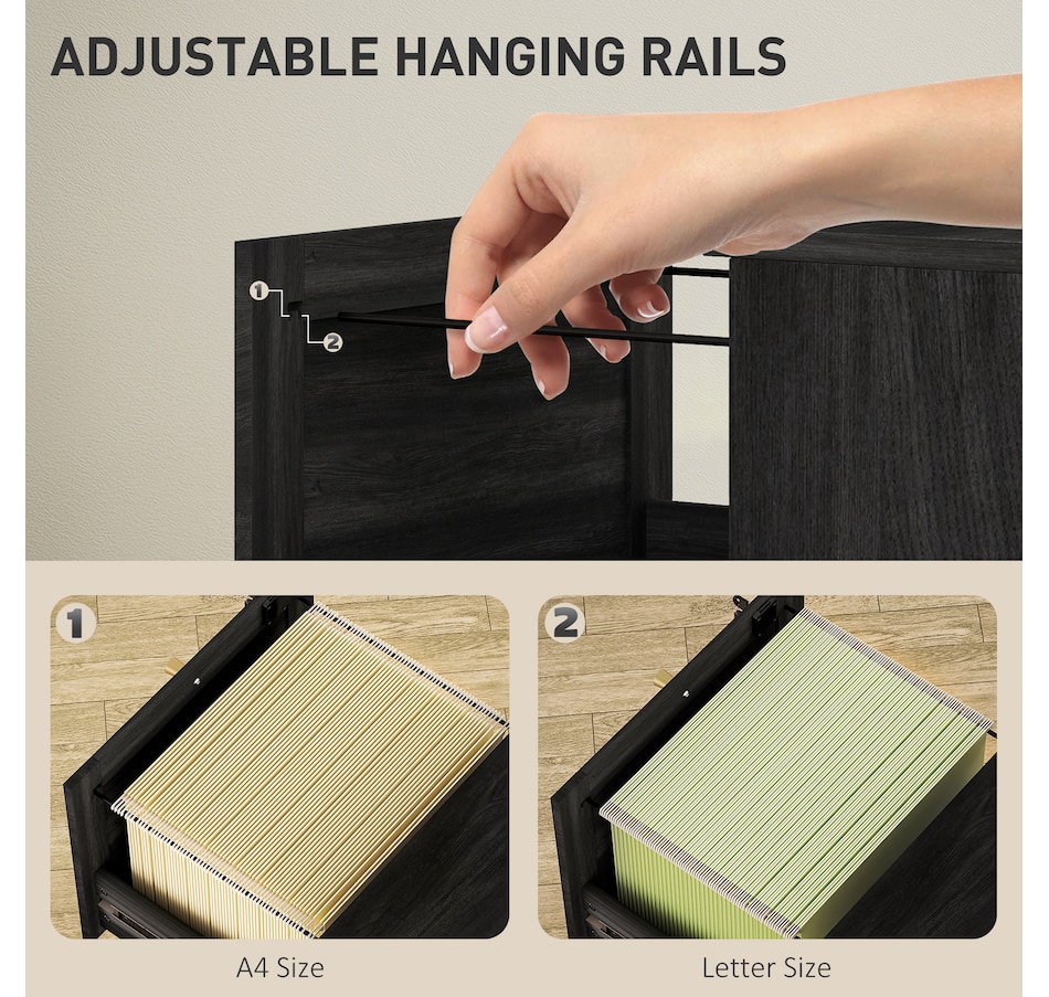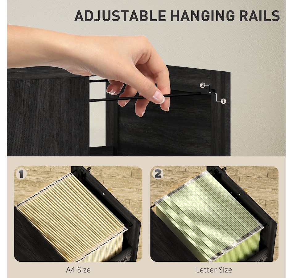 Transform your workspace with the file cabinet from HOMCOM, where natural rattan accents and wood grain finish create a bohemian charm. Imagine the peace of mind as each drawer locks securely, safeguarding your documents and enhancing your sense of security. With adjustable metal rods, this HOMCOM filing cabinet accommodates both A4 and letter-size files, streamlining your office routine and elevating your organizational efficiency.Features: