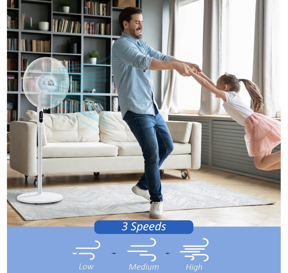 Stay comfortably cool during those hot Summer afternoons and nights with this electric fans for home from HOMCOM. This standing fan for bedroom is easy to use and the perfect addition to your home and office. It features variable settings to meet different cooling needs. The oscillation function direct exactly the air flow where you need it to. Bring cool to your bedroom!