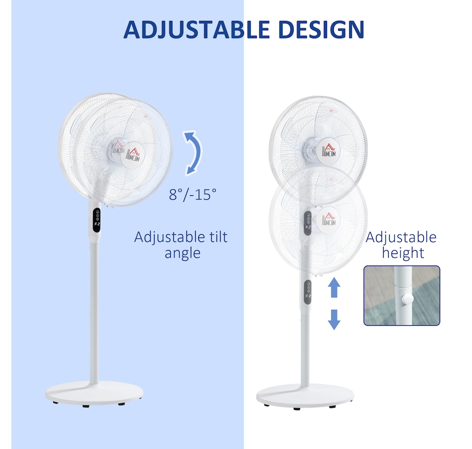 ● Adjustable height and 8° up and 15° down tilt angle of the floor fan can suit your specific cooling needs;