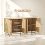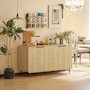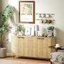Fluted Sideboard Buffet Cabinet with 4 Doors Adjustable Shelves Nature Wood