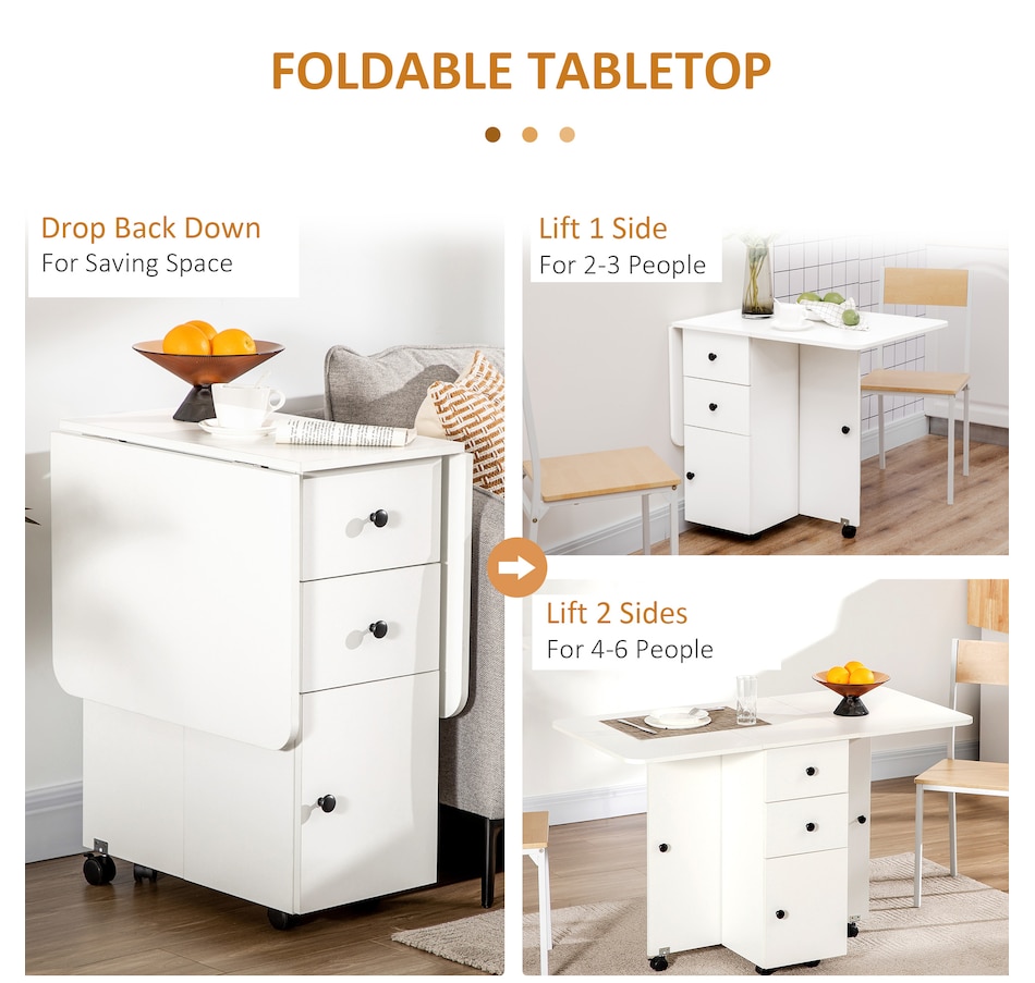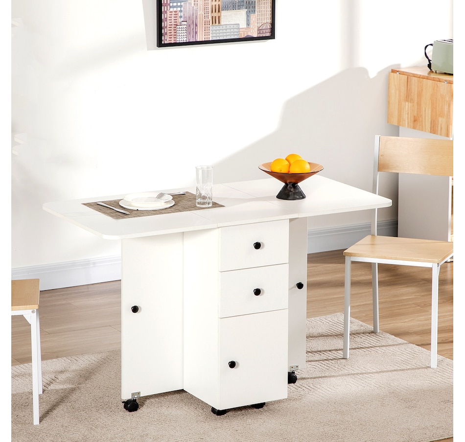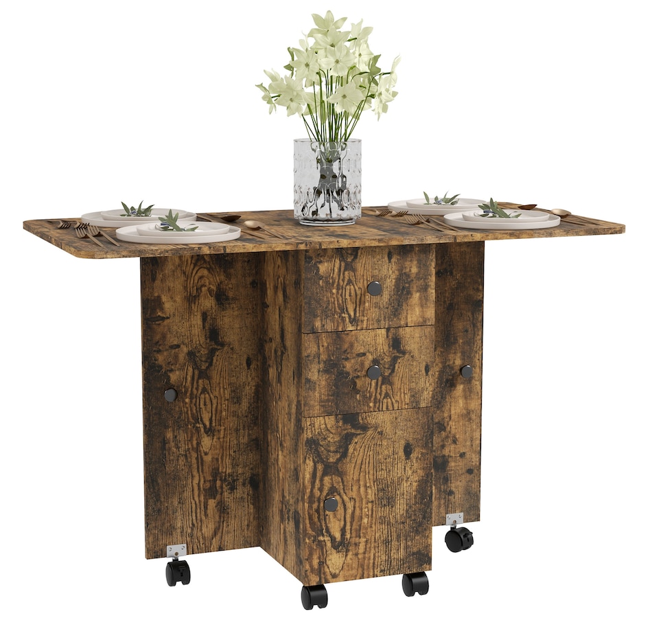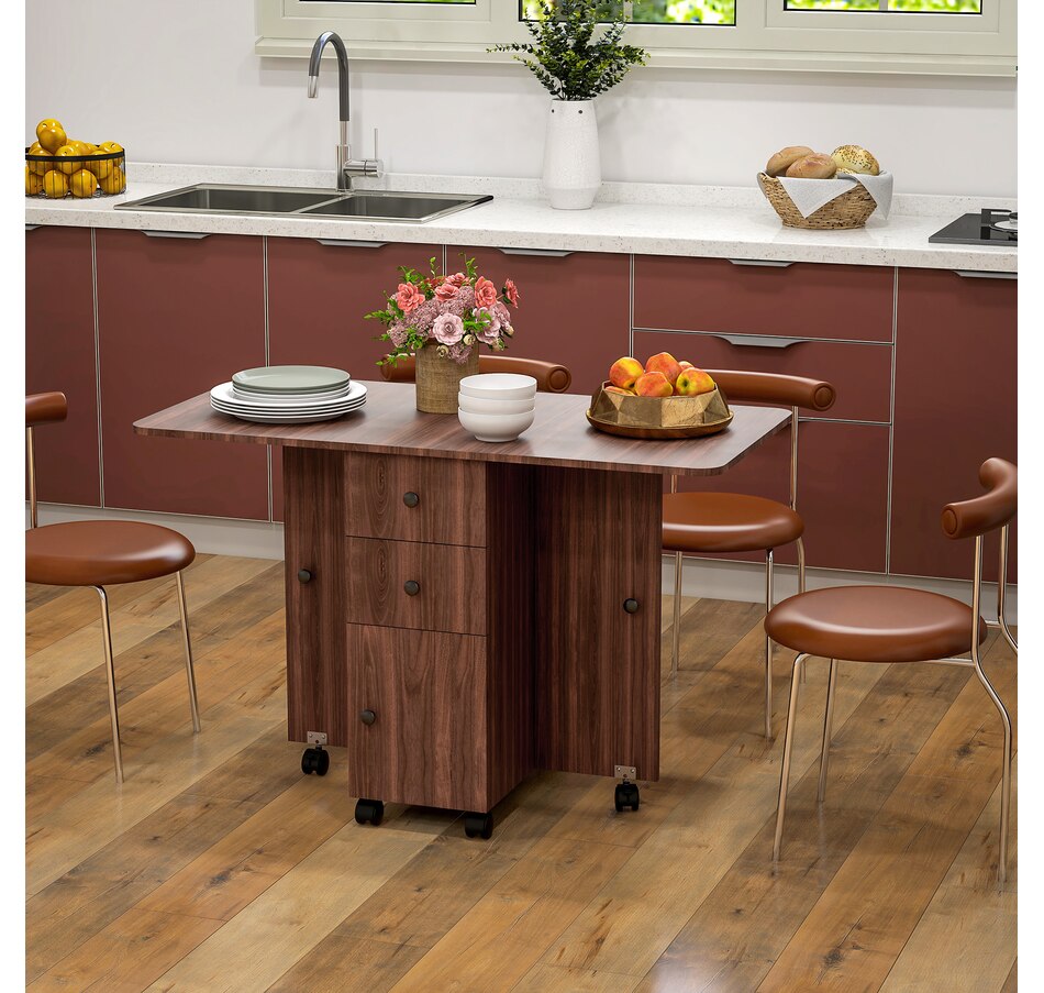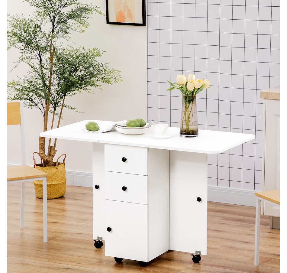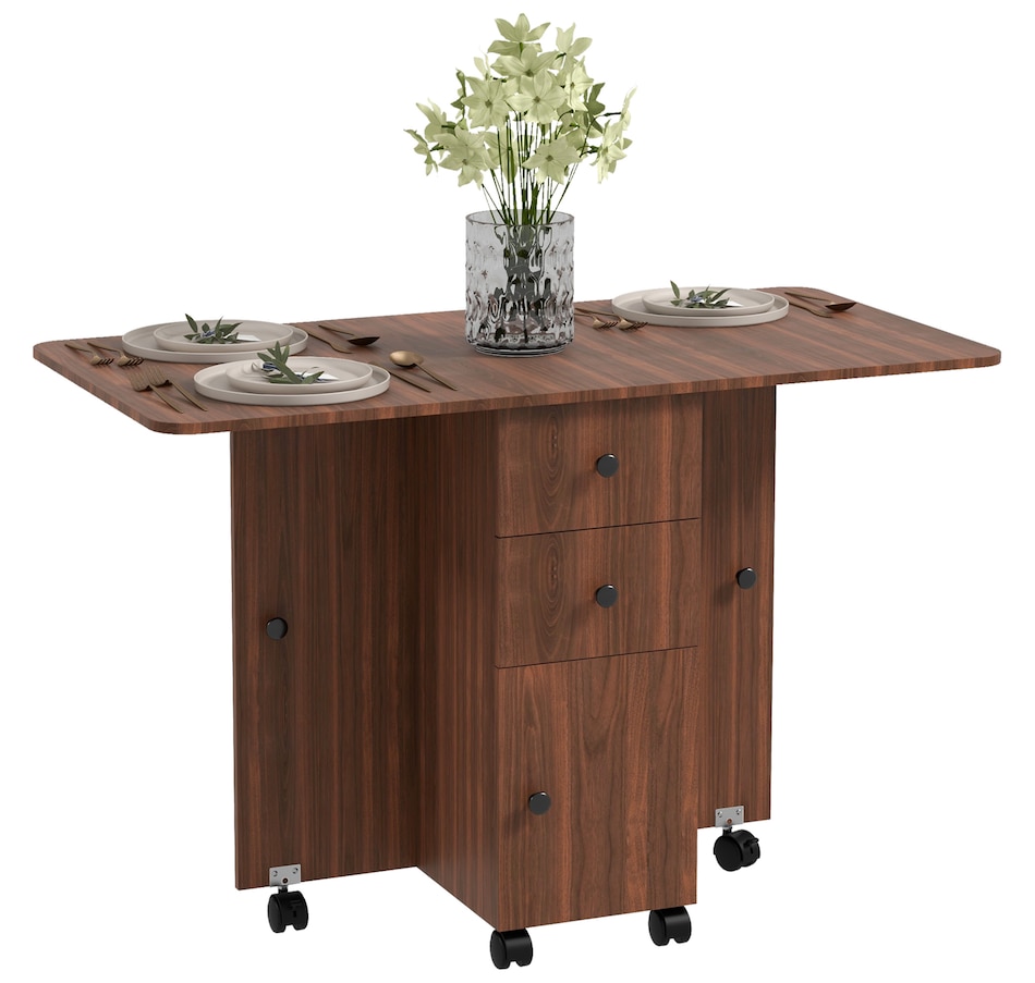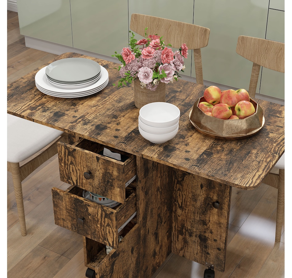 Foldable Dining Table, Rolling Kitchen Table With Drawers