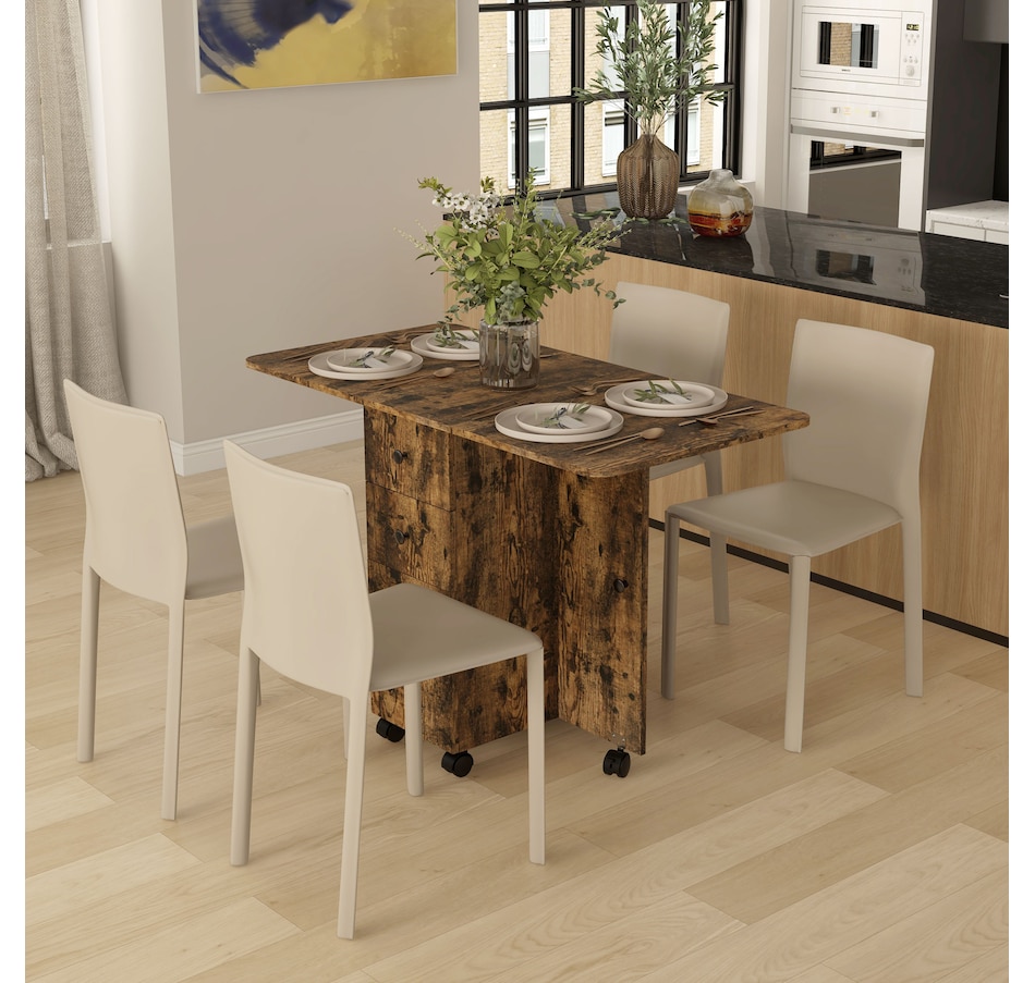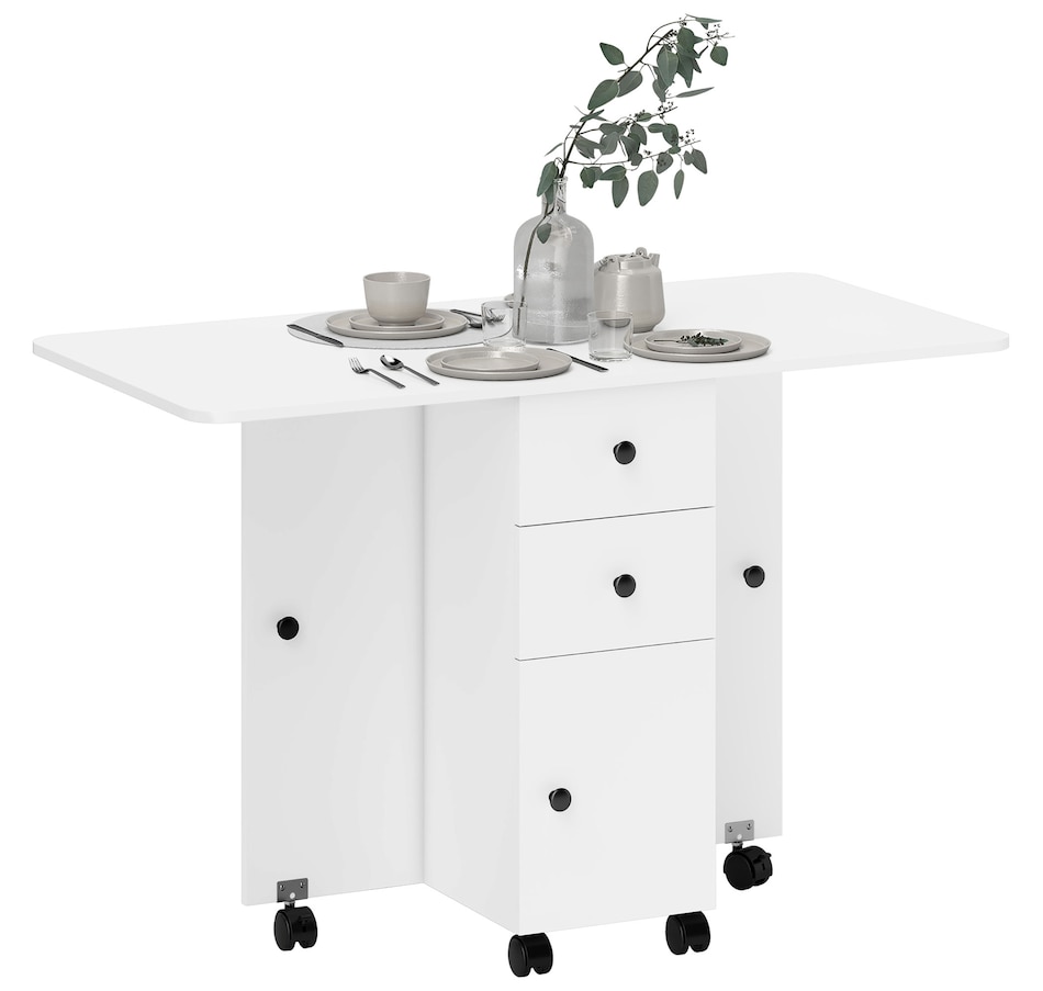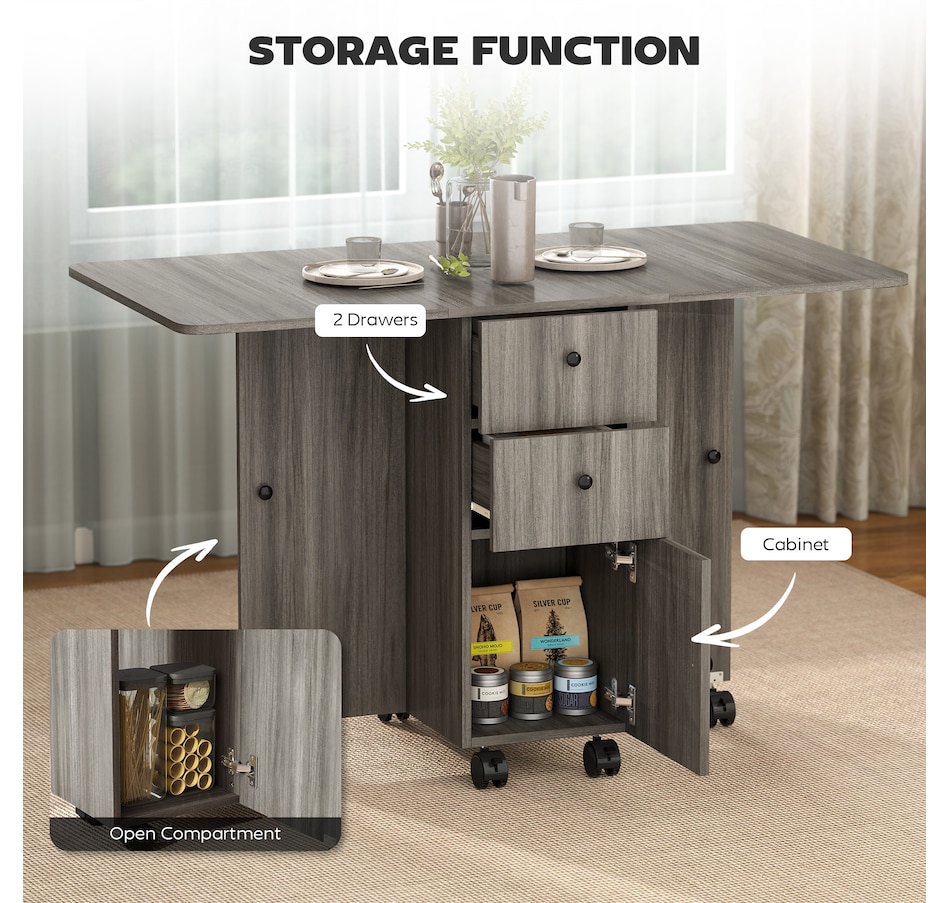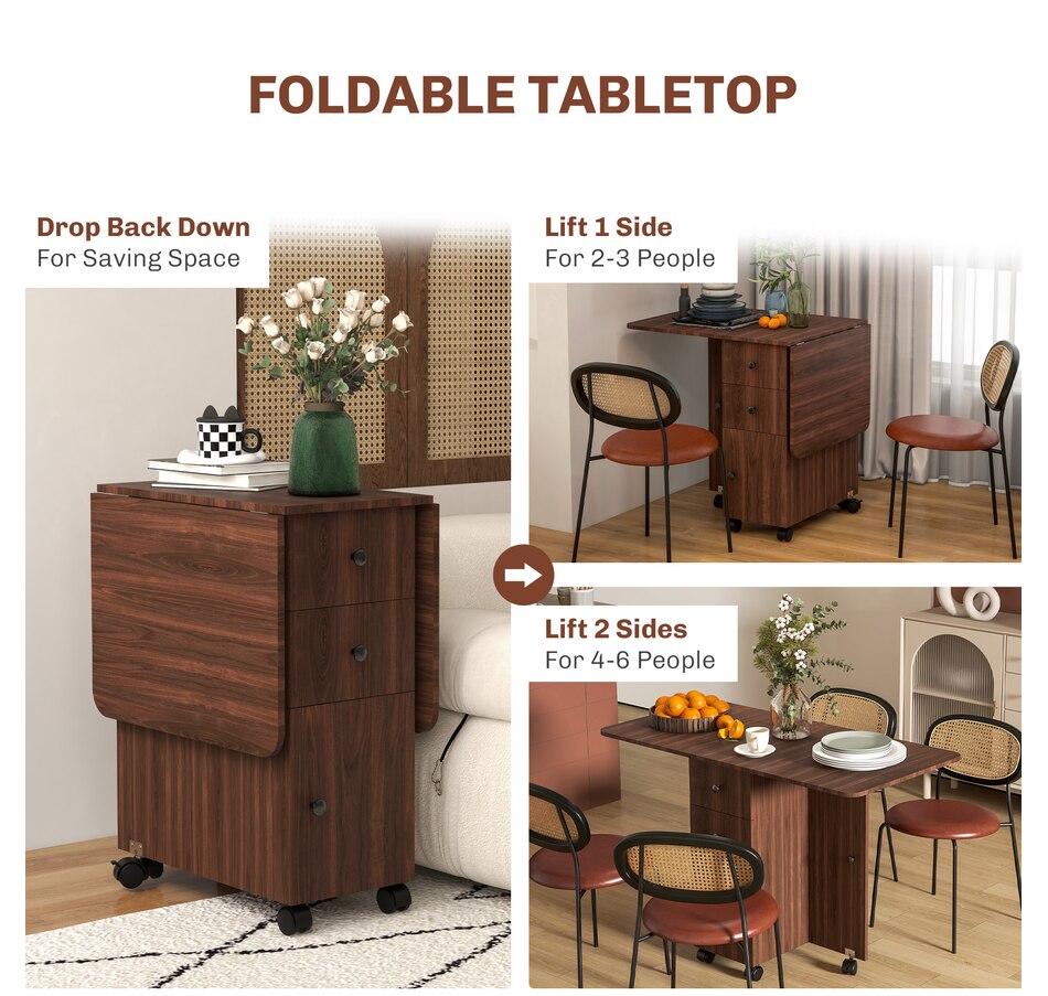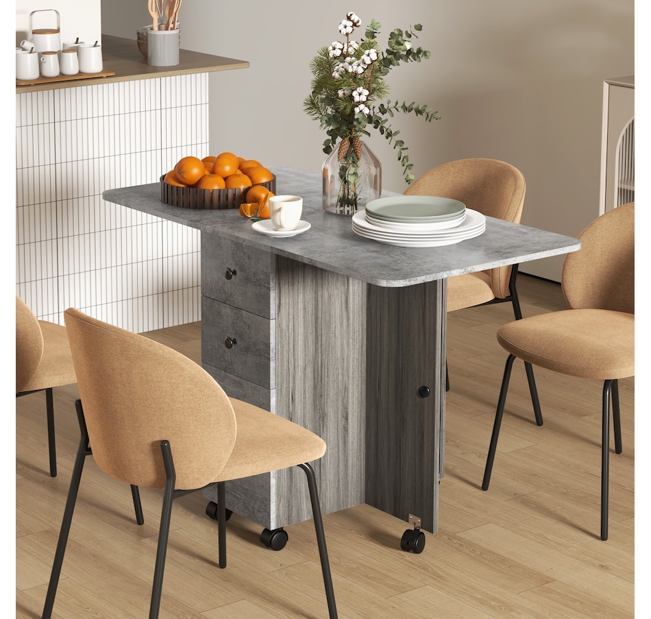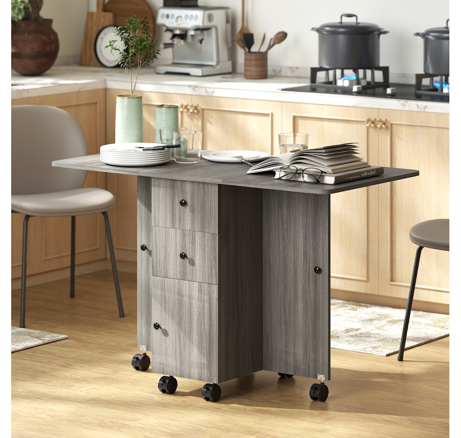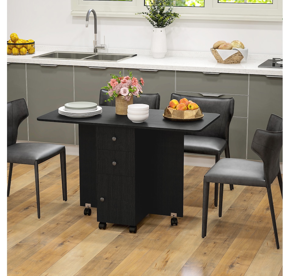 Foldable Dining Table, Rolling Kitchen Table With Drawers