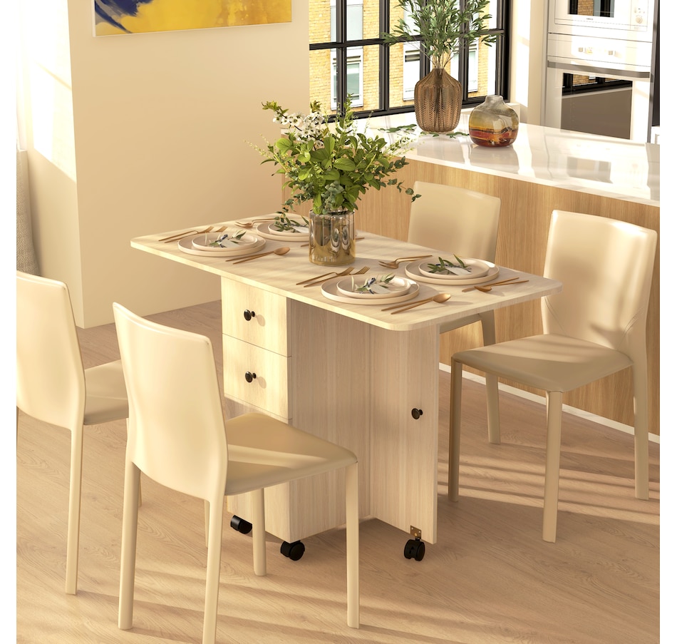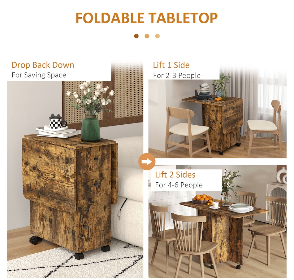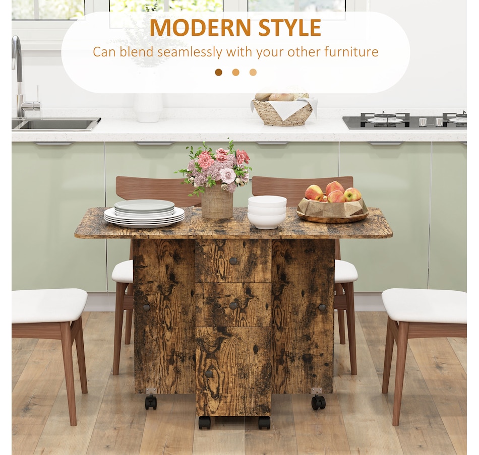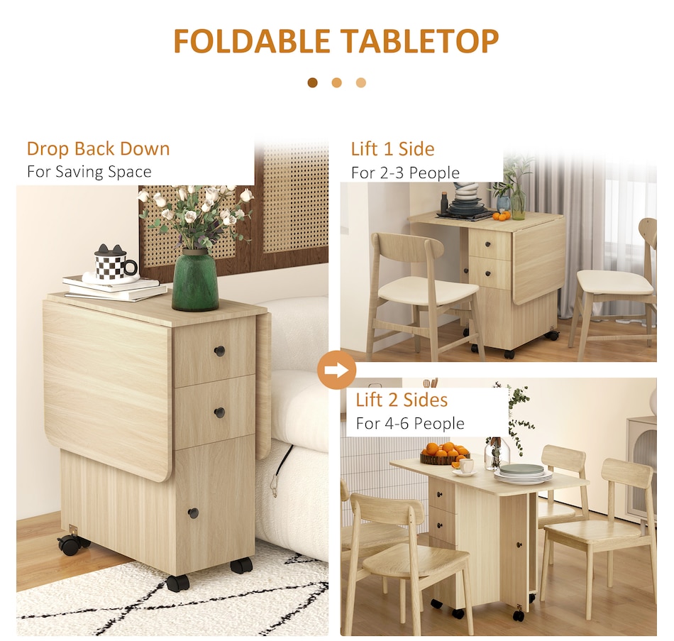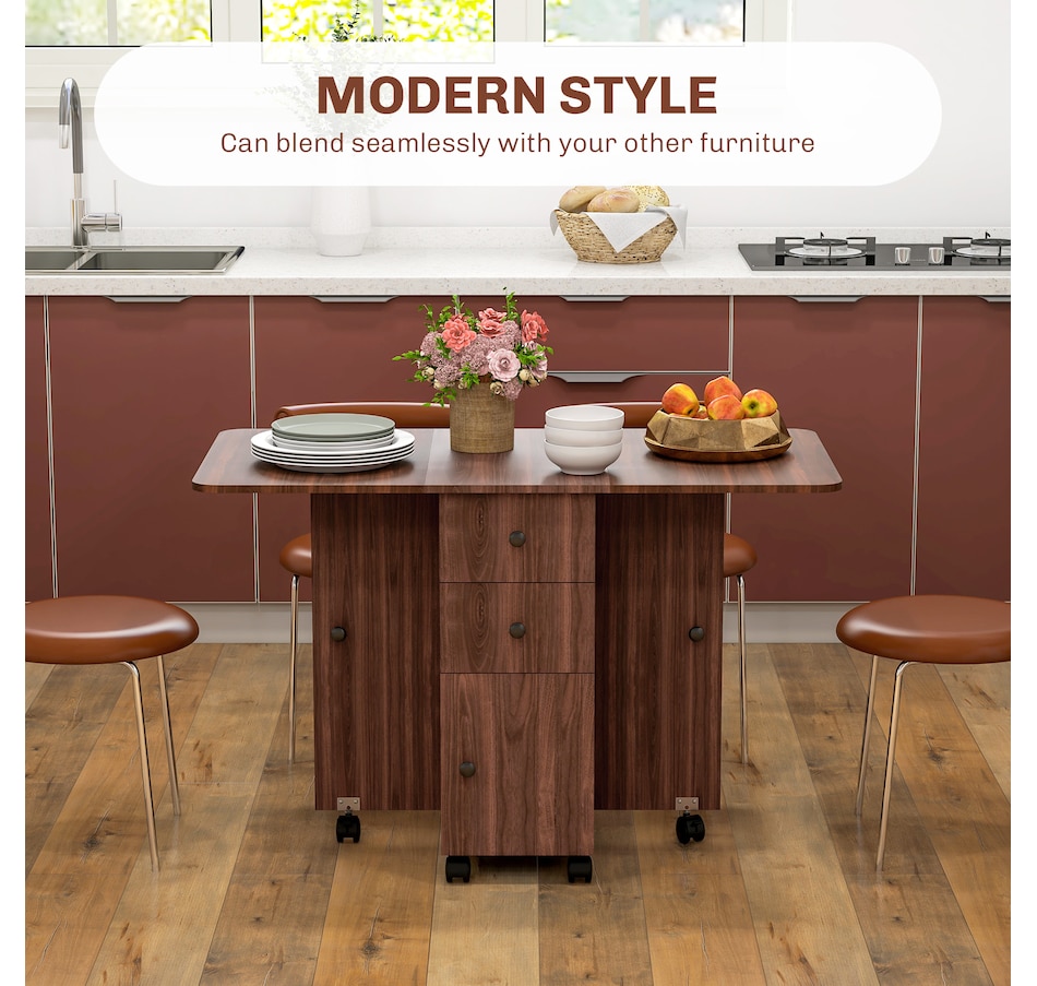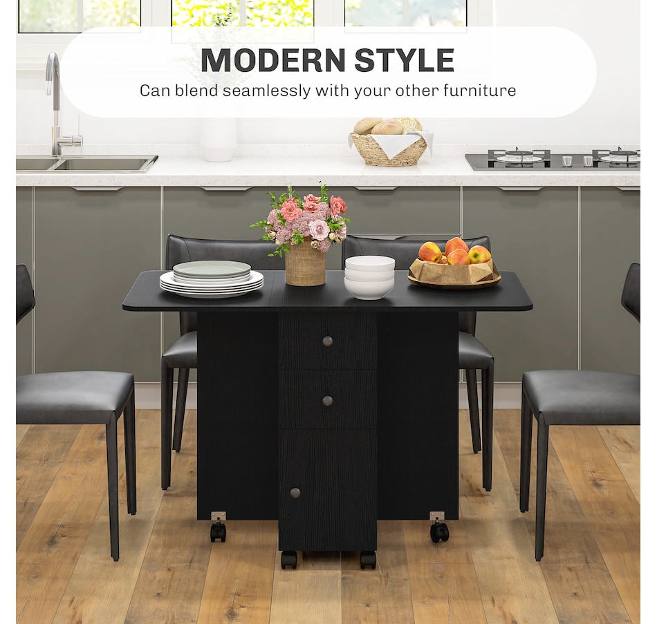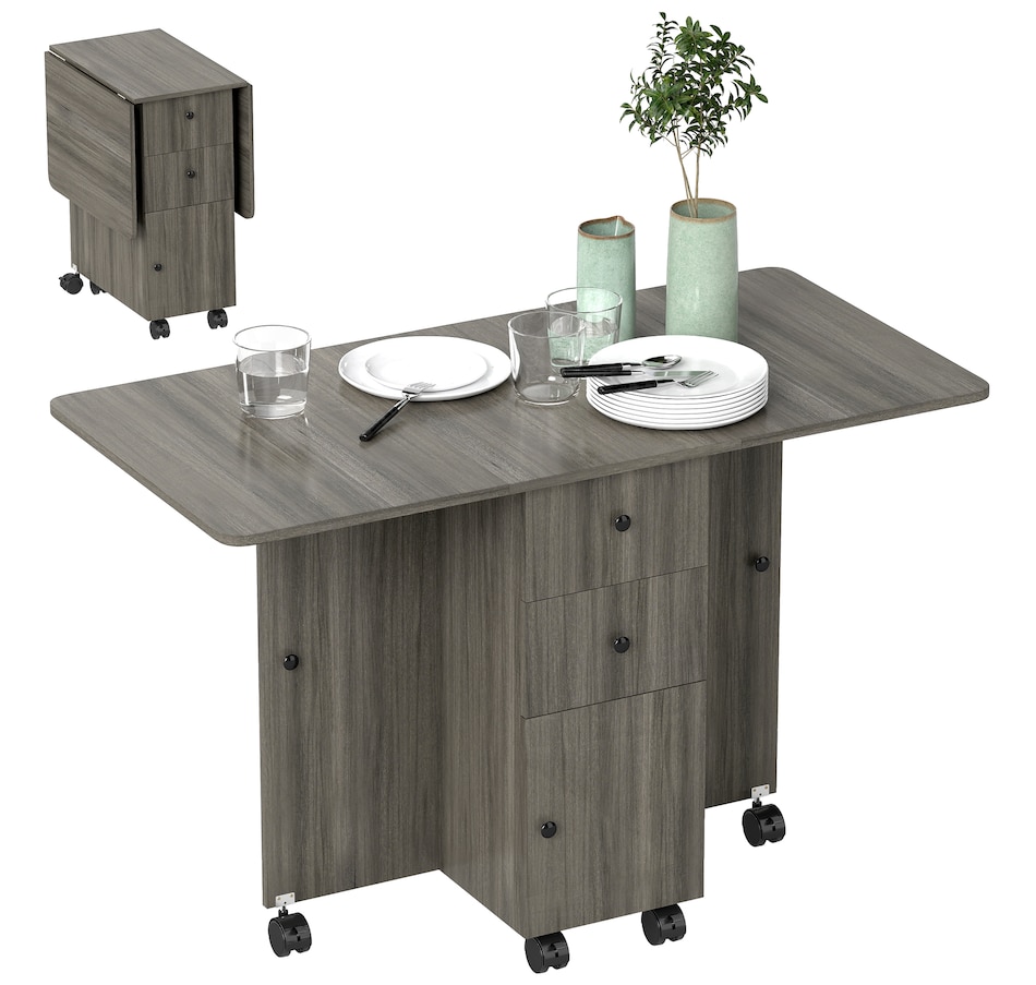 Foldable Dining Table, Rolling Kitchen Table With Drawers