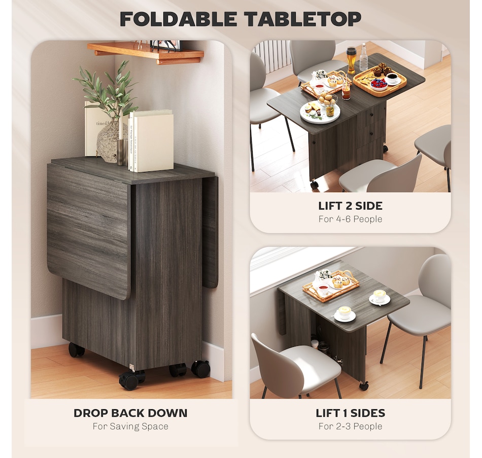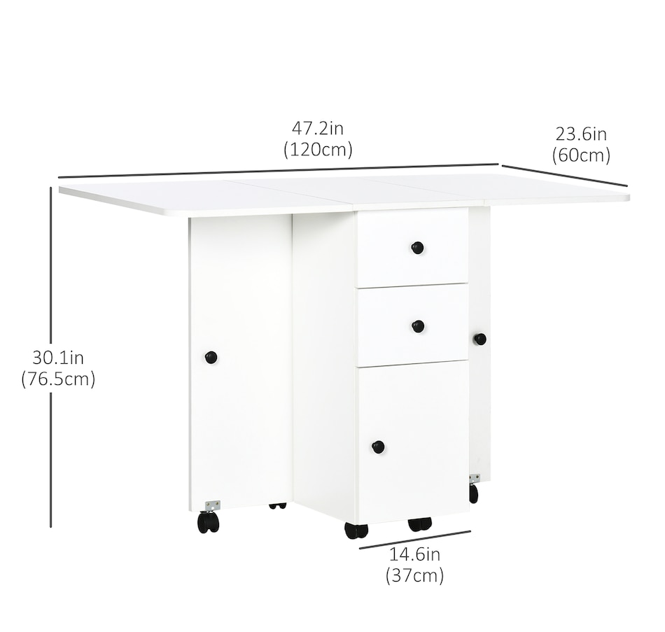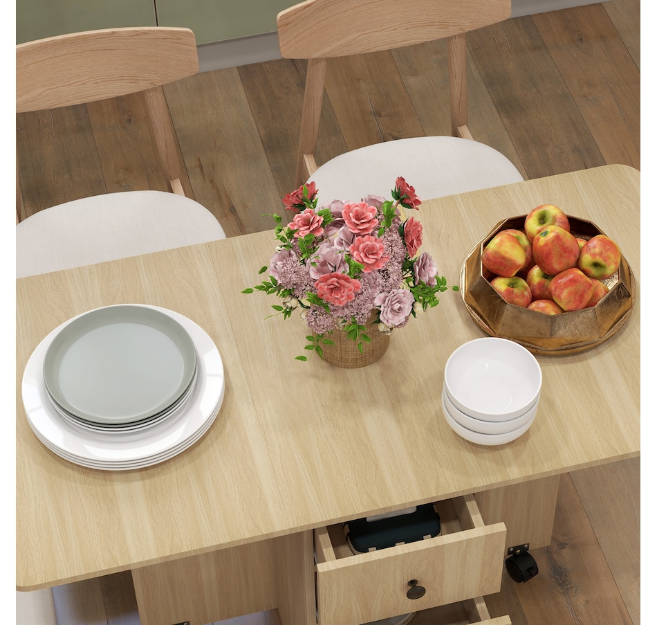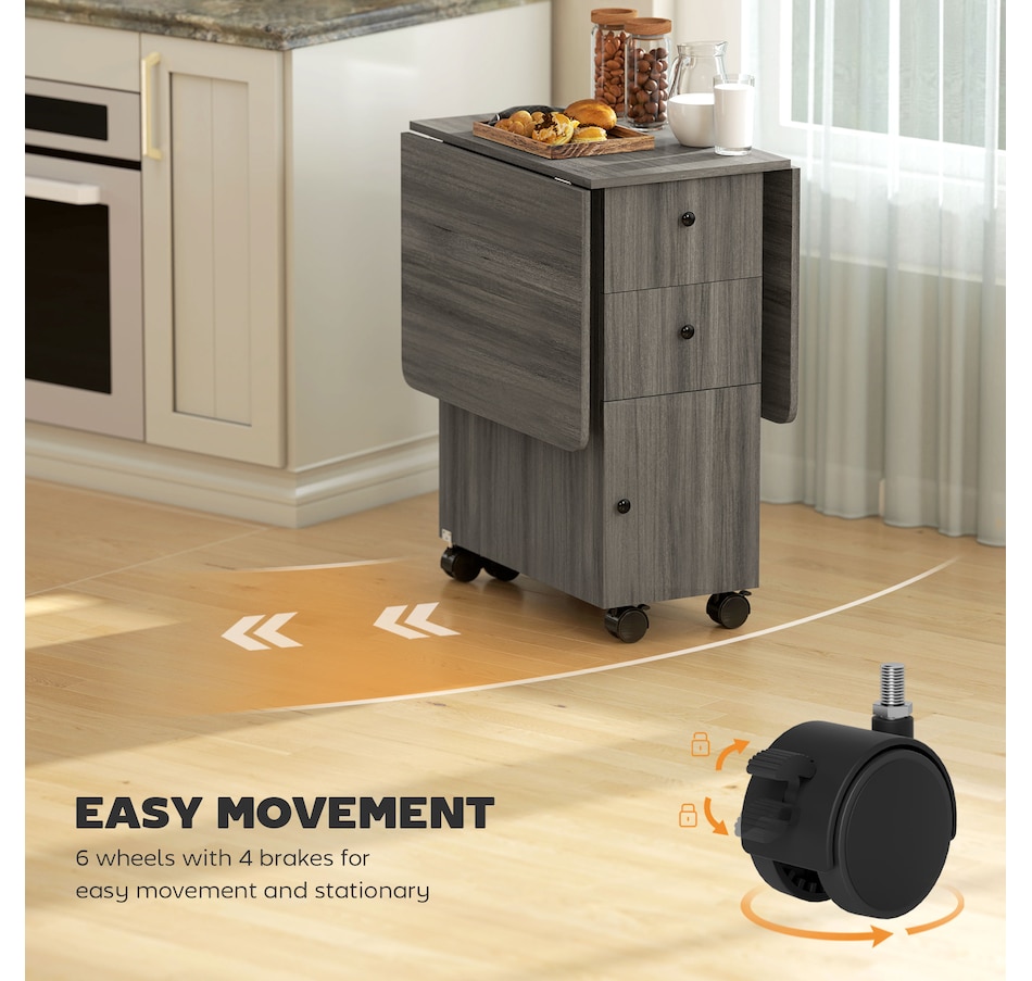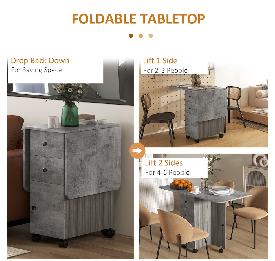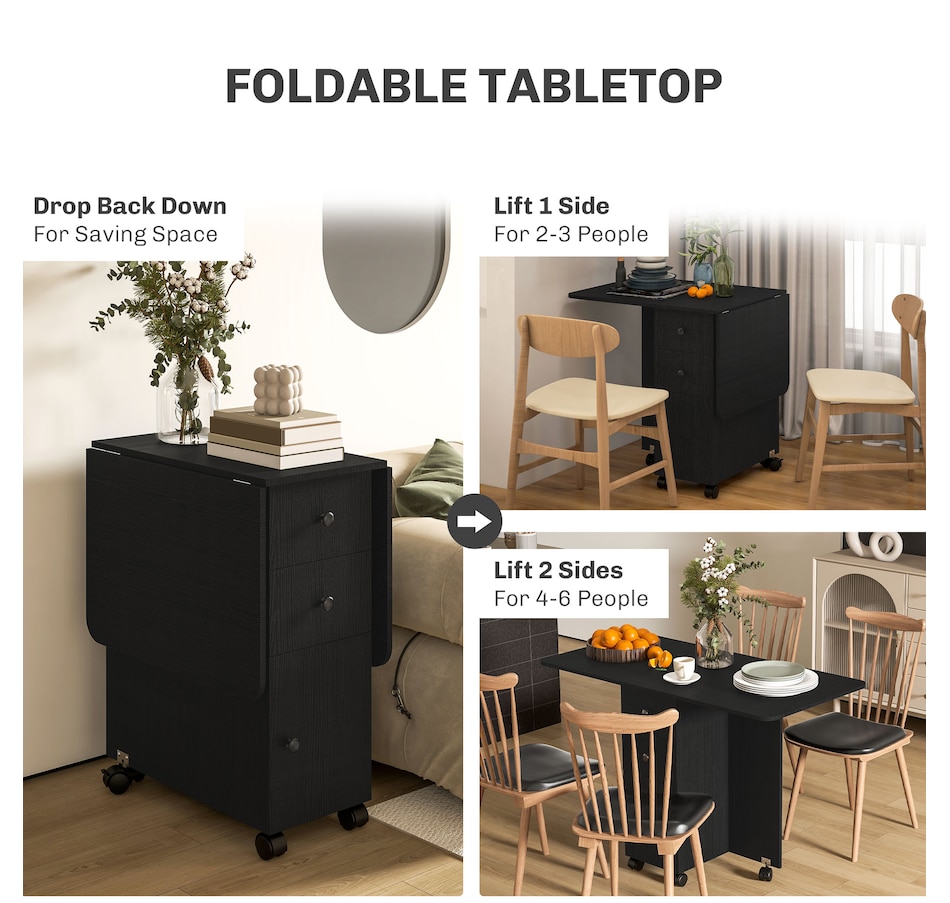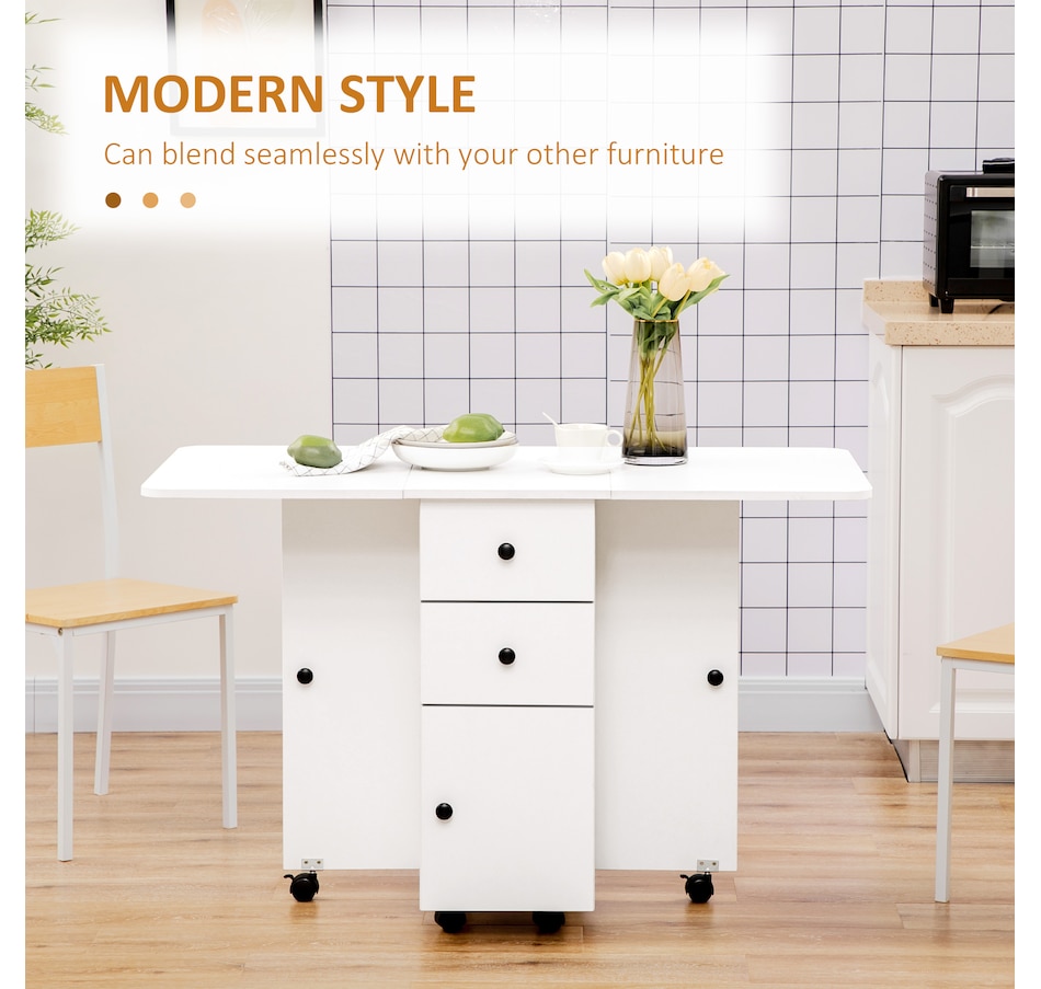 Foldable Dining Table, Rolling Kitchen Table With Drawers