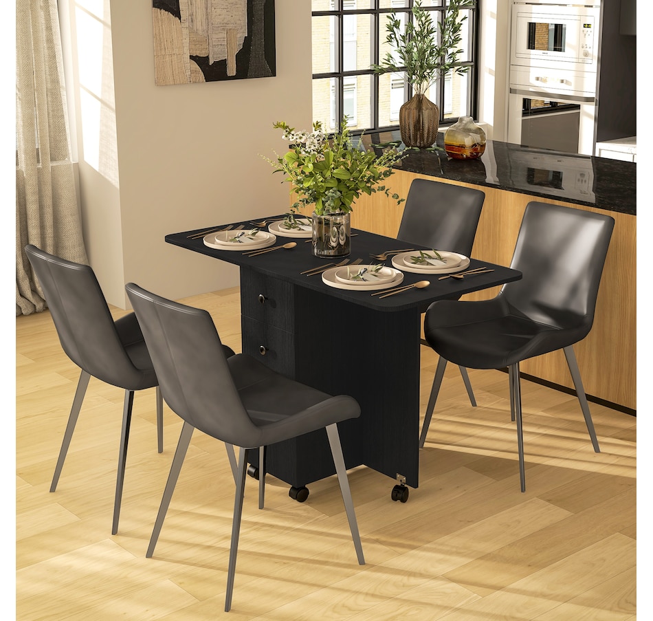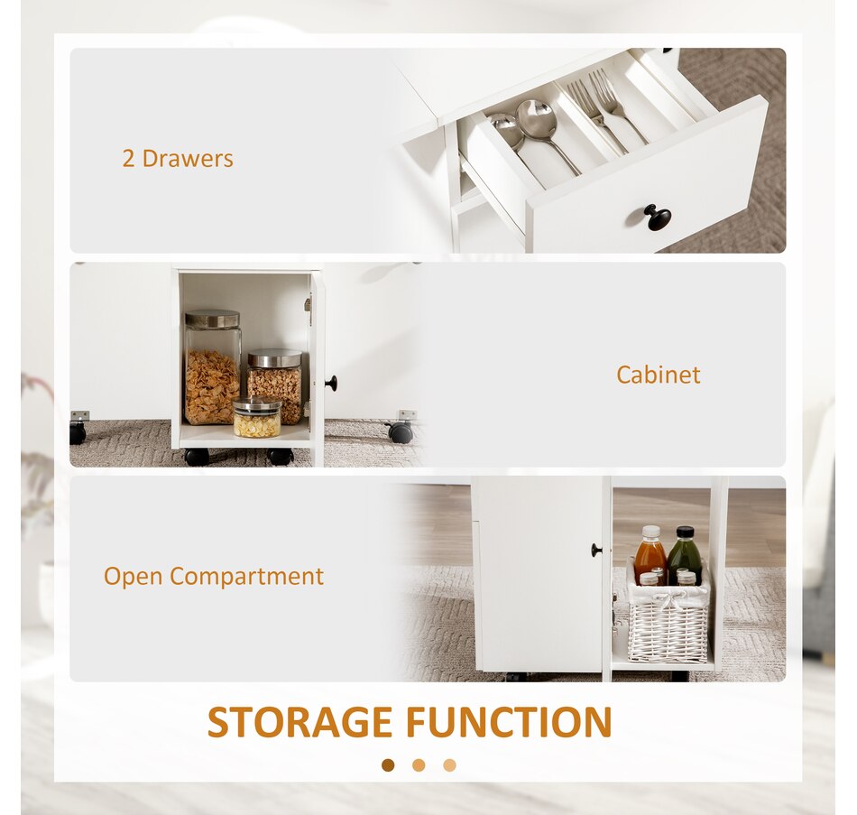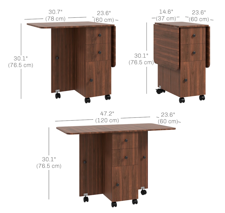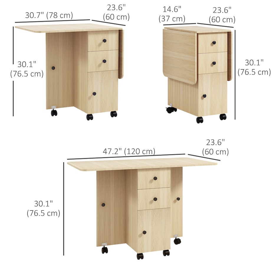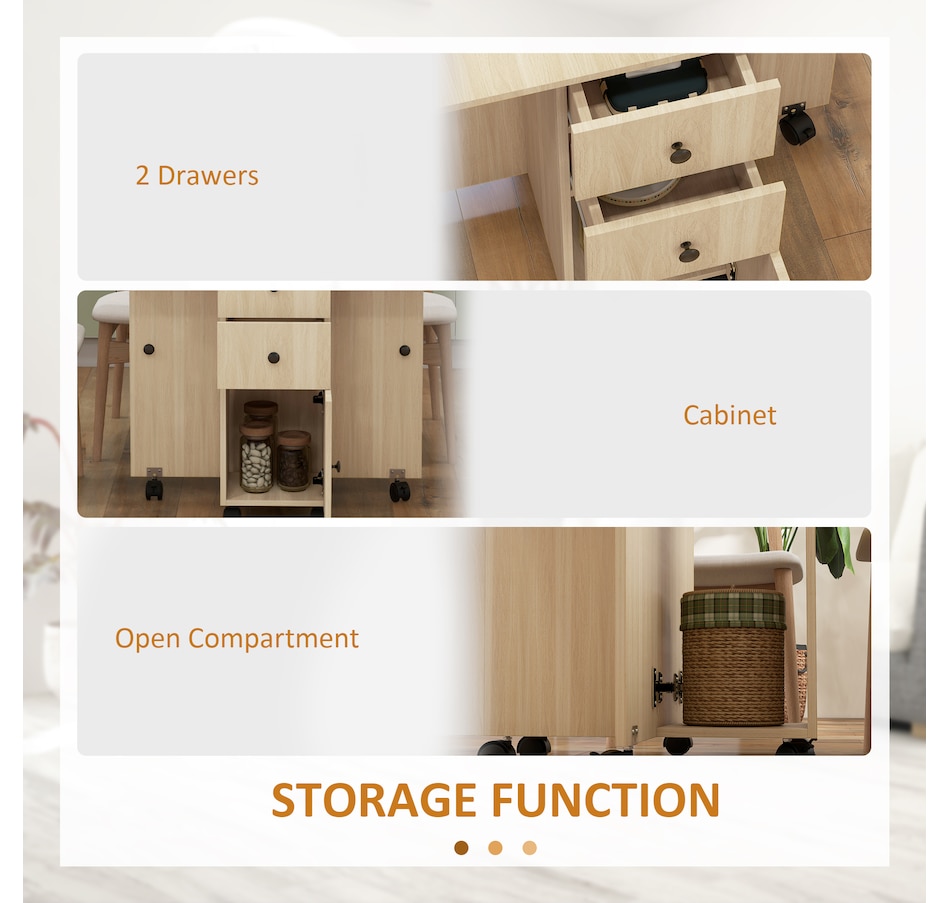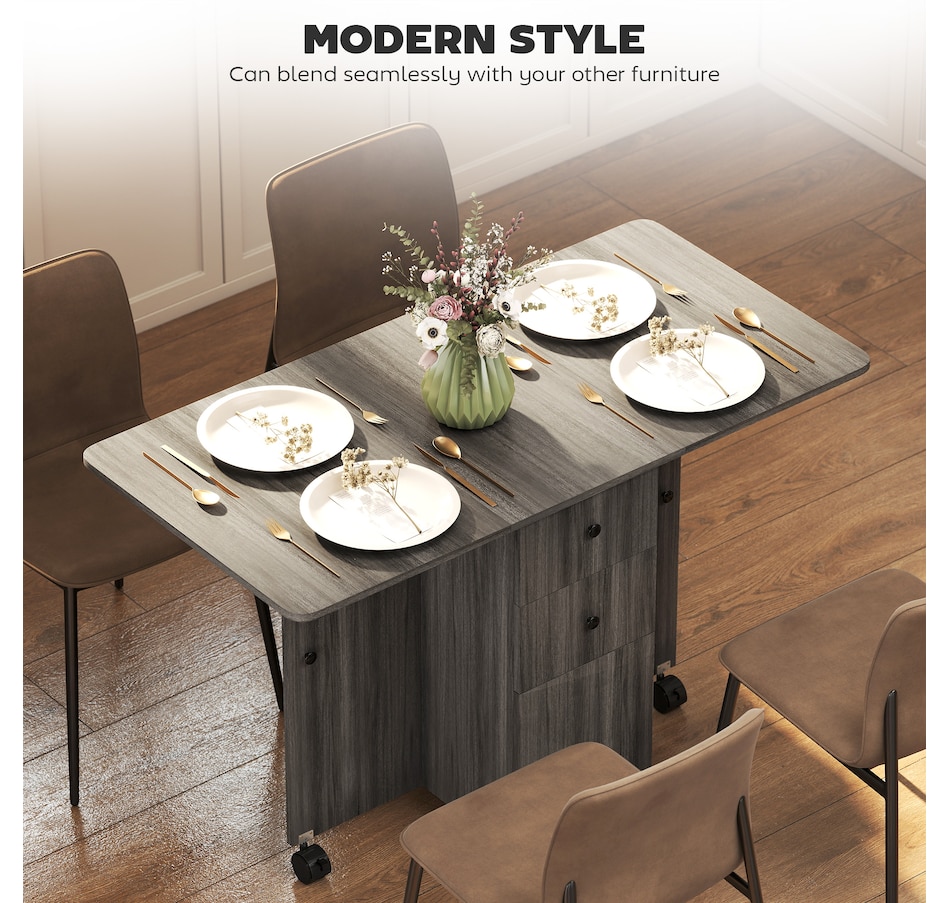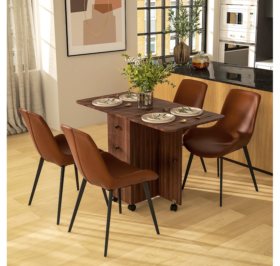 Foldable Dining Table, Rolling Kitchen Table With Drawers