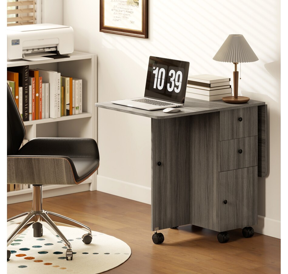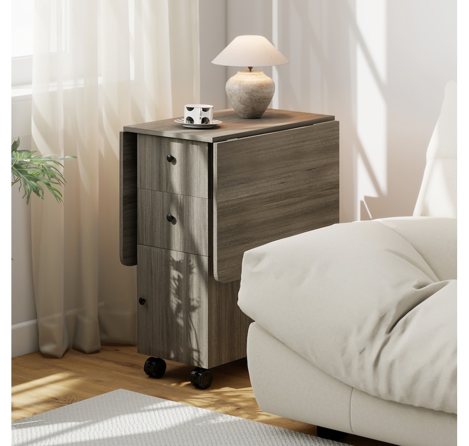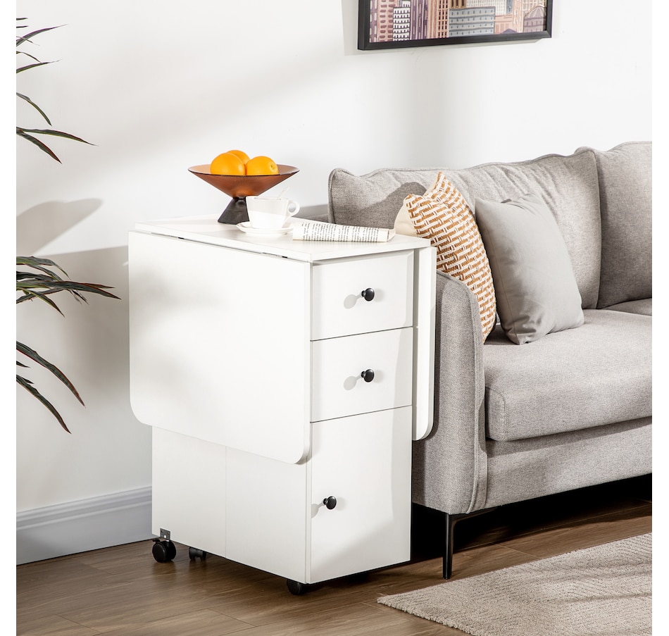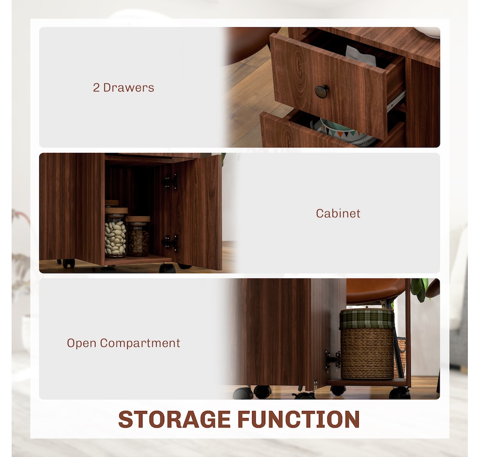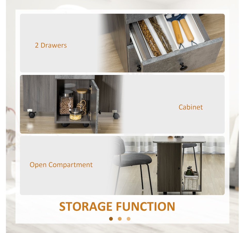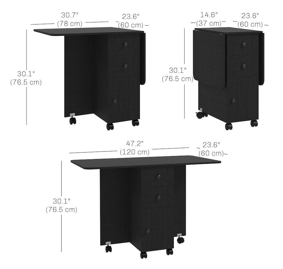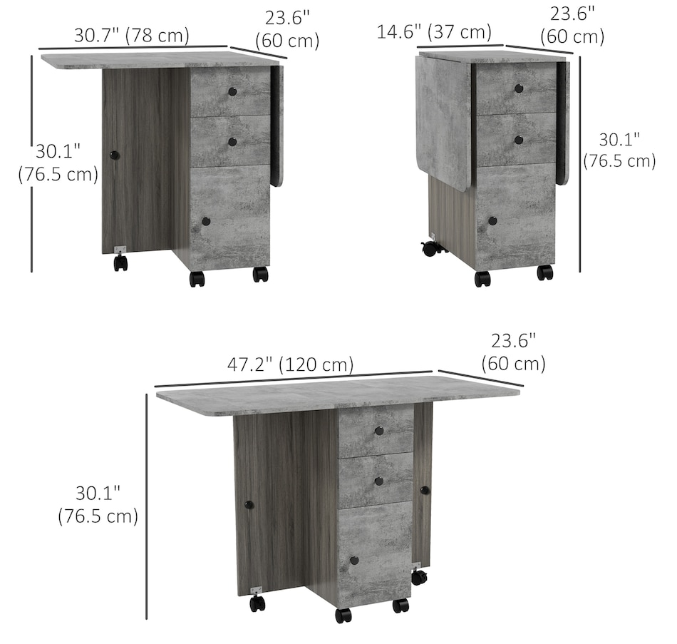 Foldable Dining Table, Rolling Kitchen Table With Drawers