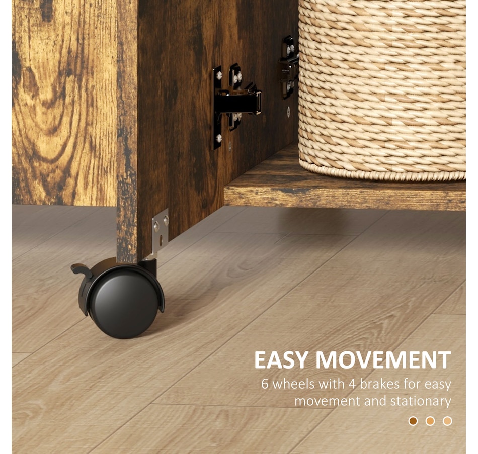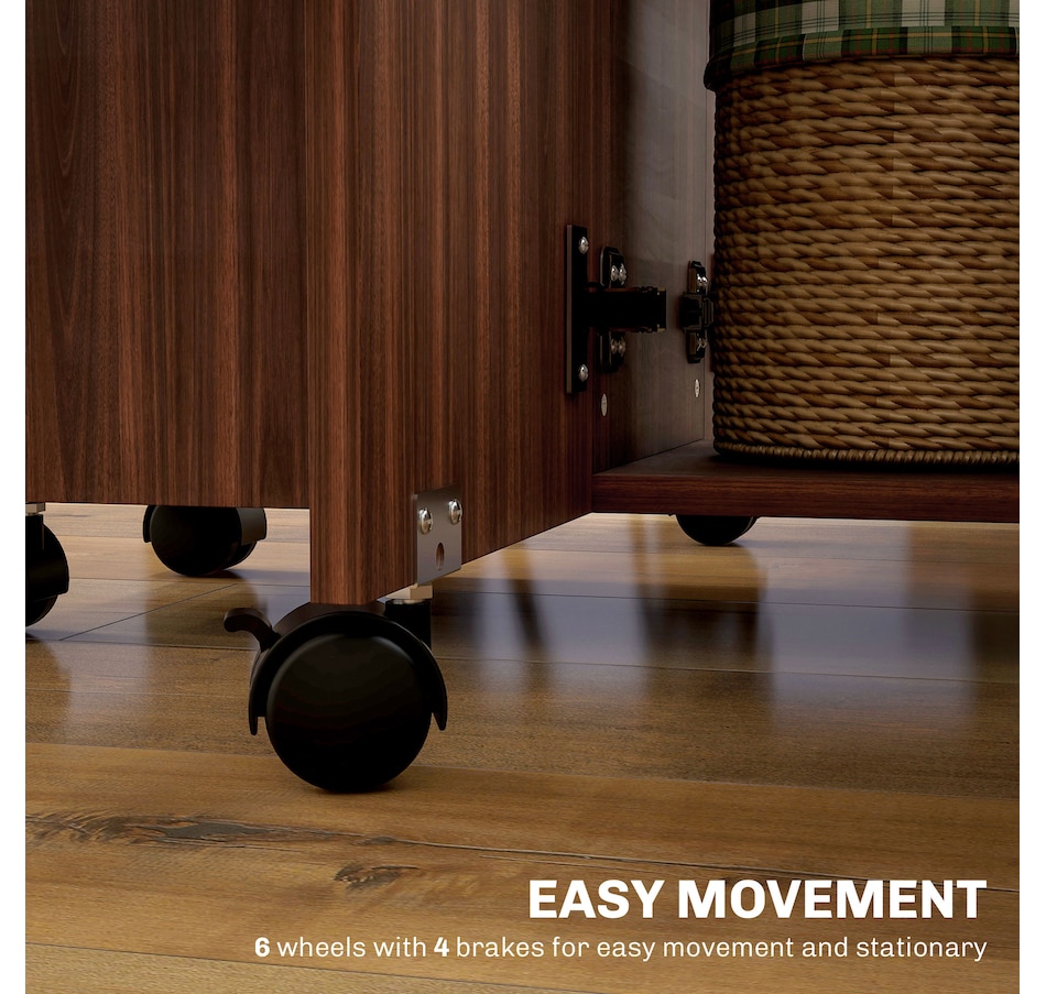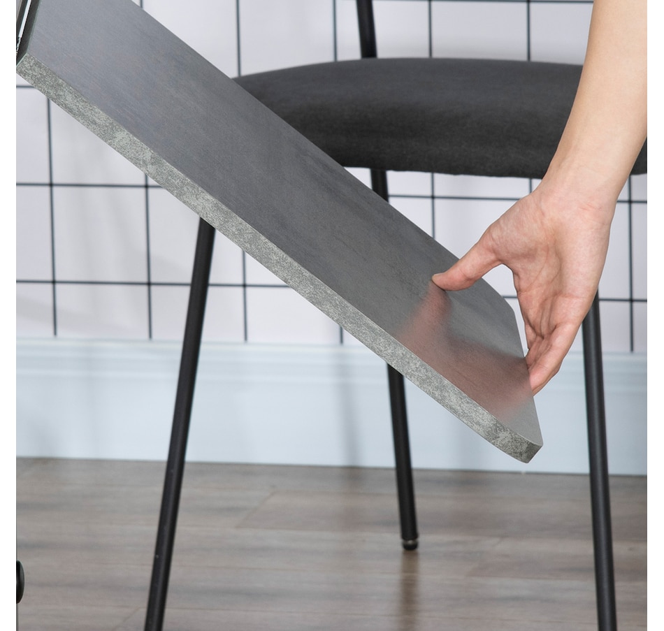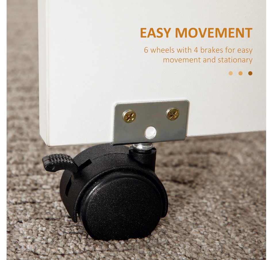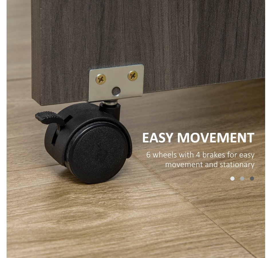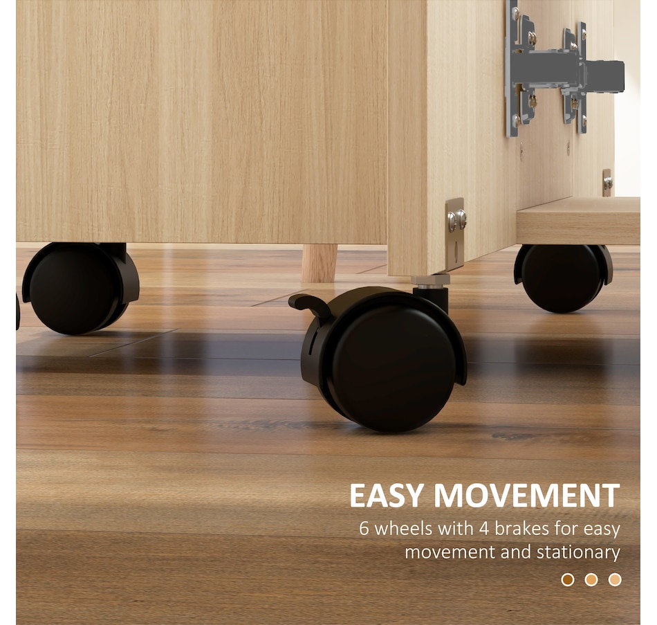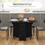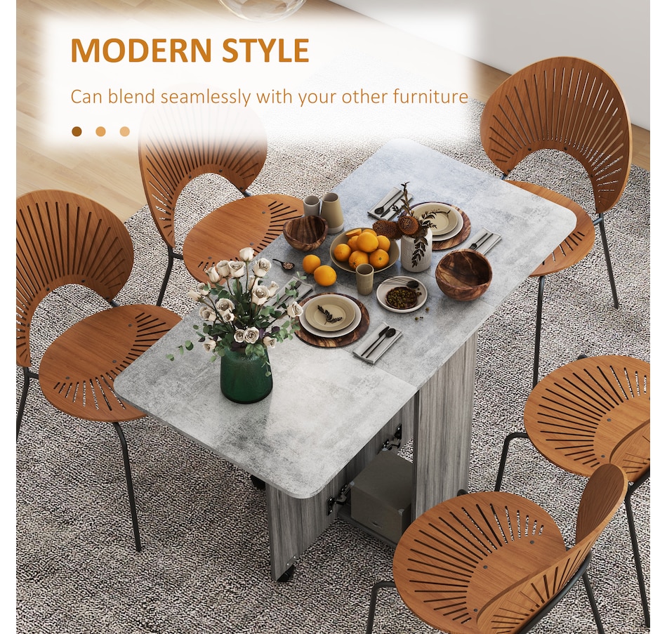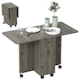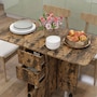 Choose this folding dining table from HOMCOM as a space-saving option when needed. It has an expandable design where both sides lift to provide additional space with a maximum capacity of 4 to 6 people or can be reduced to a compact size. It has two drawers and a cabinet that offers discreet storage. It also has six wheels, of which four have brakes allowing easy movement or staying in a fixed place.