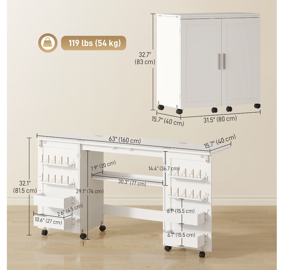 Tired of your creative passion causing chaos in your living space? The constant search for supplies and the clutter can stifle your inspiration. The HOMCOM folding sewing table transforms your corner into an organized haven. With ample storage and a dedicated surface, this craft table keeps everything at your fingertips, letting you focus purely on the joy of creating. Reclaim your space and your peace of mind.Features: