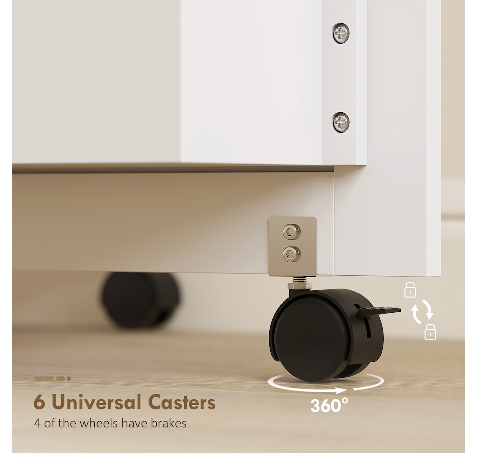 ● Moves easily on six swivel wheels for simple room-to-room transport;