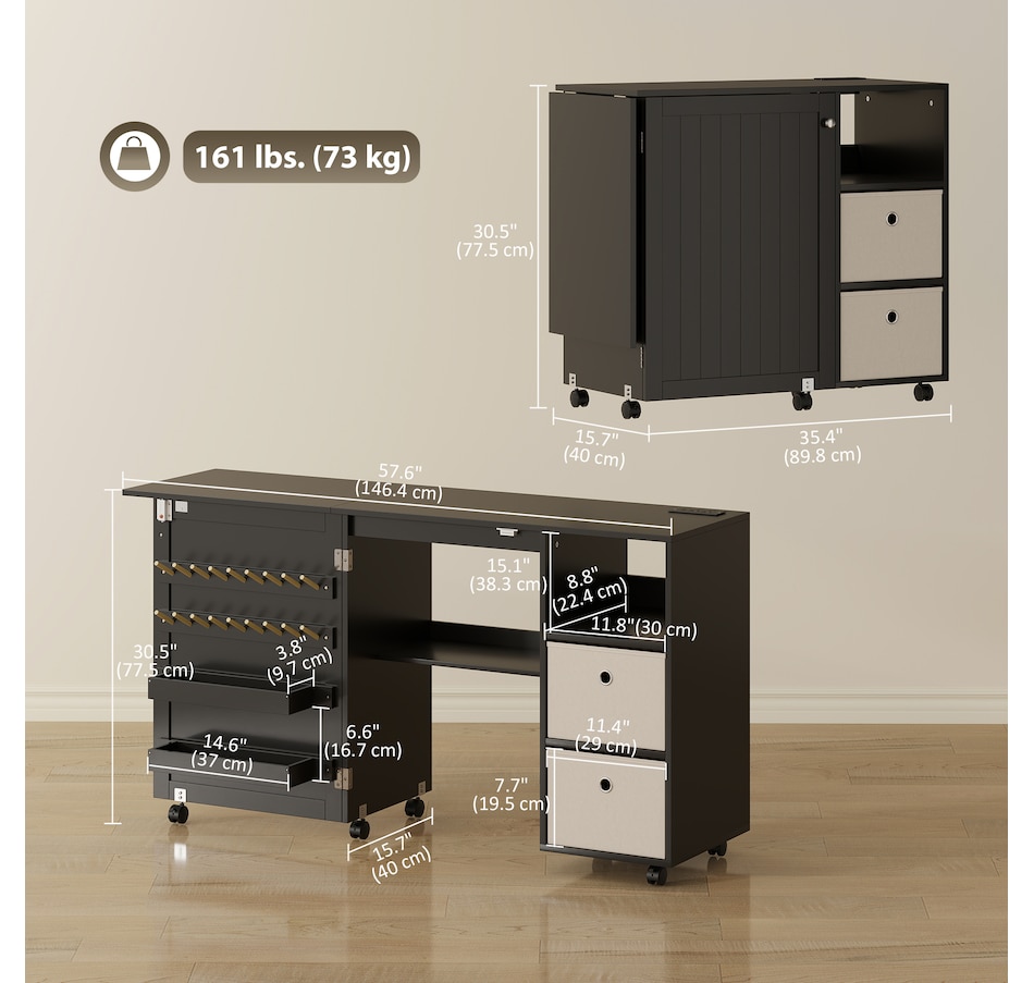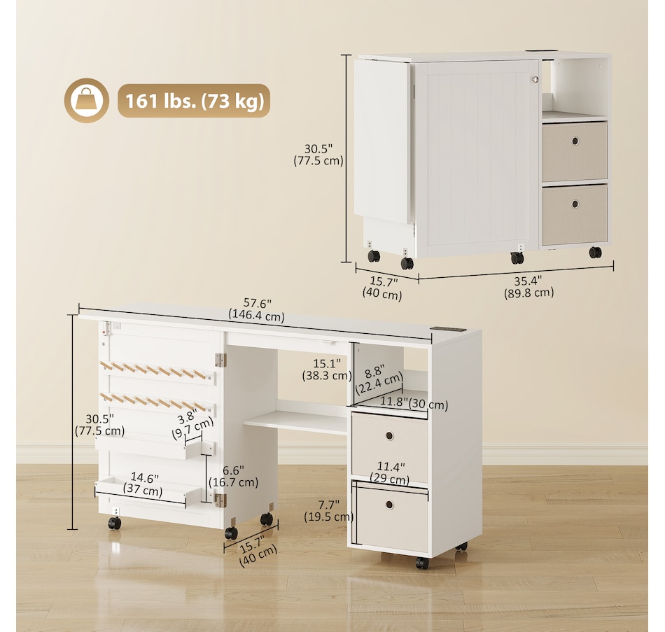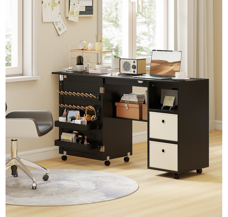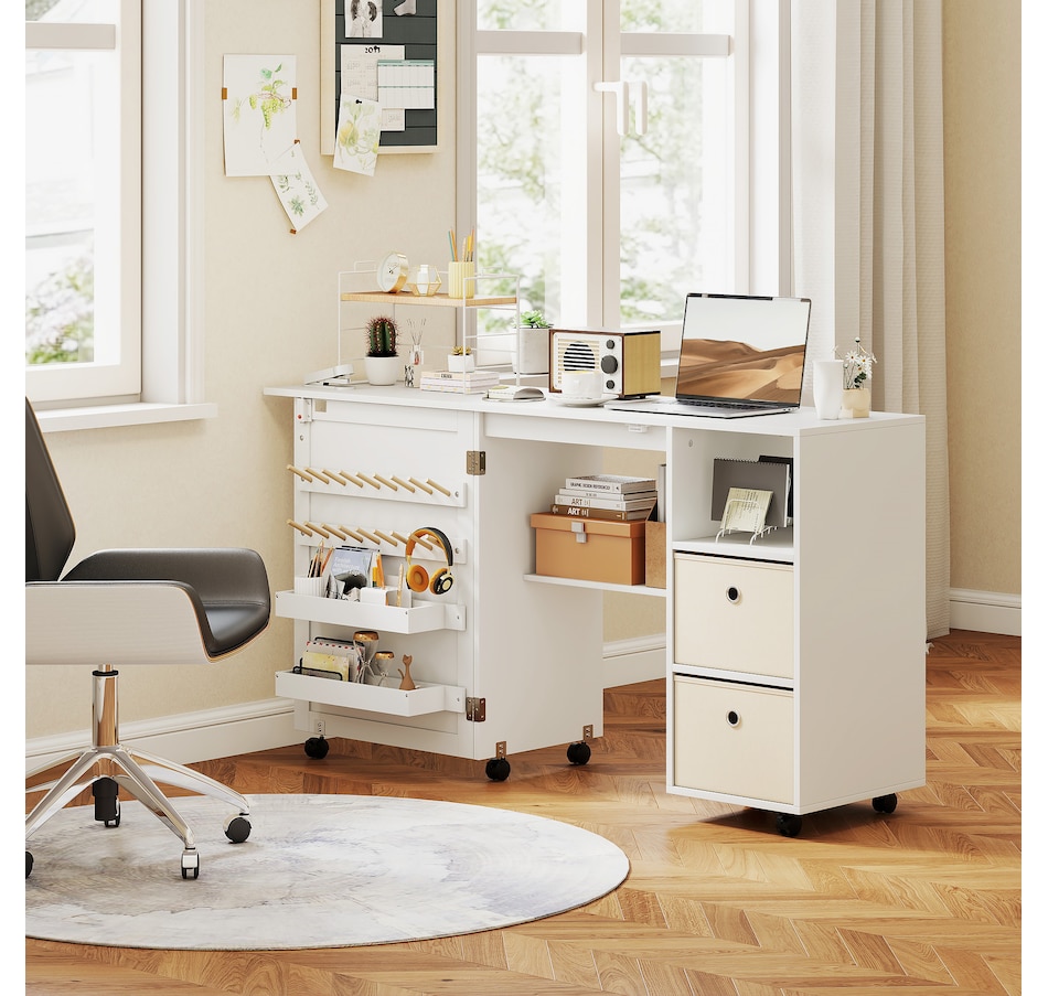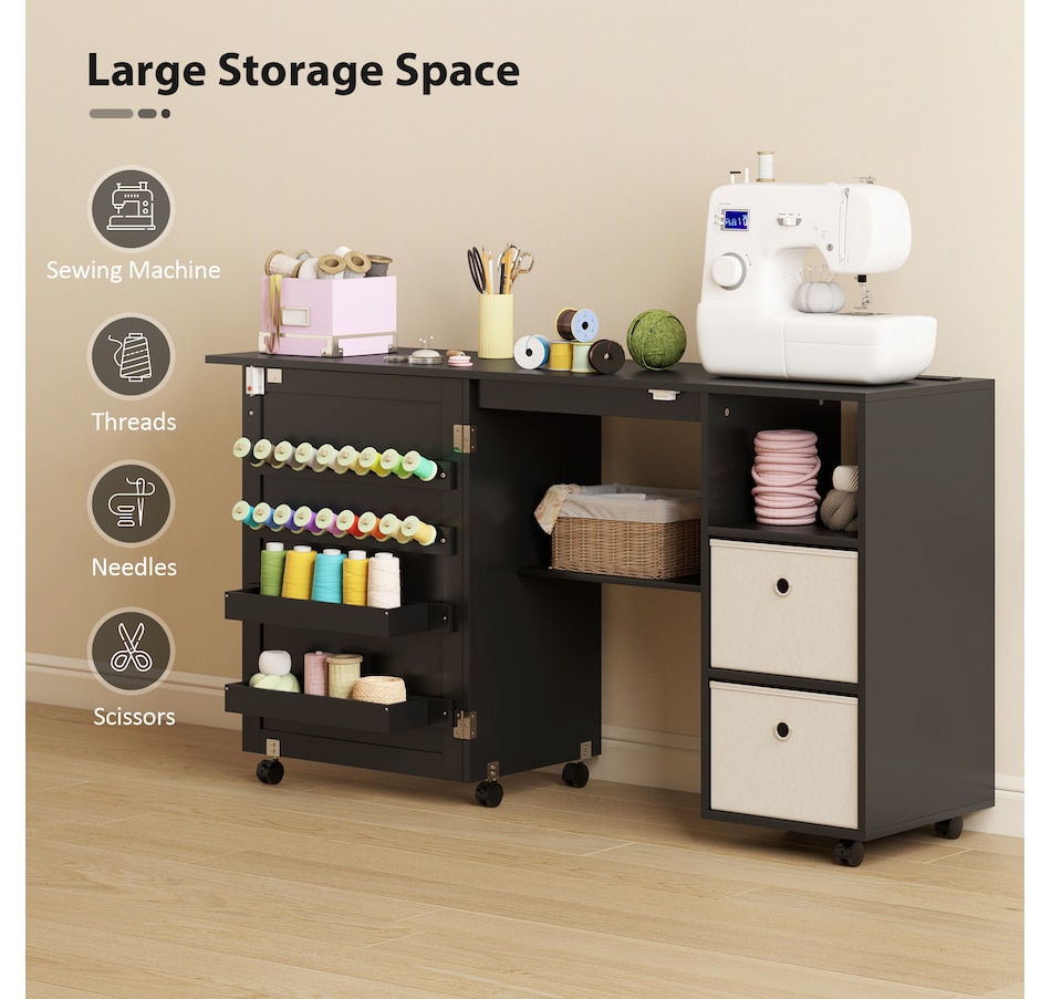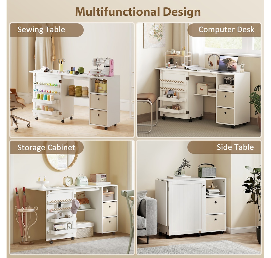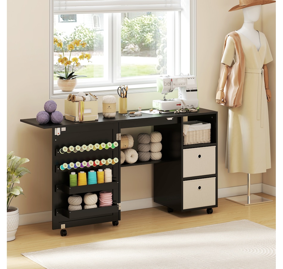 ● Versatile as a sewing table or computer desk, compact cabinet or side table;
