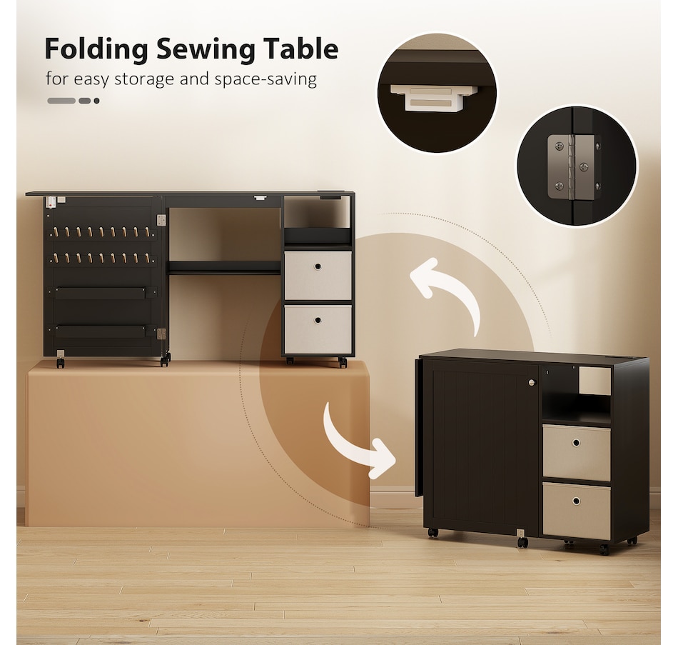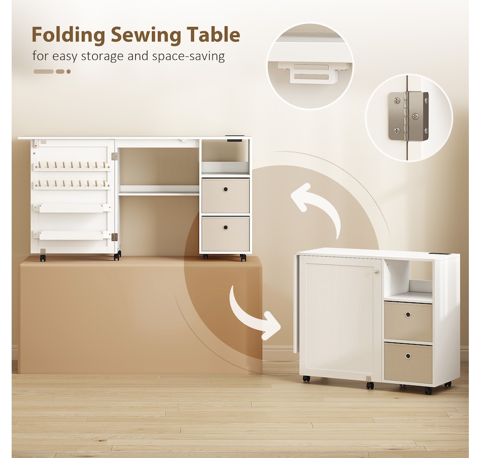 Tired of a cluttered craft space that stifles your creativity? Stop searching for outlets and untangling cords. The HOMCOM sewing table transforms your process, offering organized storage for all your supplies and a built-in power socket for seamless work. This versatile sewing machine table folds away neatly, giving you back your space and letting you focus on the joy of creating in a tidy, efficient, and inspiring space.