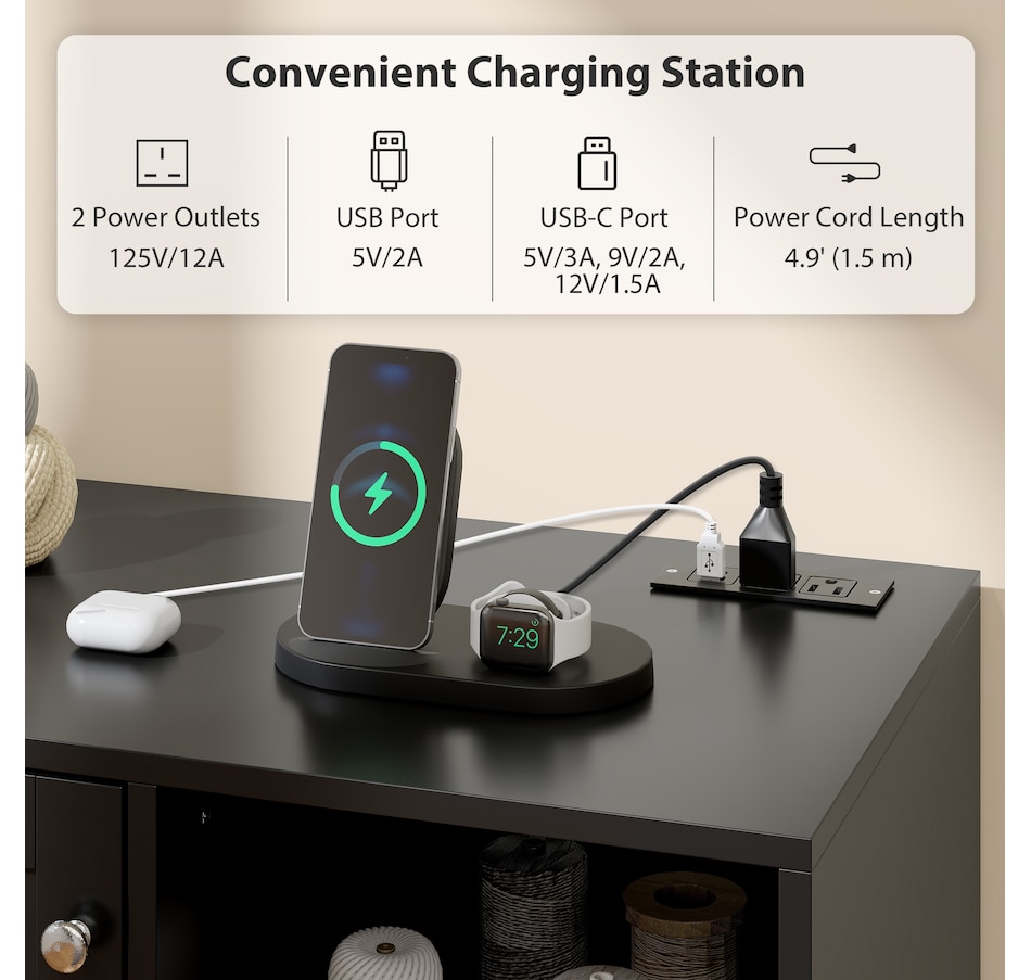 ● A built-in power outlet lets you conveniently charge your devices;