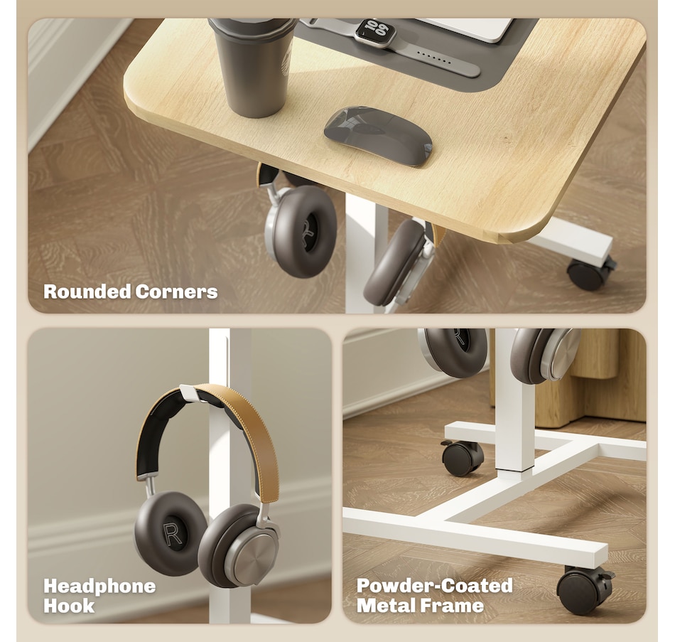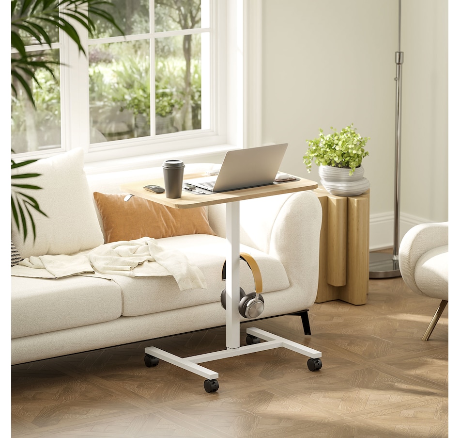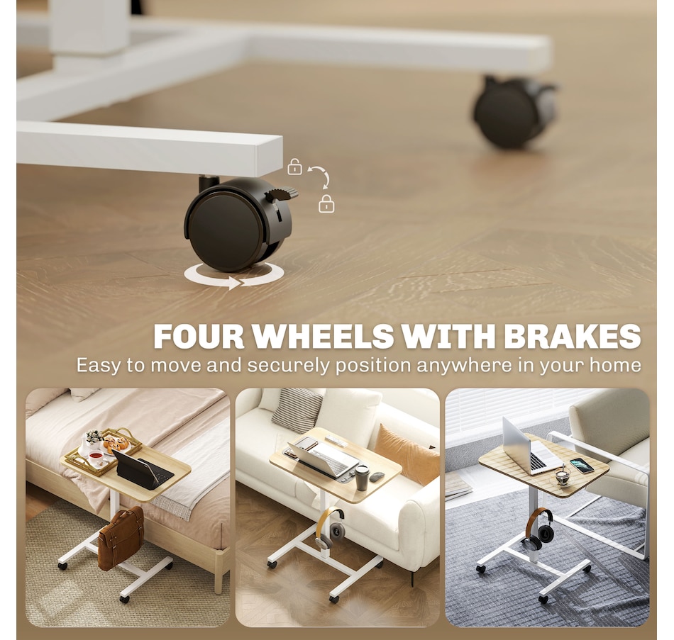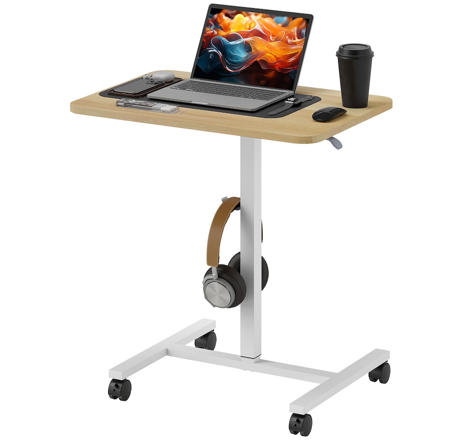 Standing Desk Mobile Overbed Table with Wheels, Natural Wood Grain