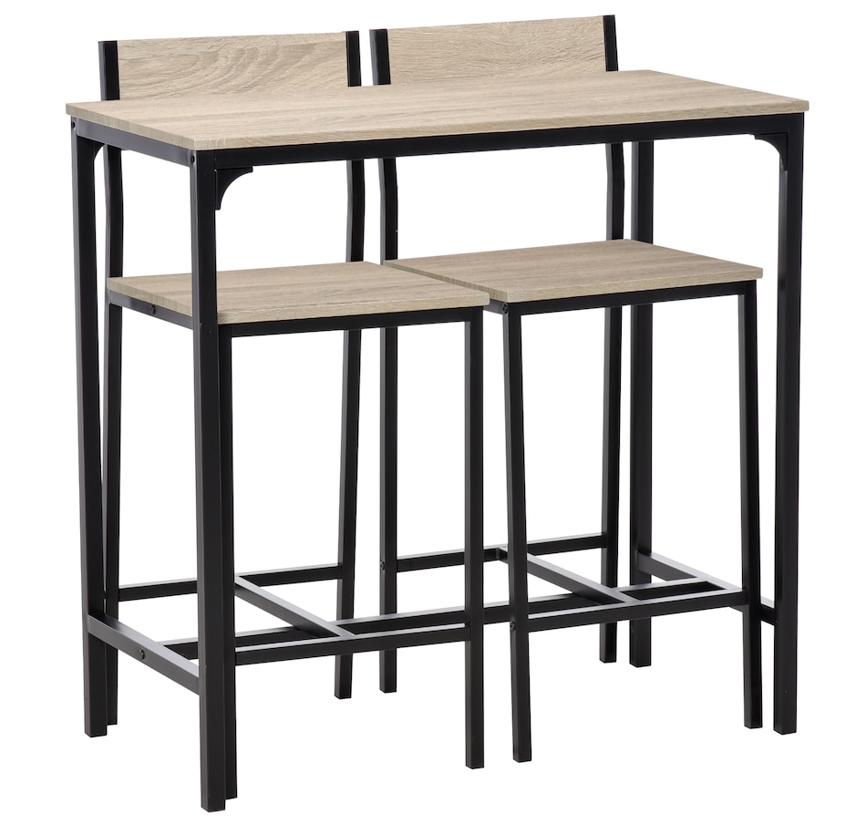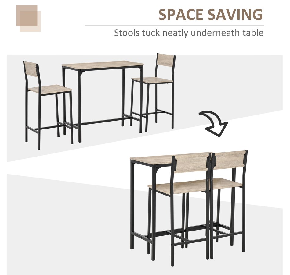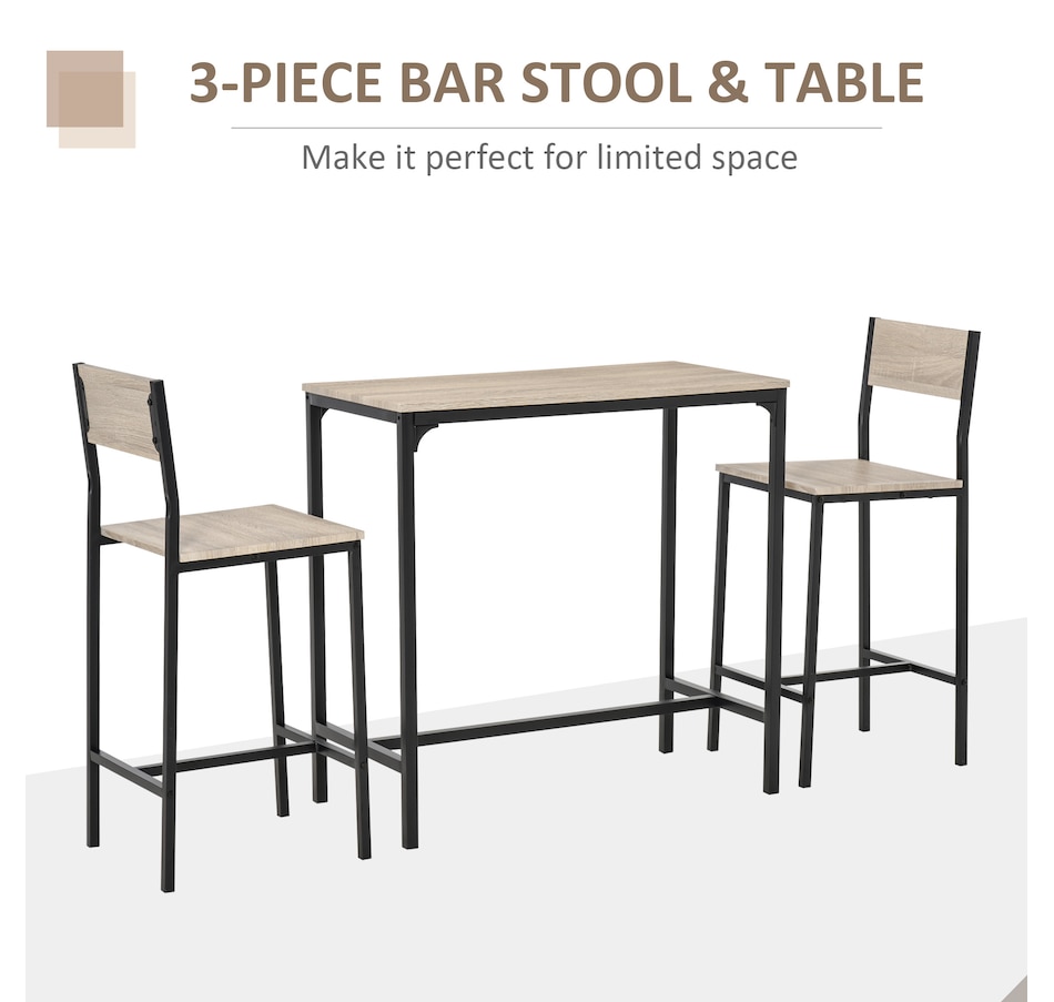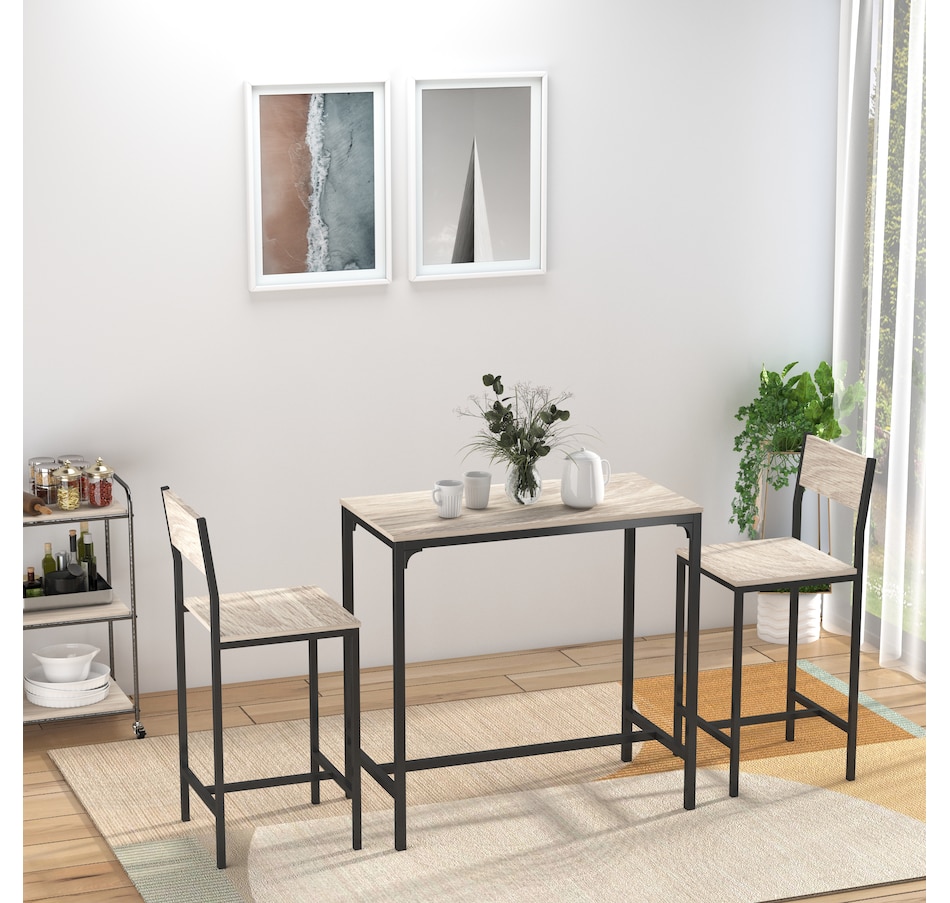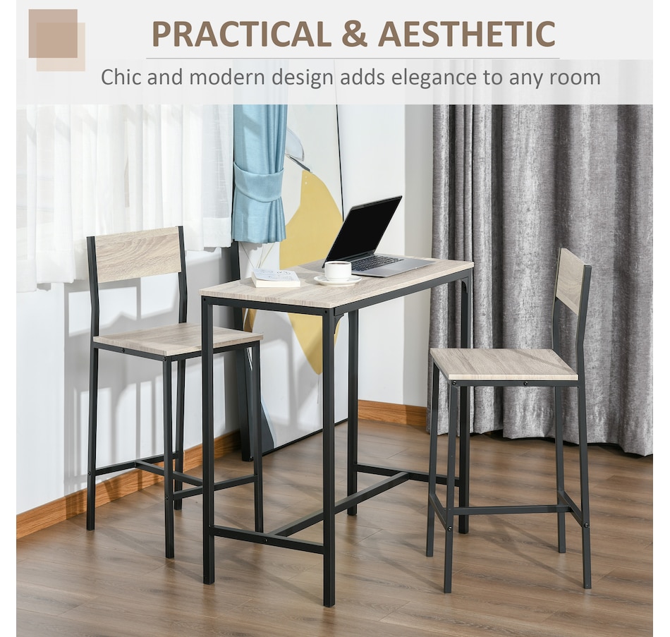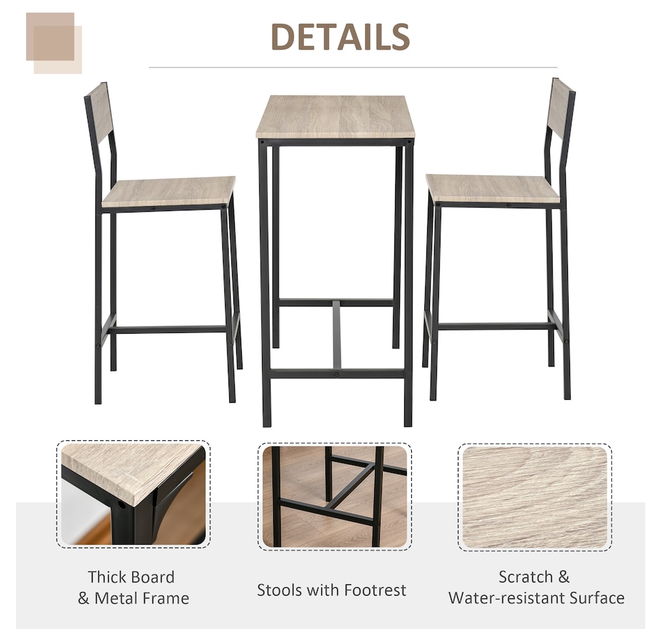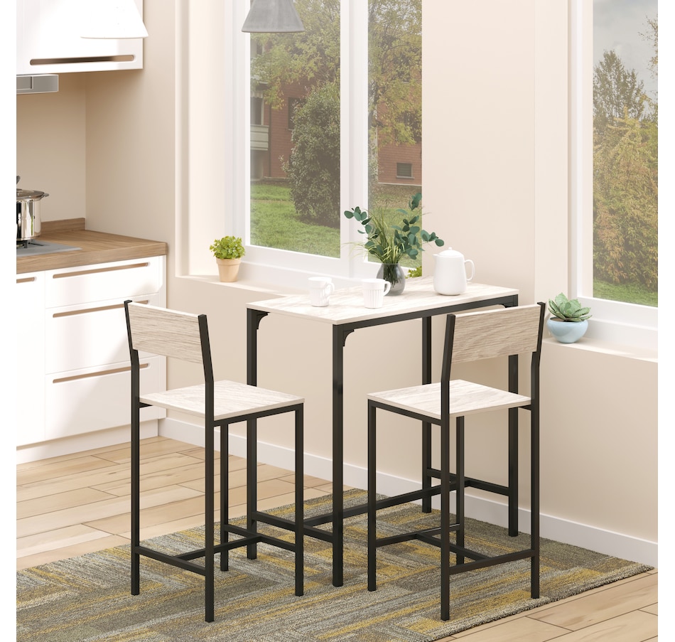 This 3-piece bar table and stools set from offers you a great place to entertain your friends or family for a dinner or wine night in the comfort of your own indoor or outdoor space. It is made from a powder-coated steel frame and scratch-resistant MDF for years of enjoyment and almost zero maintenance. Stylish and practical, this kitchen table set is a great addition to enhance your current home decor!Features: