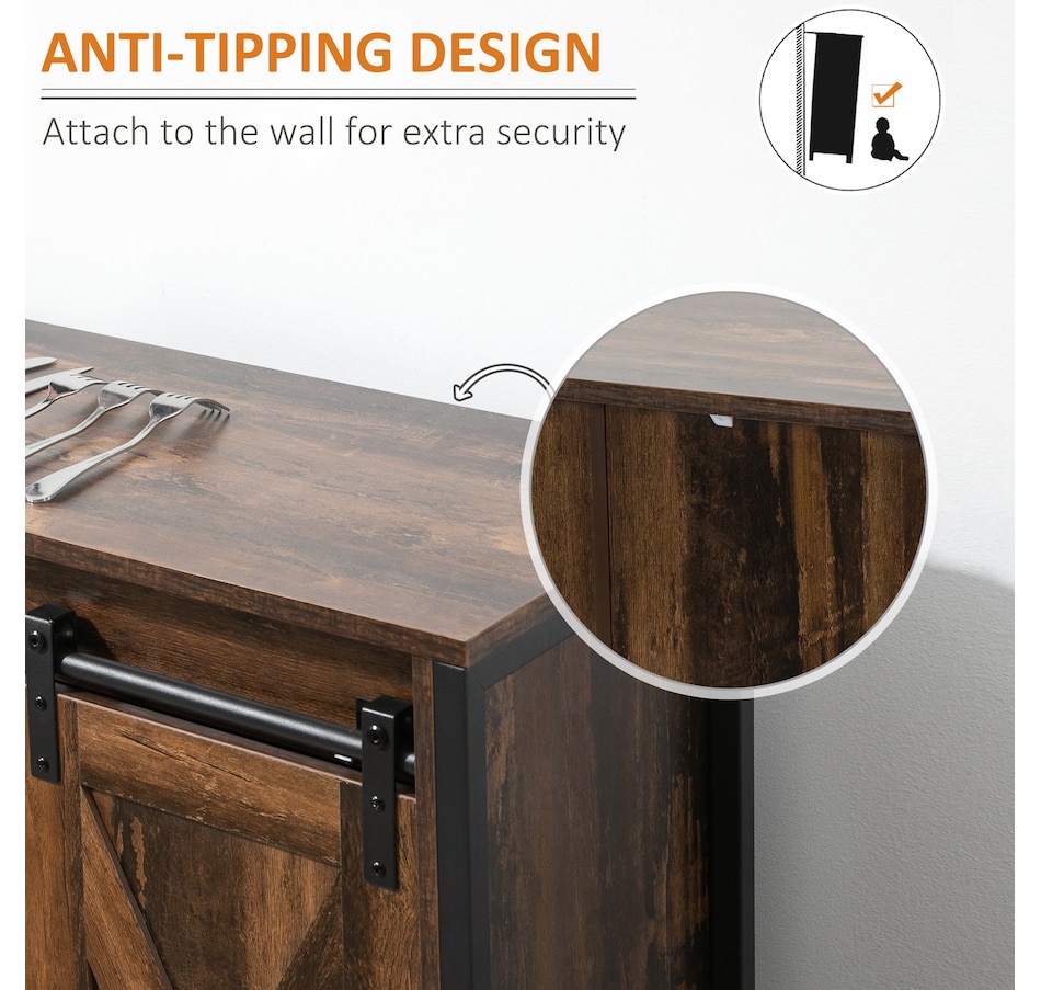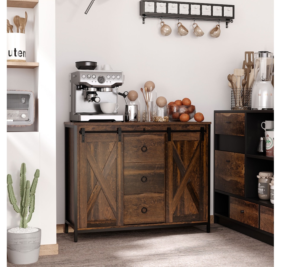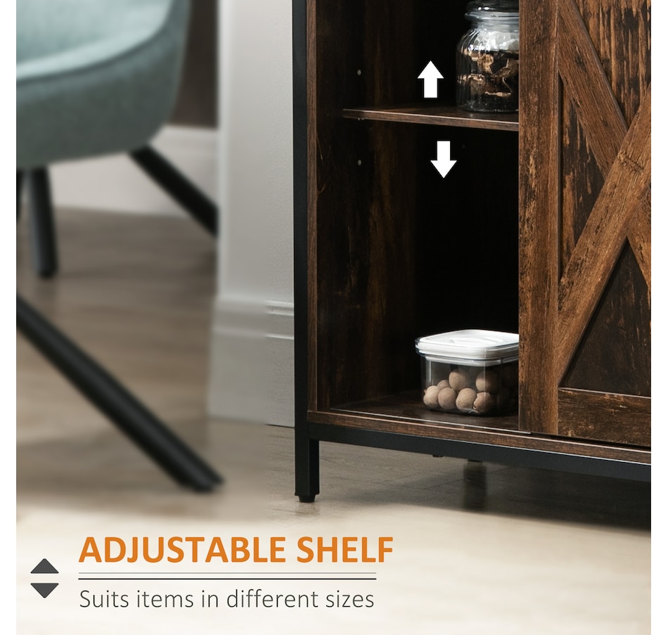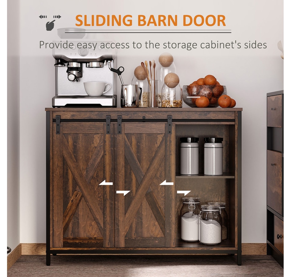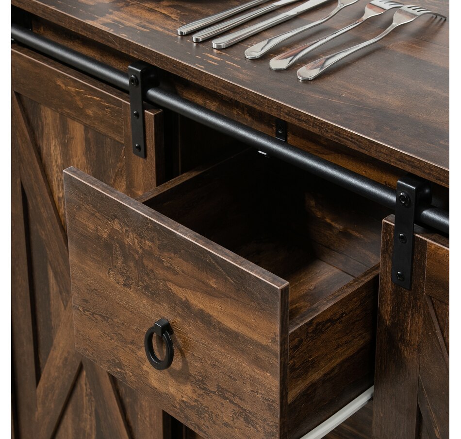 Industrial Buffet Cabinet Kitchen Sideboard with Sliding Barn Doors