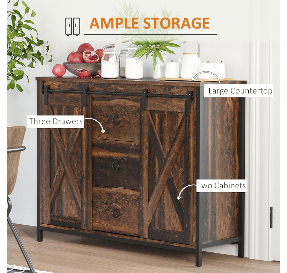 Quickly add needed storage and get room clutter-free with this HOMCOM sideboard cabinet. The rustic look delivers a casual look to your living space. At the same time, the buffet cabinet and sideboard with storage provide ample storage space with two door cabinets and three drawers for your daily accessories and utensils. Customize your home space with the interior adjustable shelf that moves to fit your needs. This sideboard buffet cabinet from HOMCOM is an ideal choice.Features: