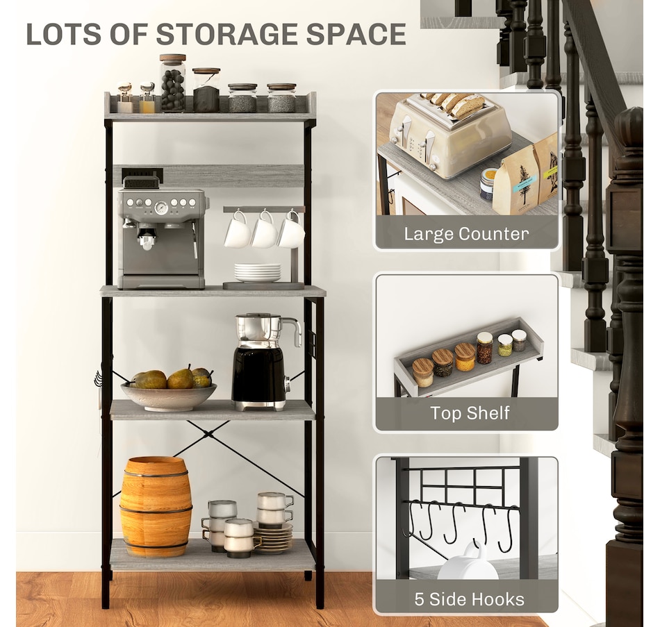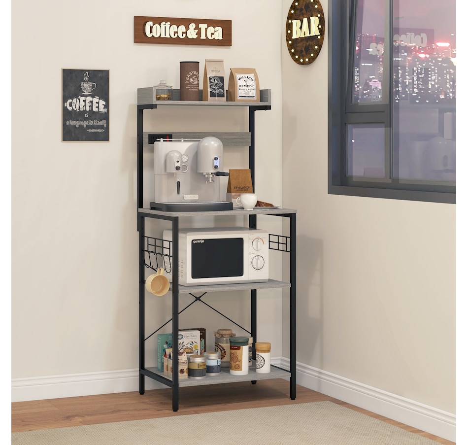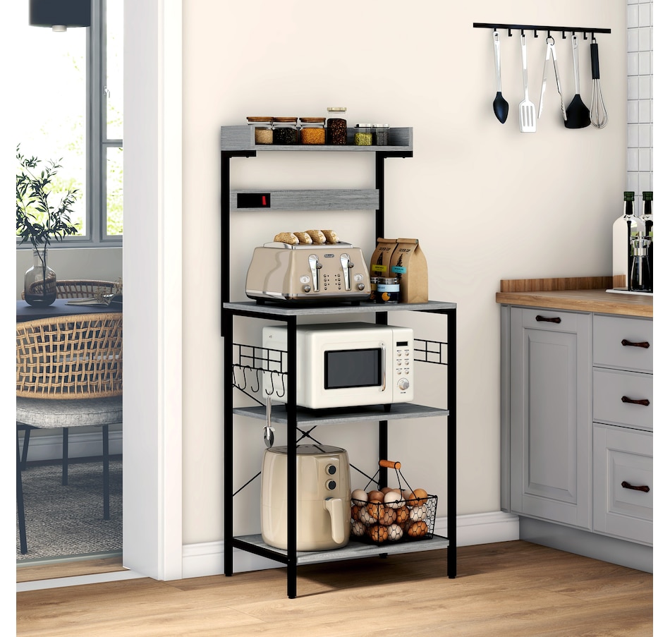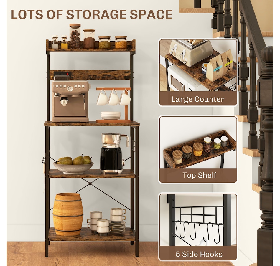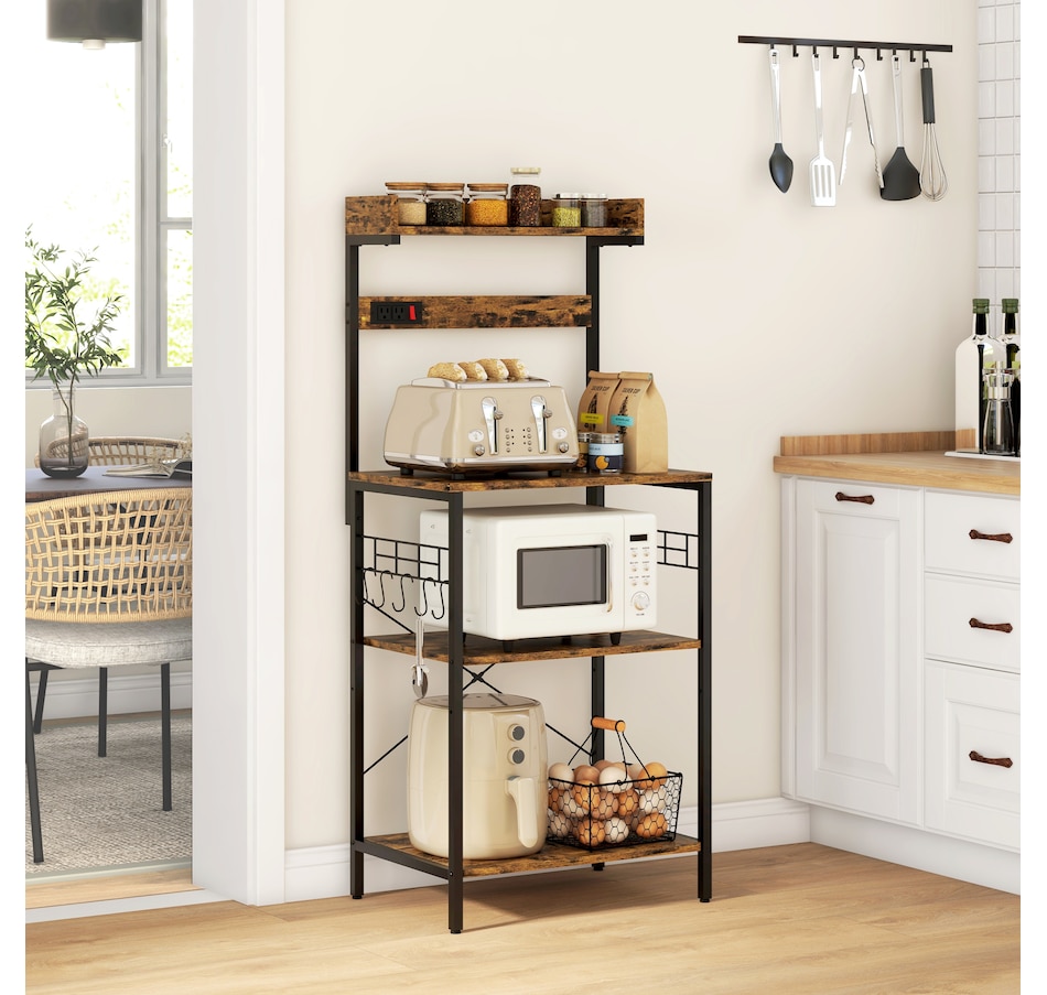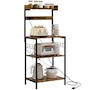 Kitchen Bakers Rack with Power Outlet, Adjustable Shelves and Hooks