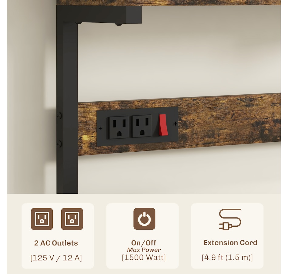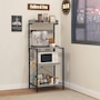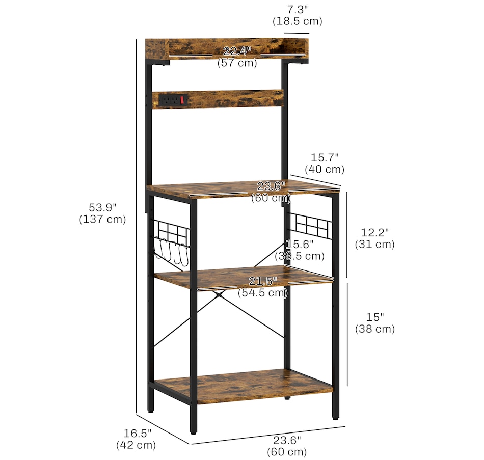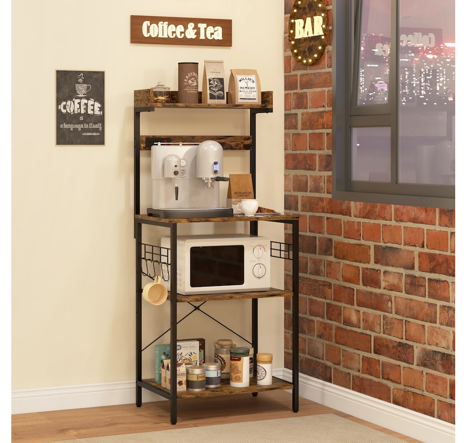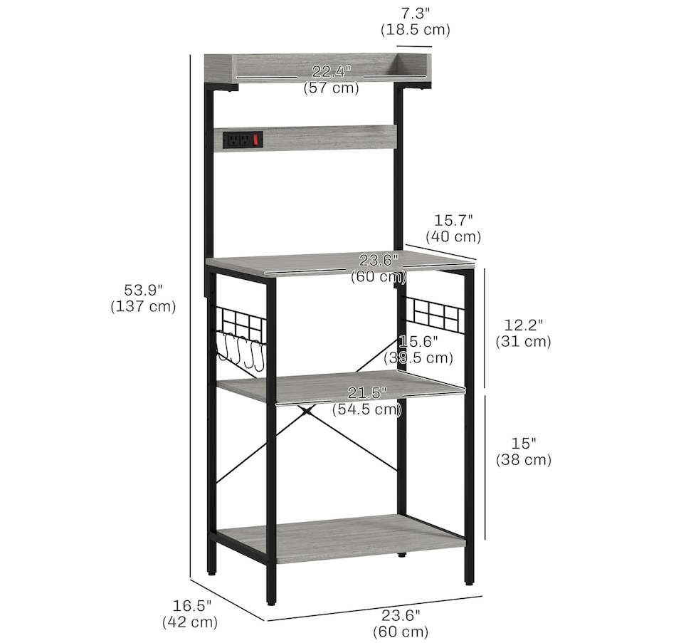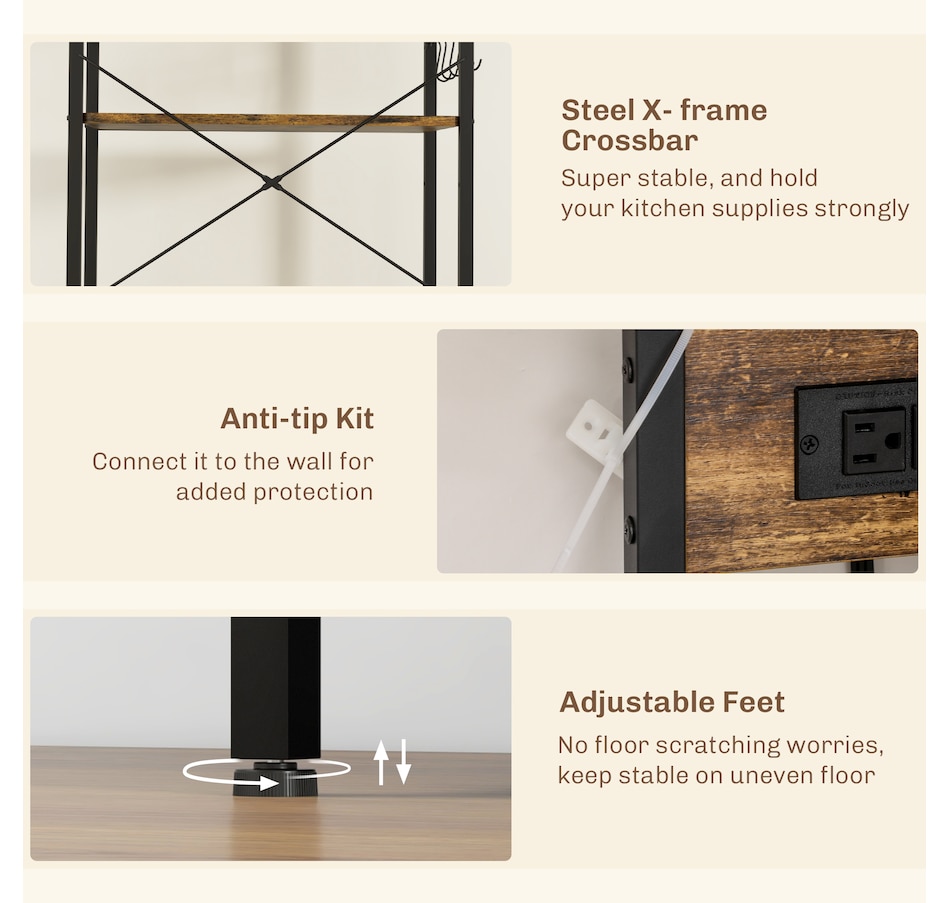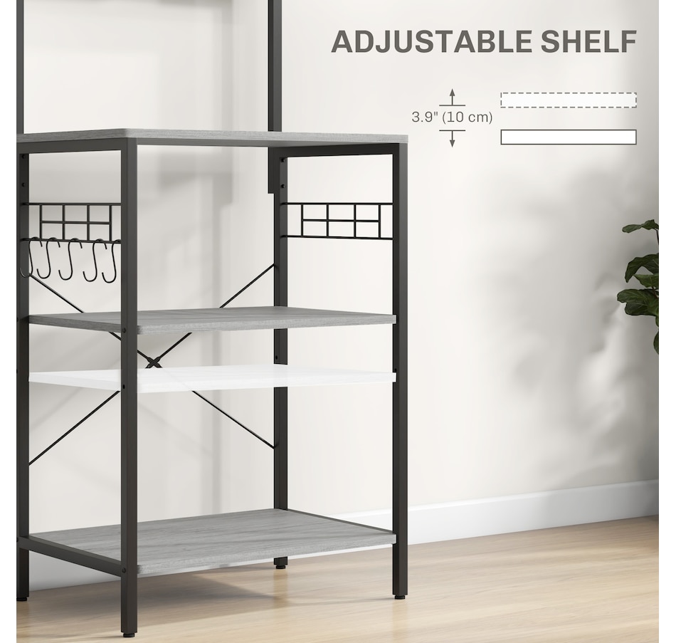 Kitchen Bakers Rack with Power Outlet, Adjustable Shelves and Hooks