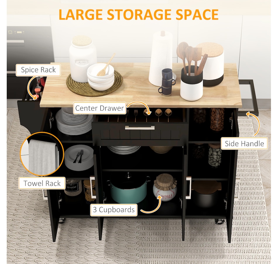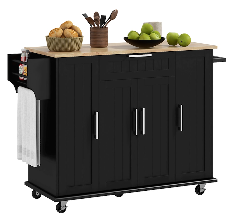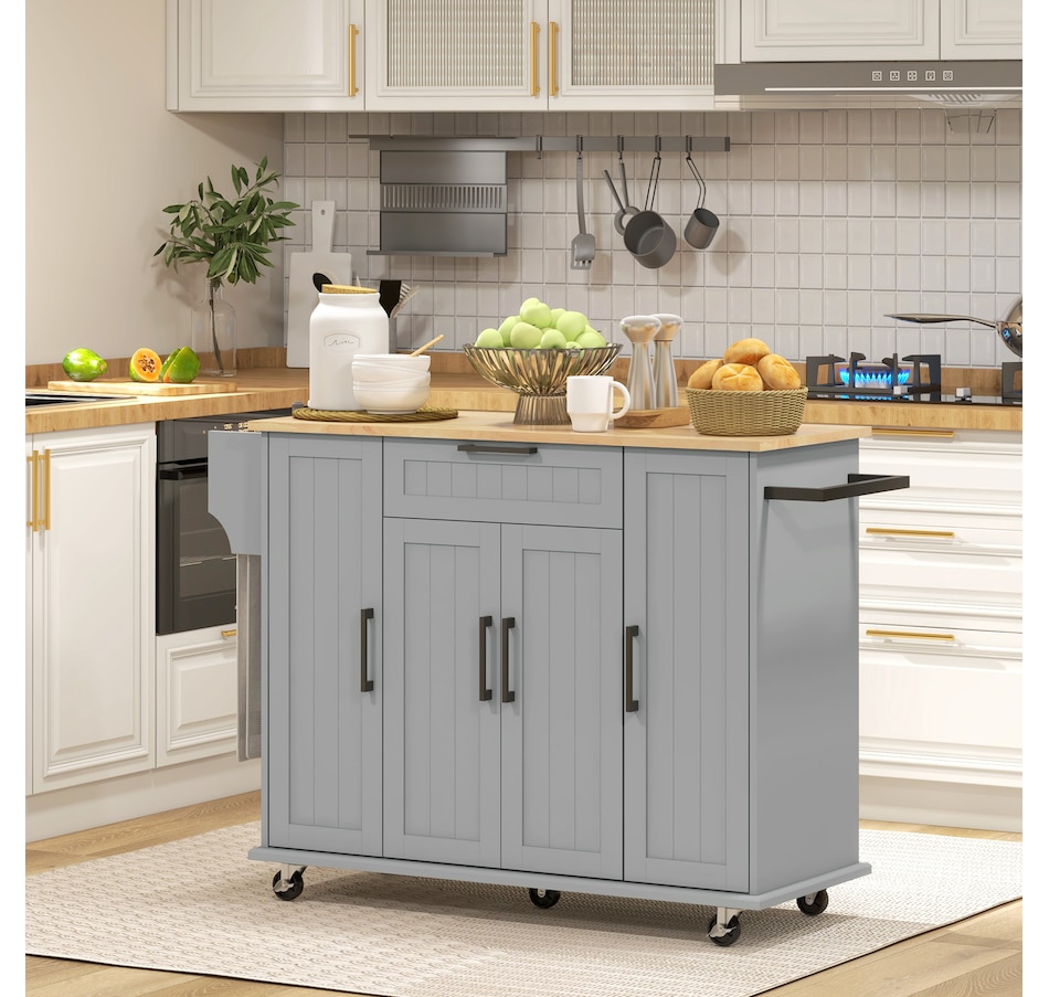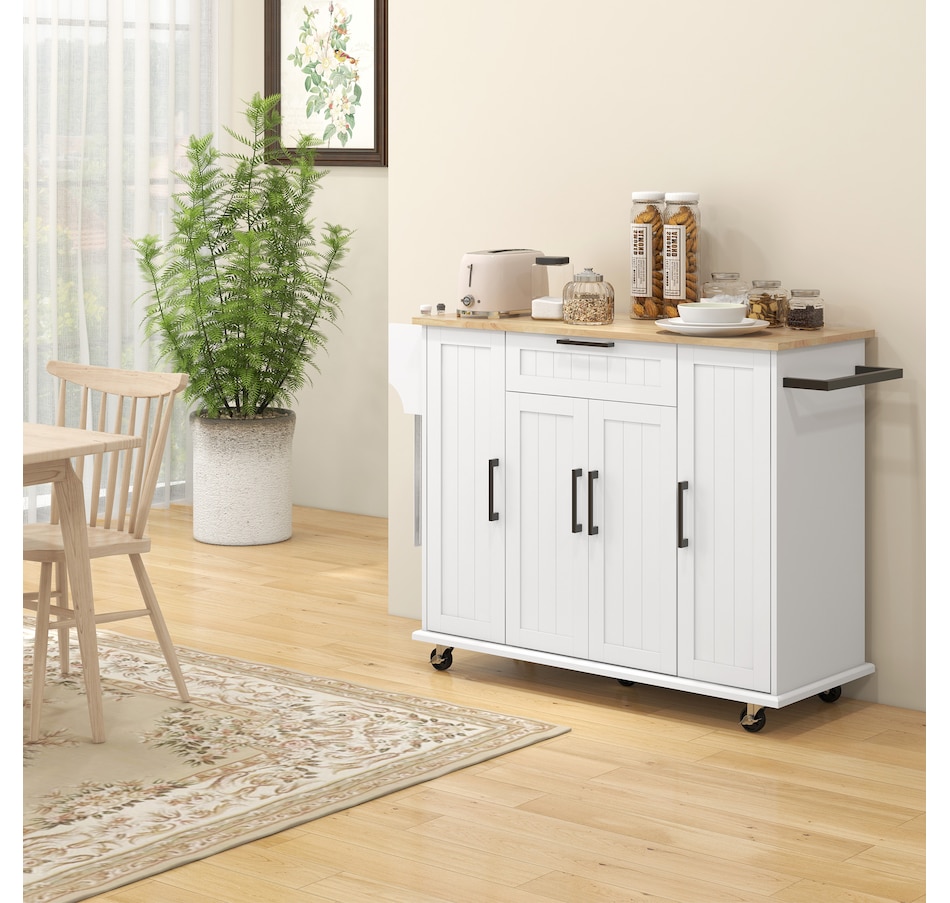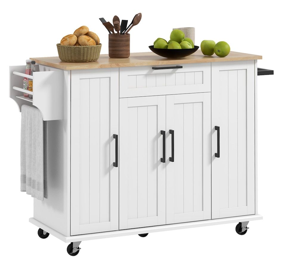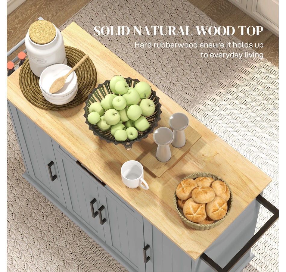 Kitchen Island on Wheels, Kitchen Cart with Solid Wood Top