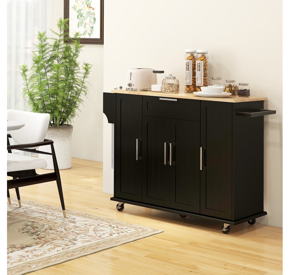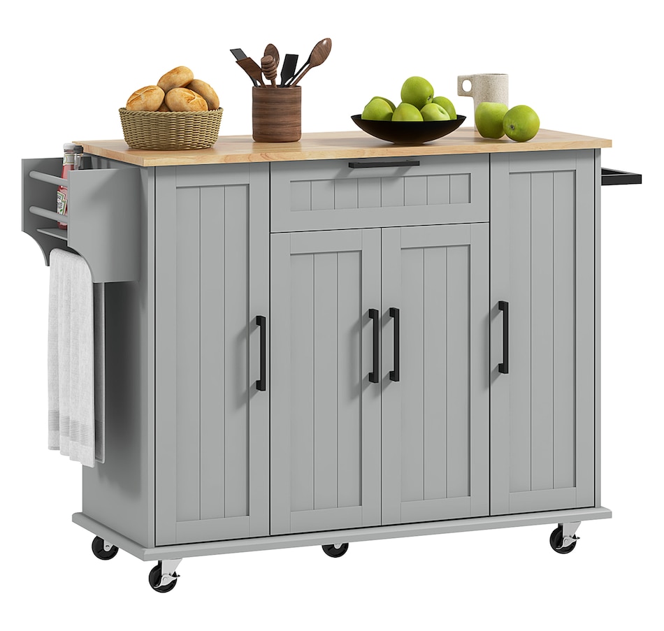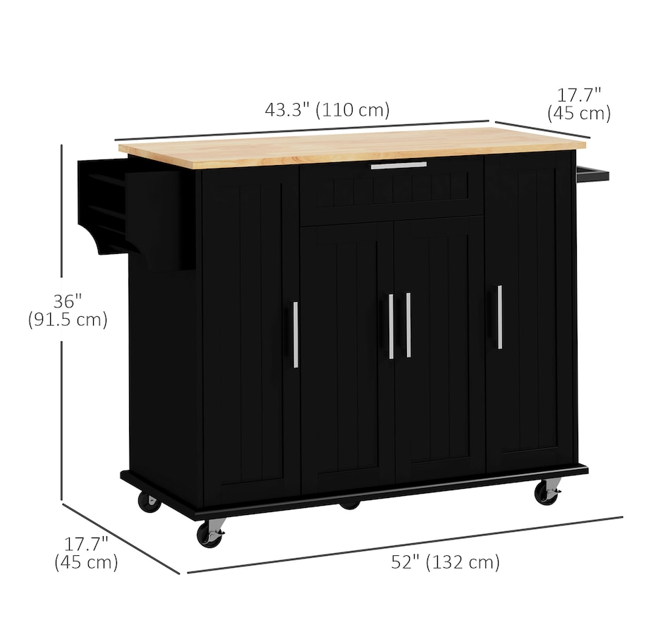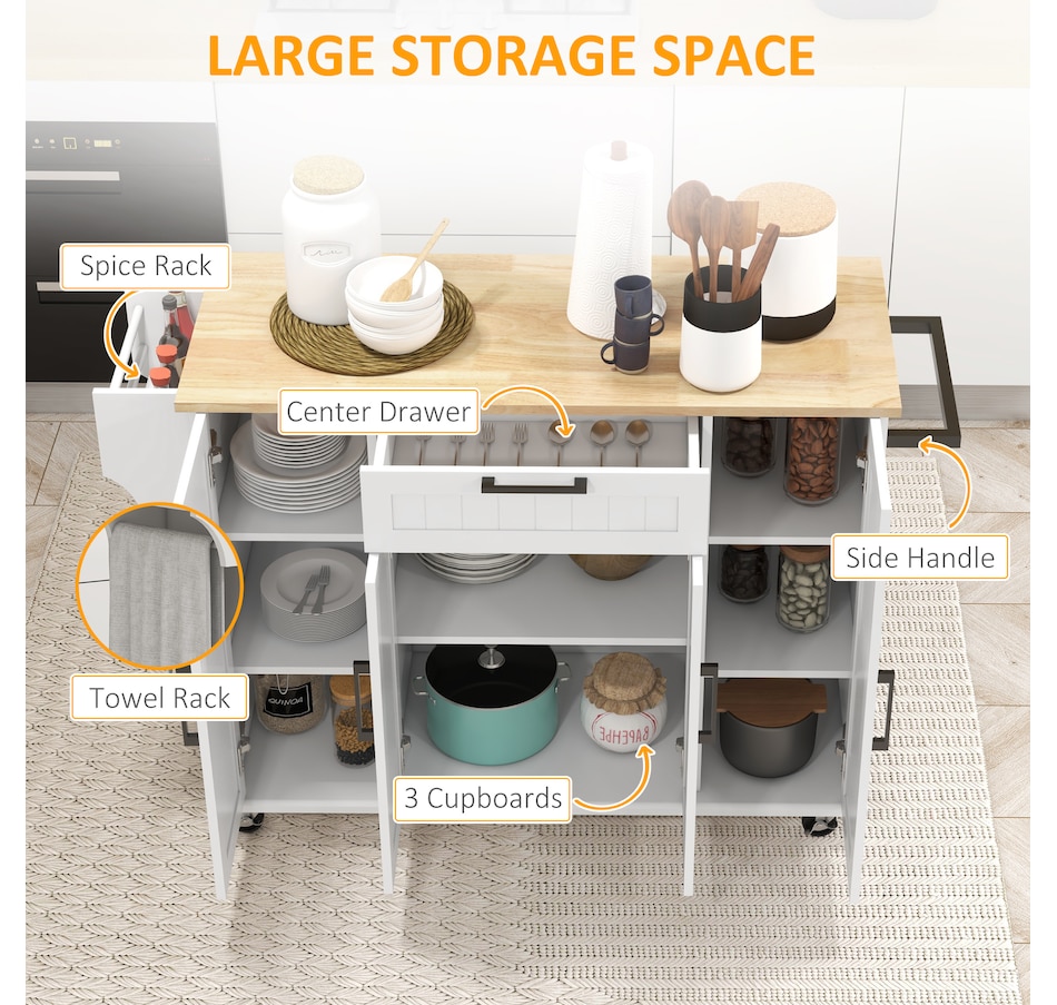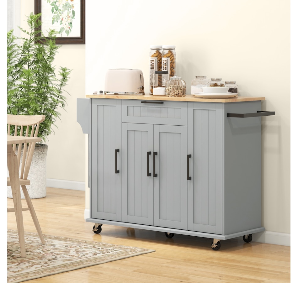 Kitchen Island on Wheels, Kitchen Cart with Solid Wood Top
