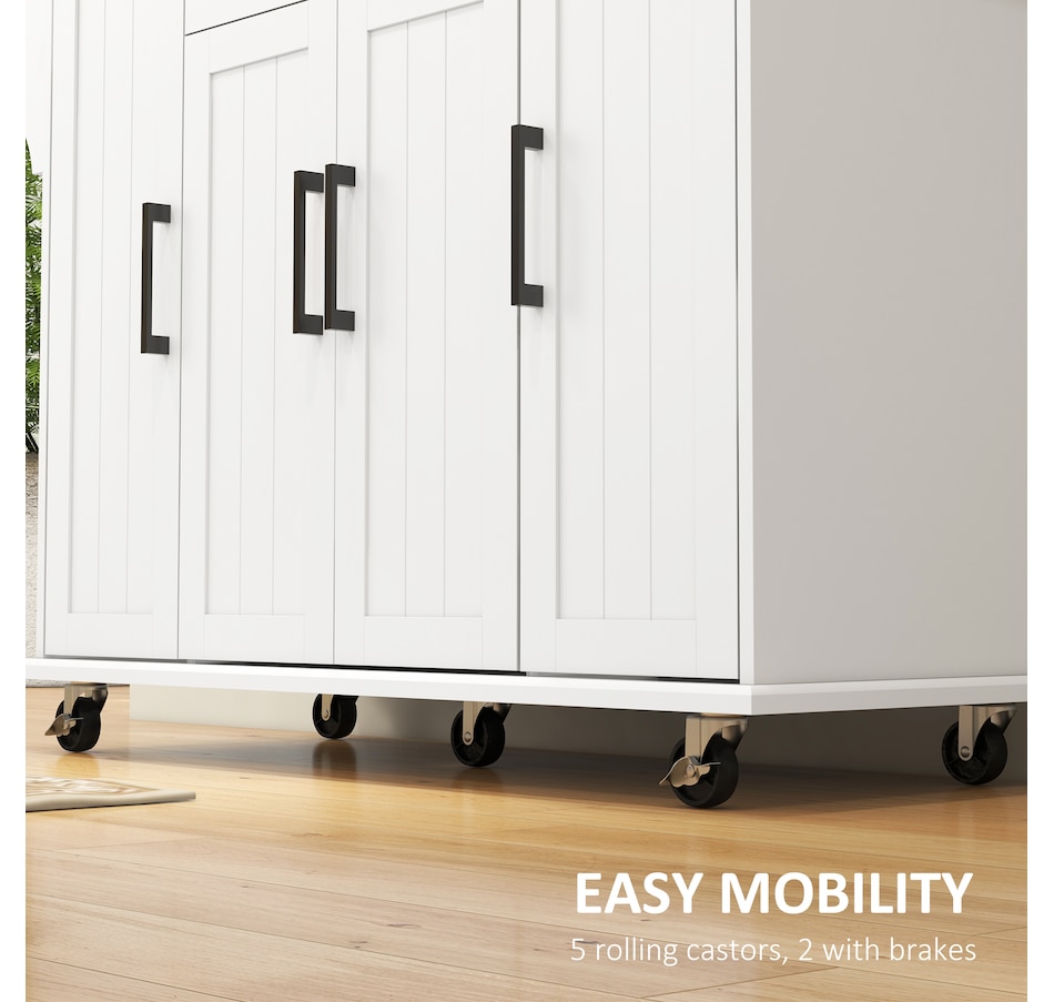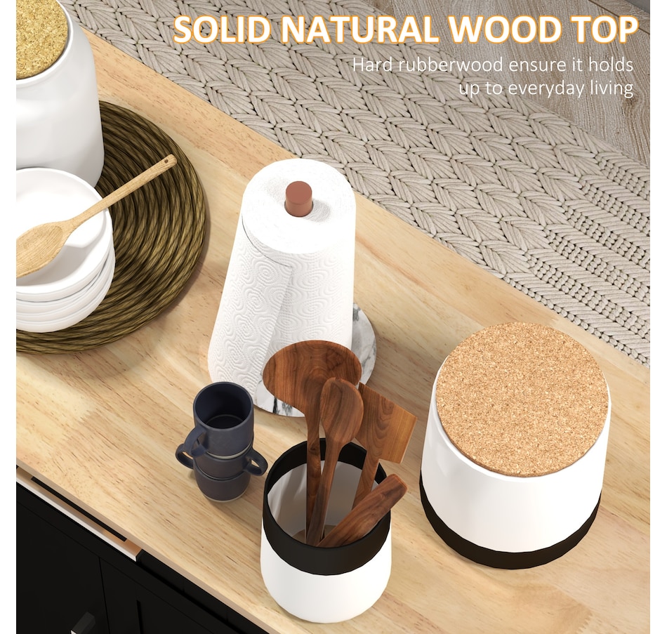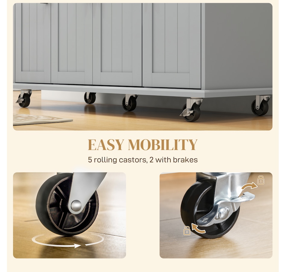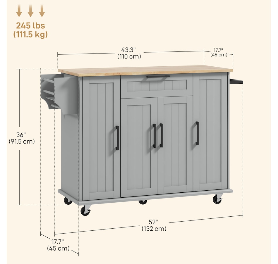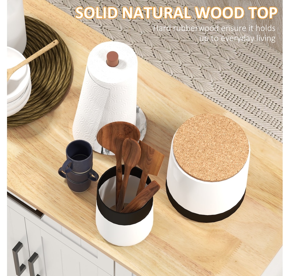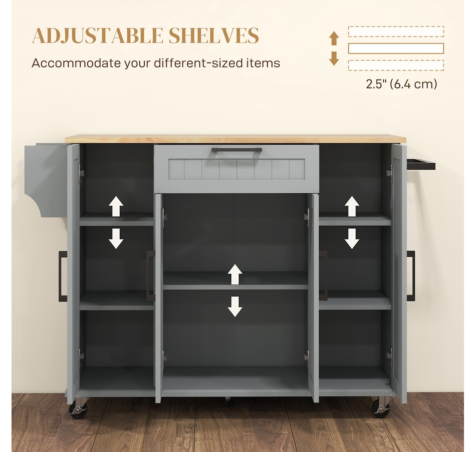 Kitchen Island on Wheels, Kitchen Cart with Solid Wood Top