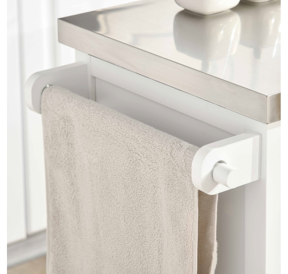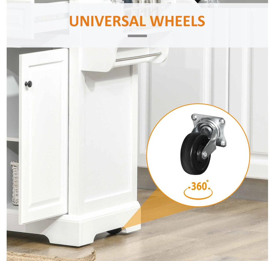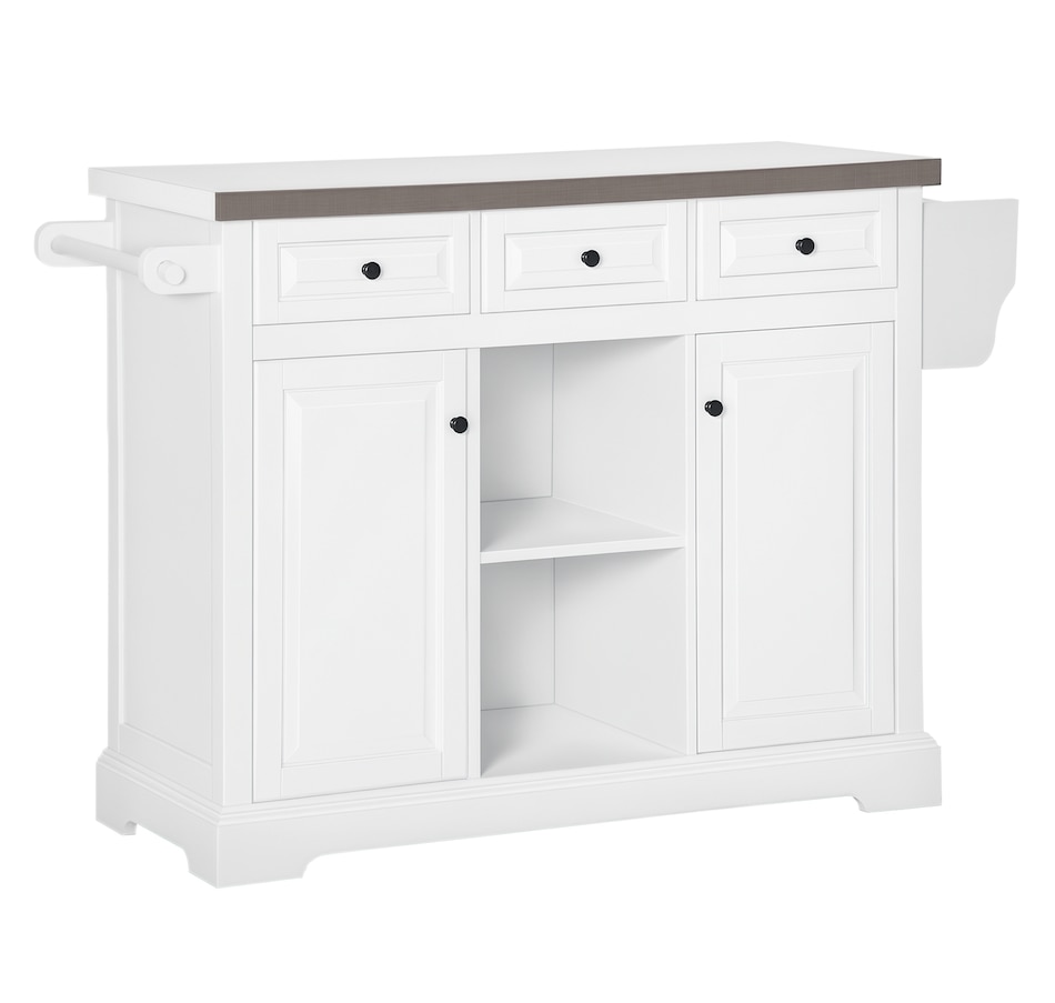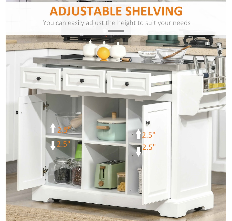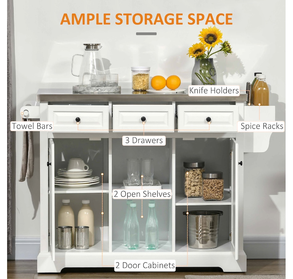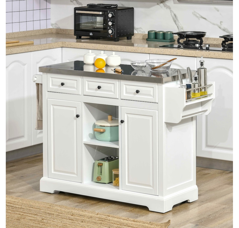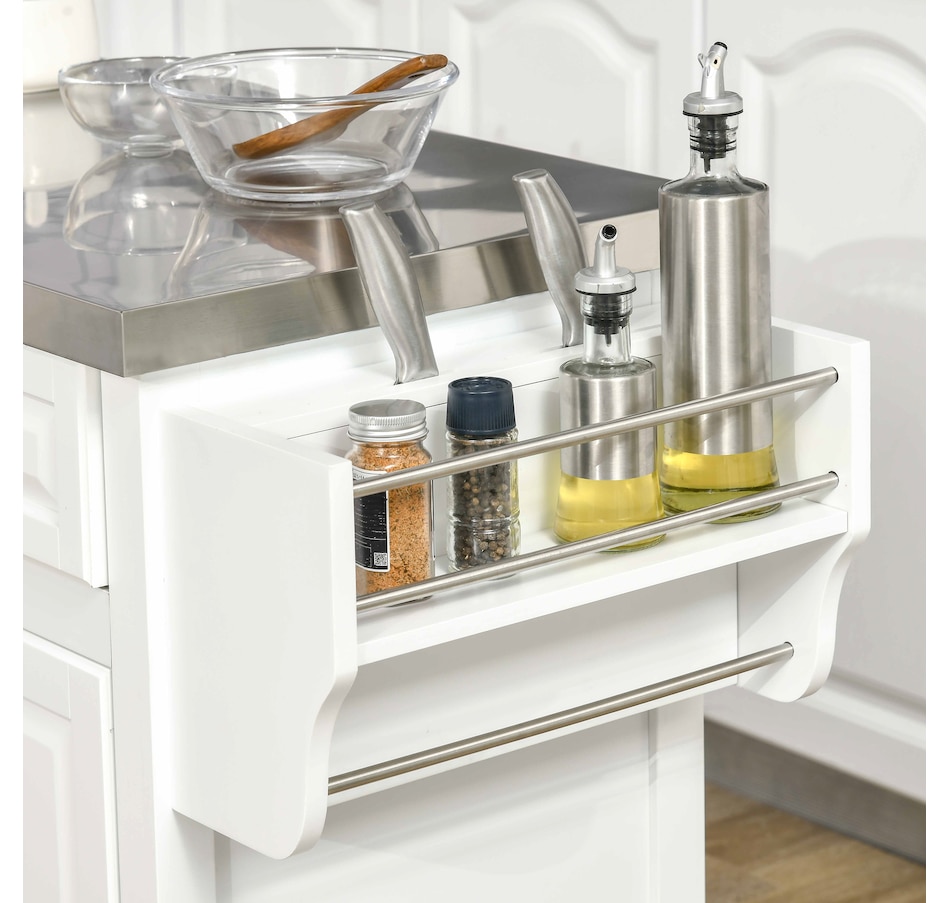 Kitchen Island on Wheels w/ Stainless Steel Top, Spice Rack, Drawers