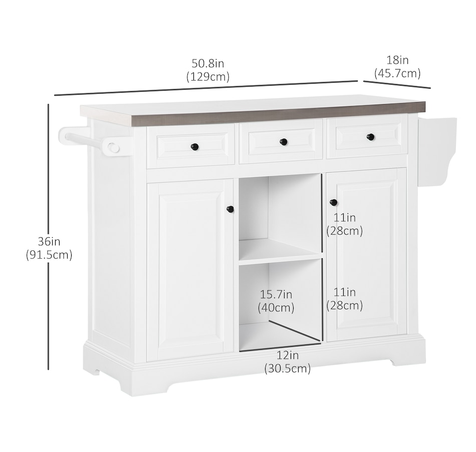● Overall Dimension: 50.8" W x 18" D x 36" H (129 x 45.7 x 91.5 cm);