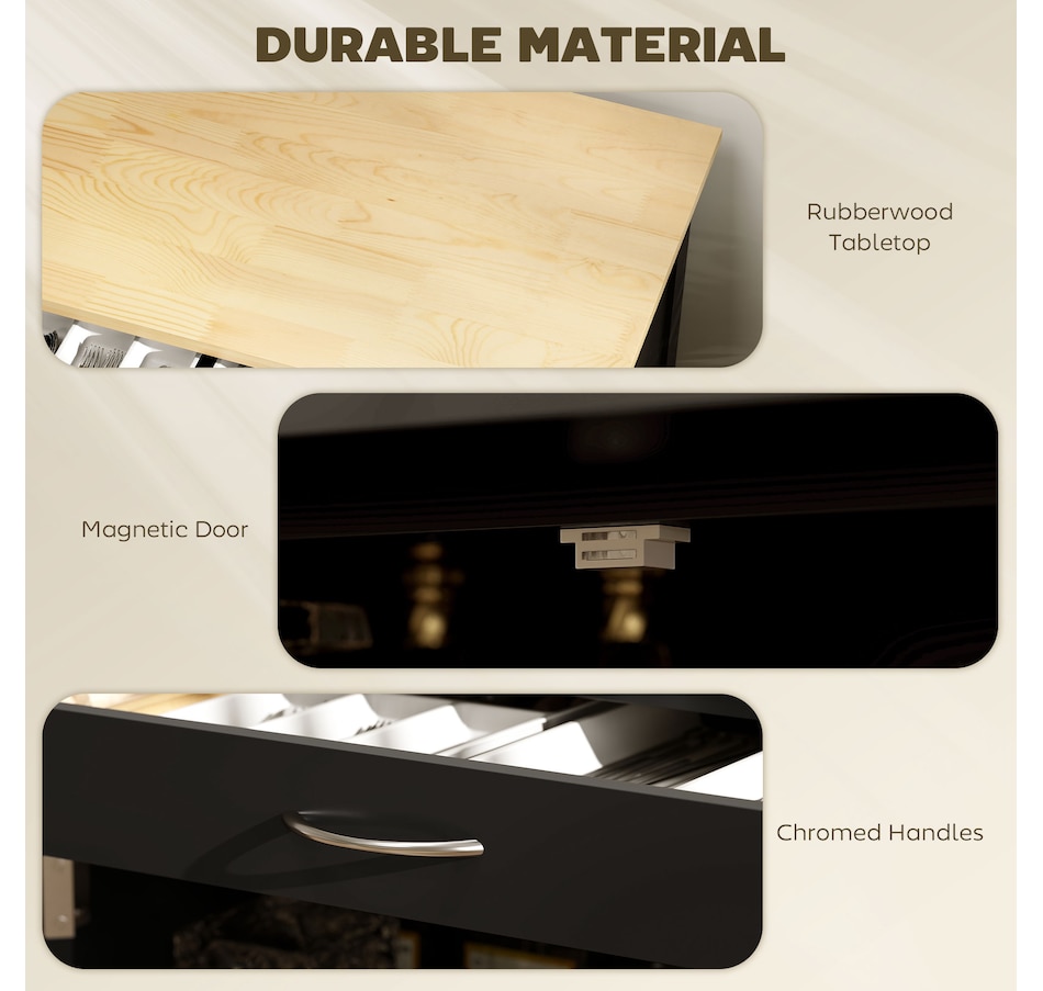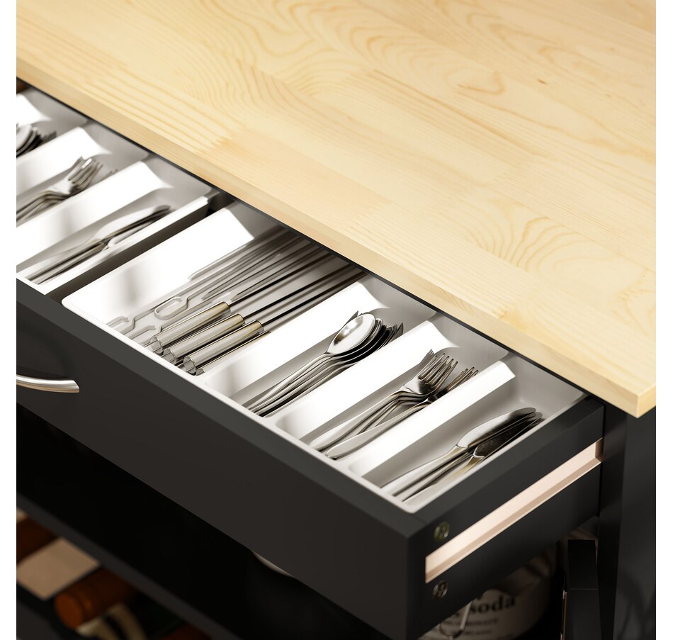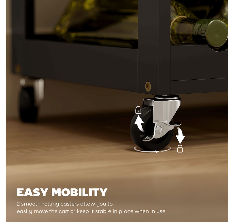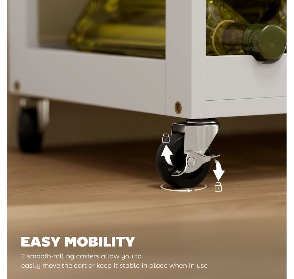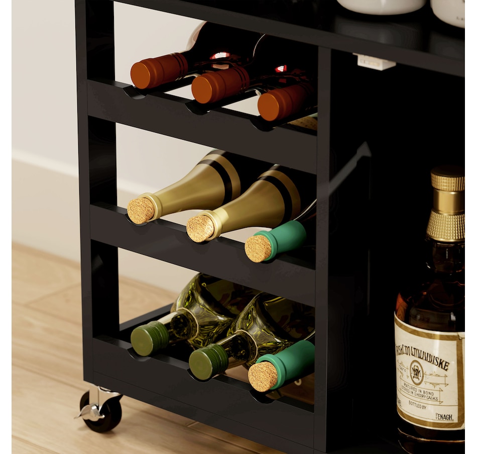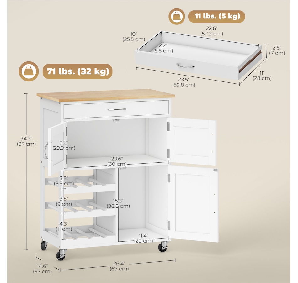 Kitchen Island on Wheels with Drawer, 9-bottle Wine Rack
