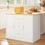 Kitchen Island with Sitting Space 2 Storage Cabinets 3 Drawers White