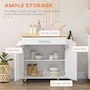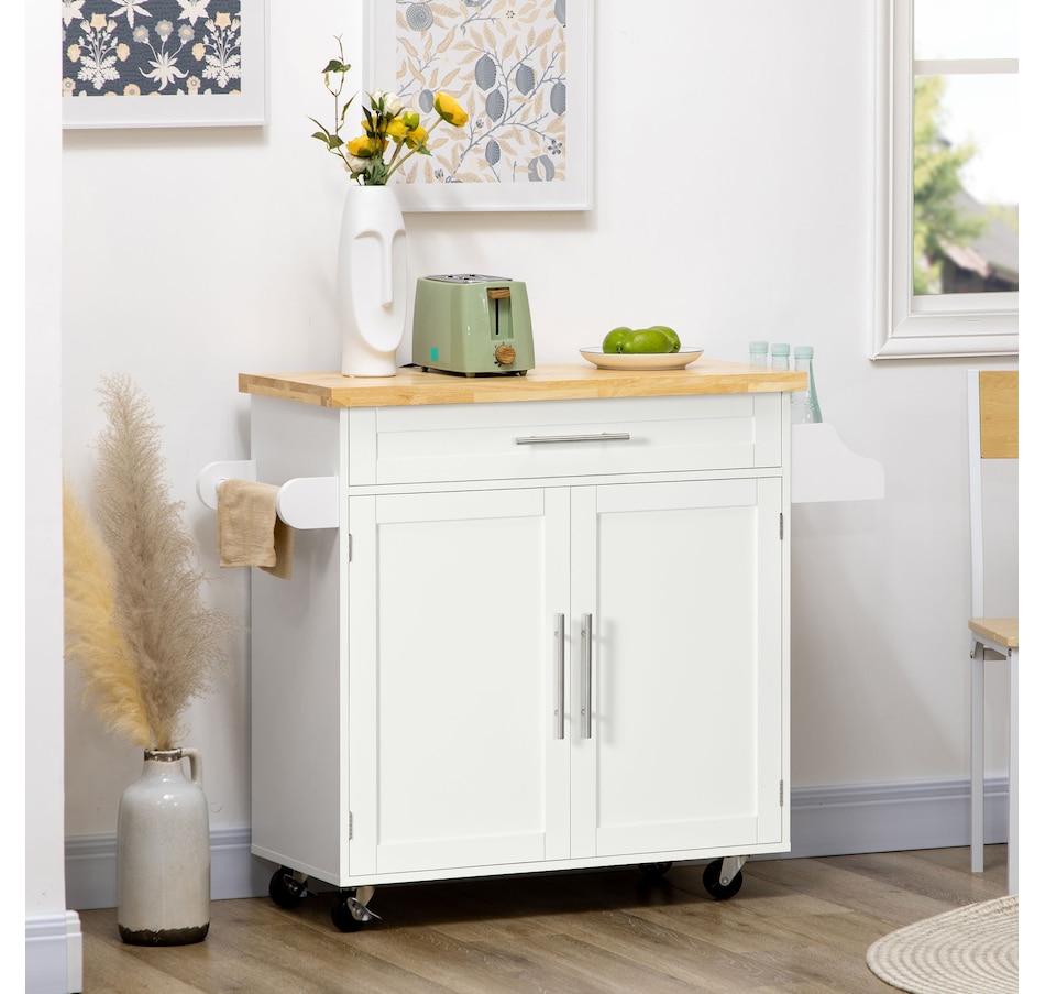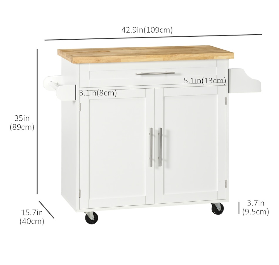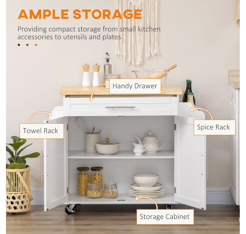 This kitchen cart on wheels is an optimal option for your home parties. A handy drawer and an enclosed cabinet provide ample space for supplies and accessories. Equipped with a spice rack and a towel rack for extra storage. Use the 4 smooth wheels to take this microwave stand where you need it without having to take your items out and move them. Make being in the kitchen a breeze with the bar carts for the home from HOMCOM.Features: