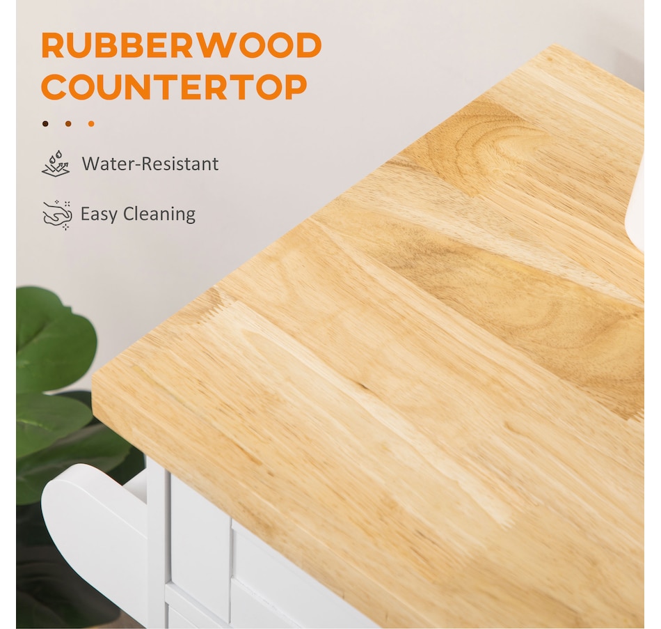 ● Made of water-resistant rubber wood countertop and MDF side panels for easy cleaning and low maintenance;